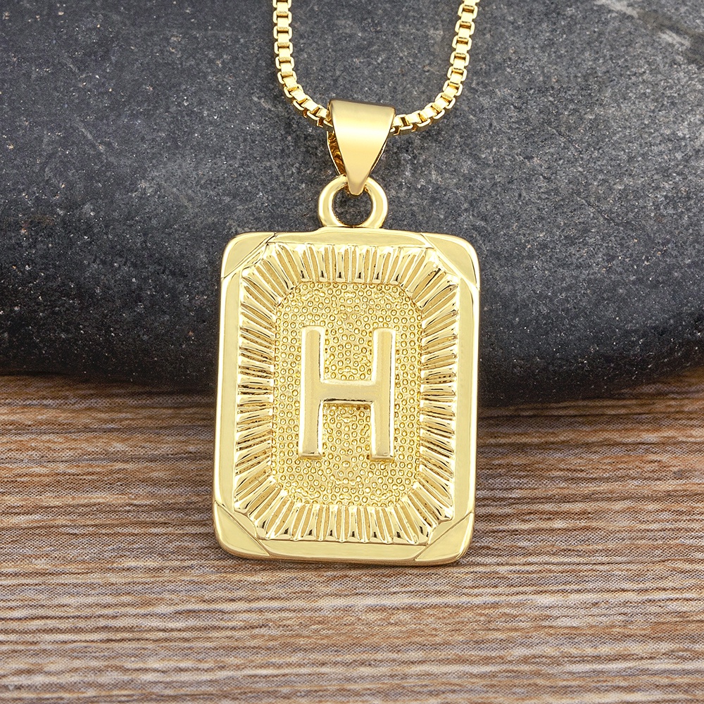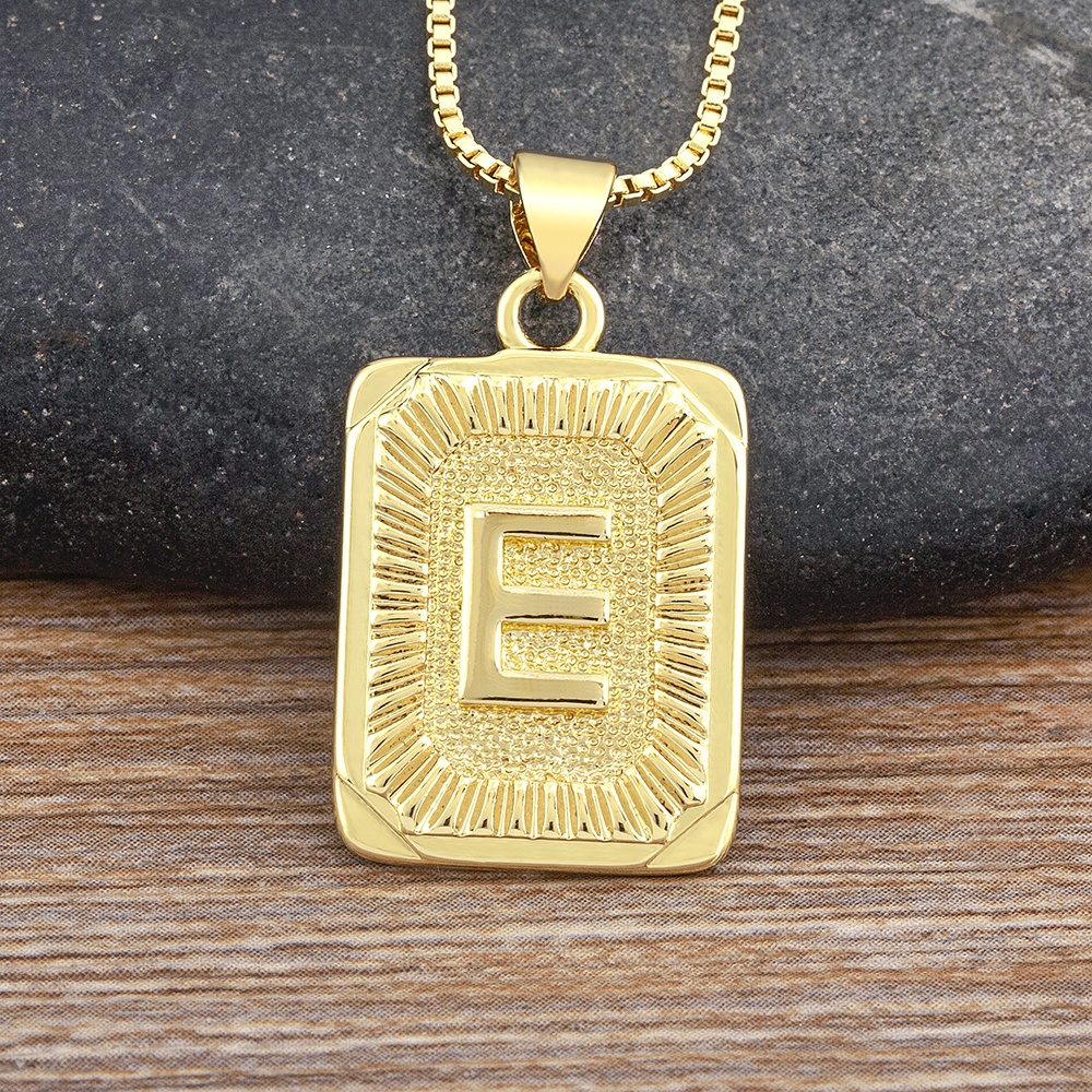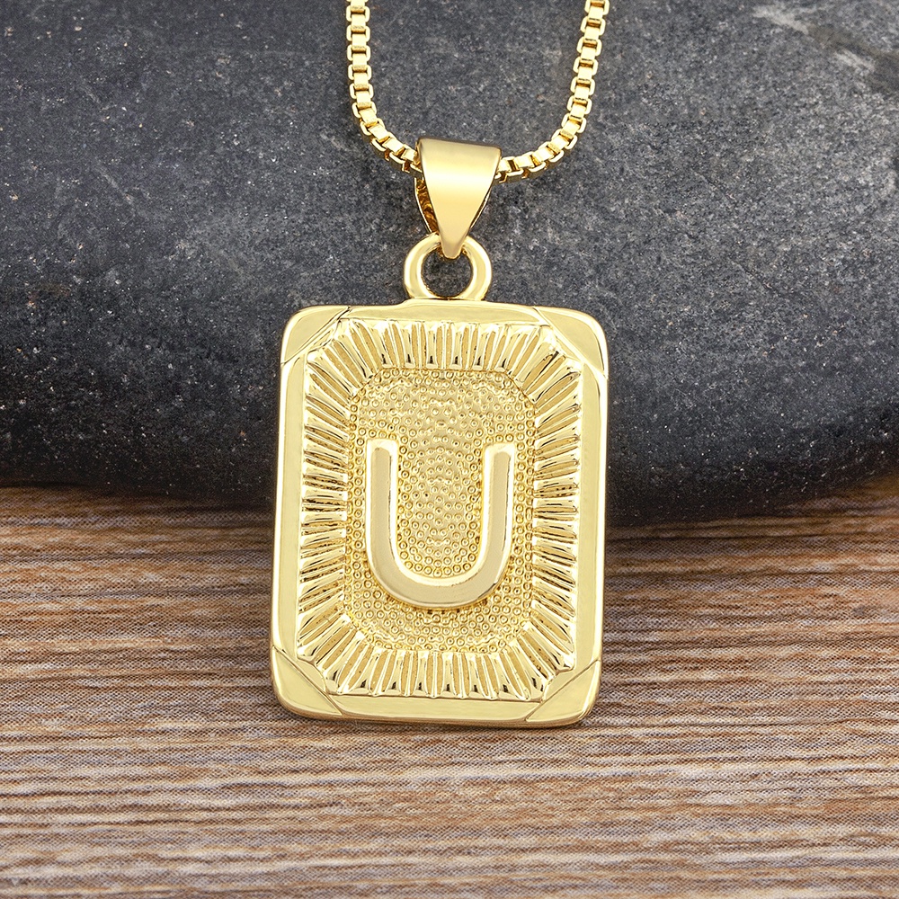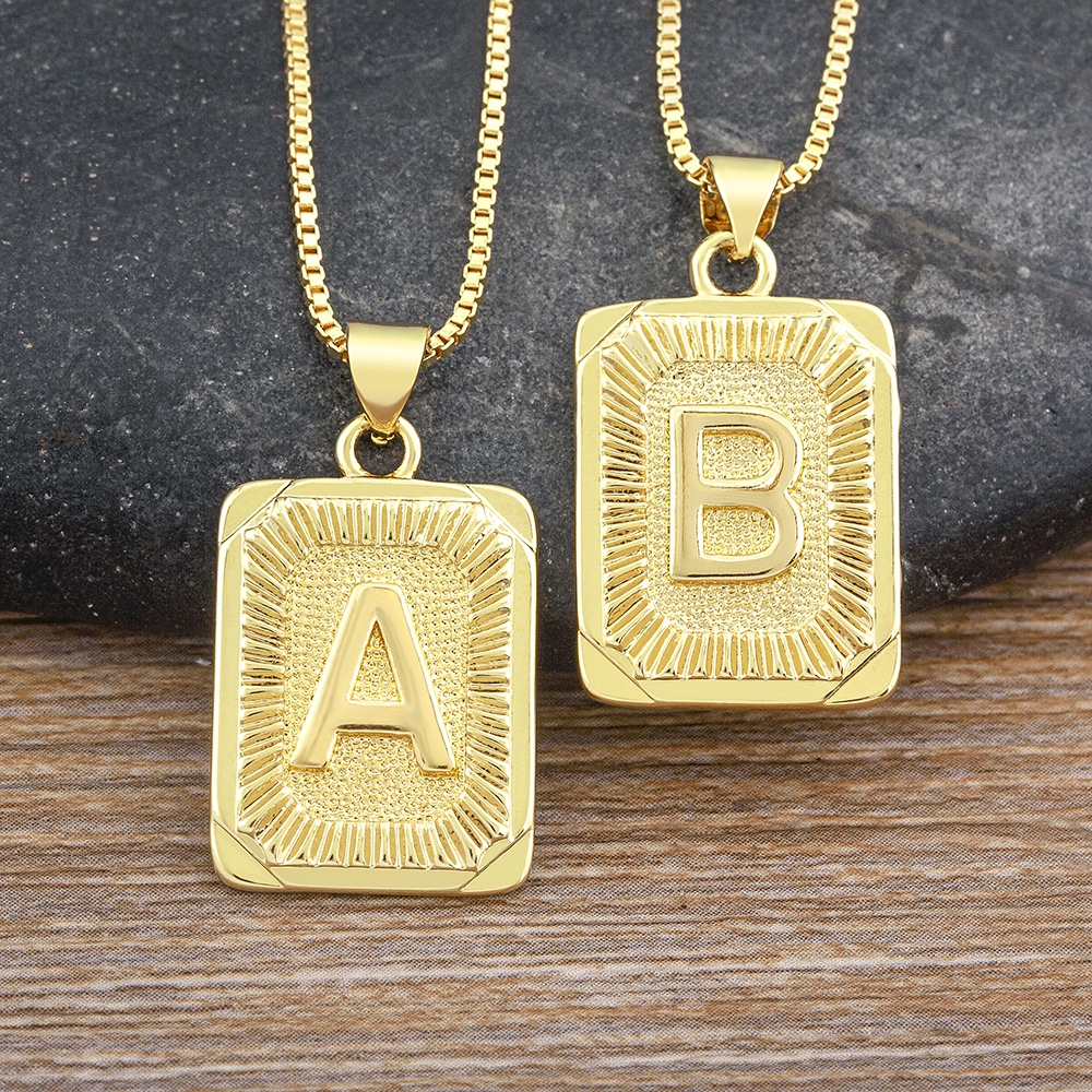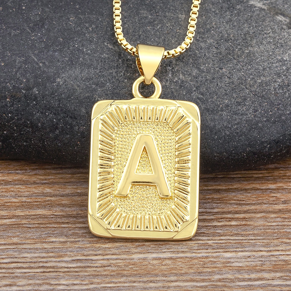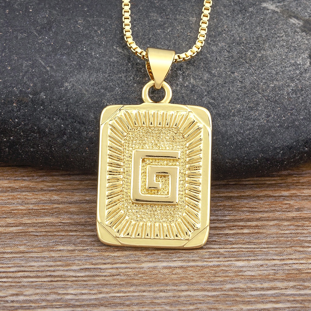 Design Leve De Luxo Geométrico Inlay A-Z Carta Pingente Banhado Ouro Colar Punk Unissex Joias