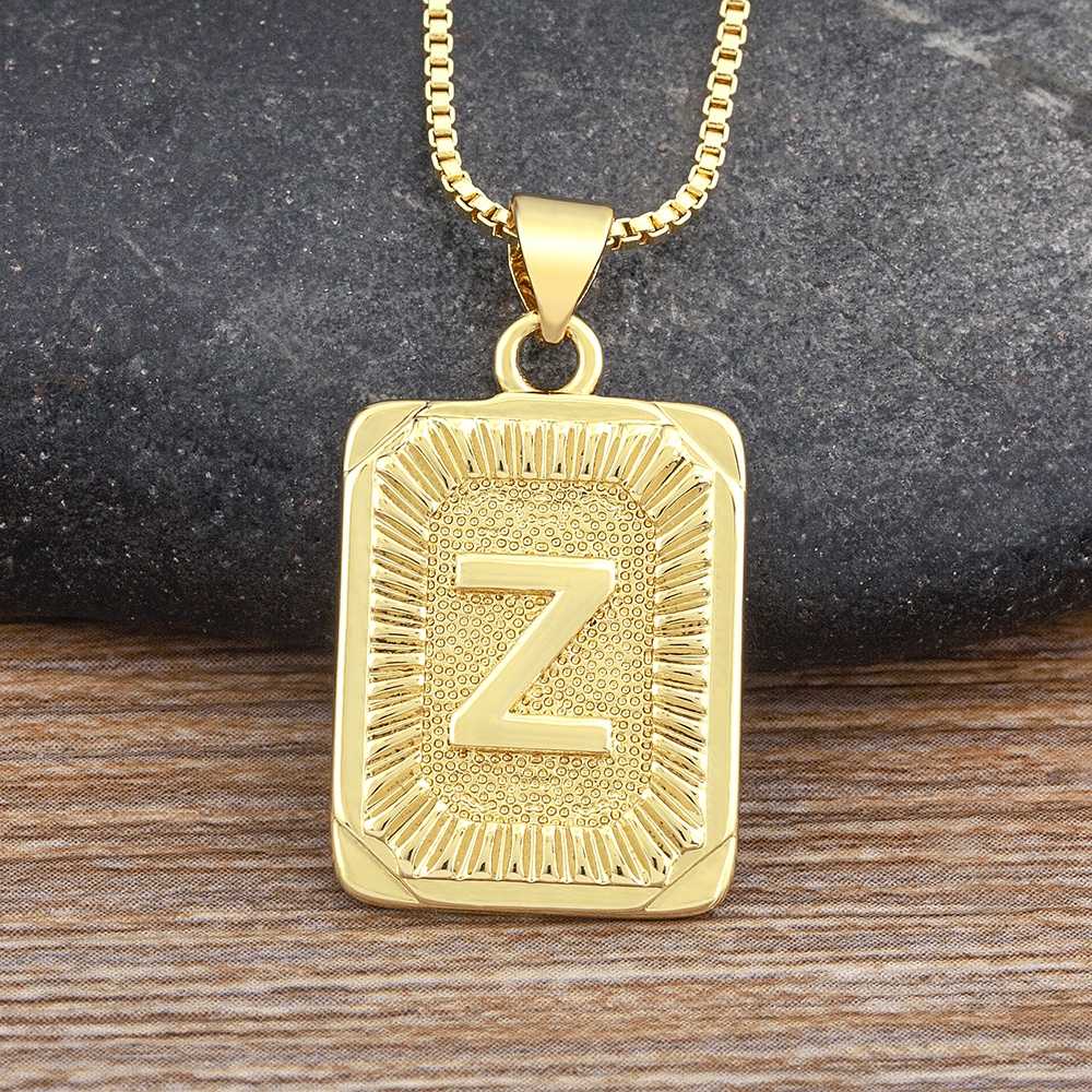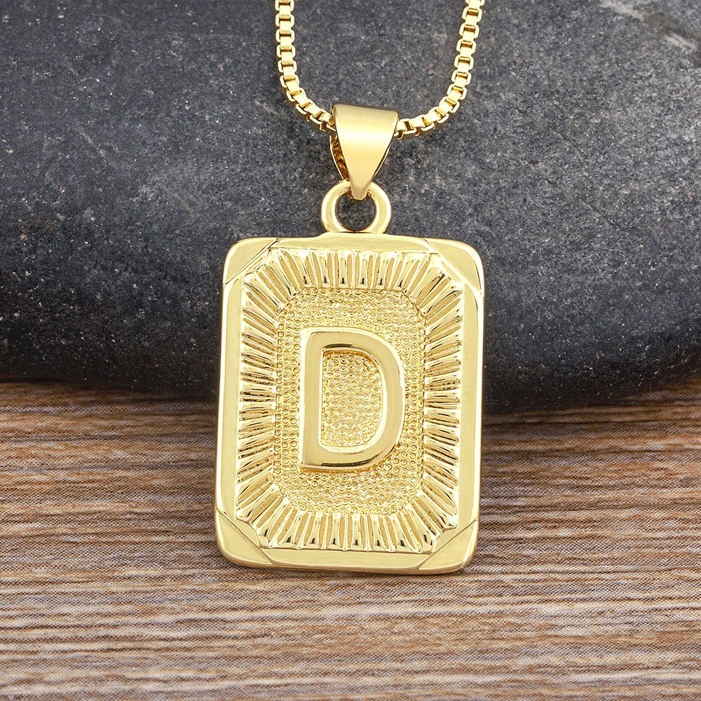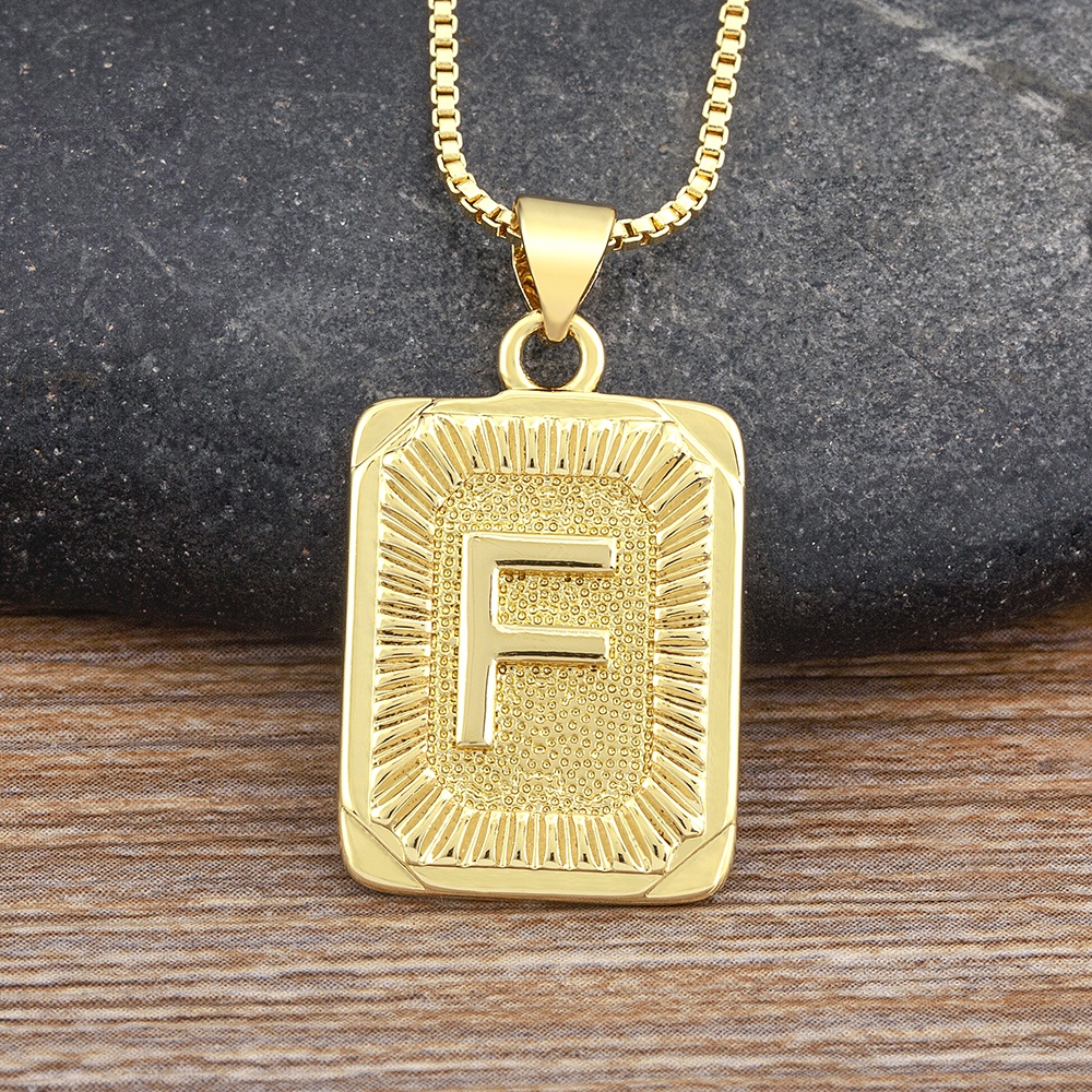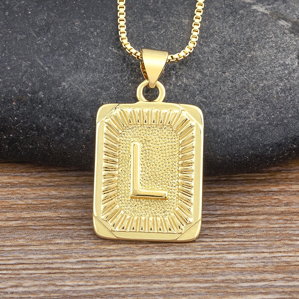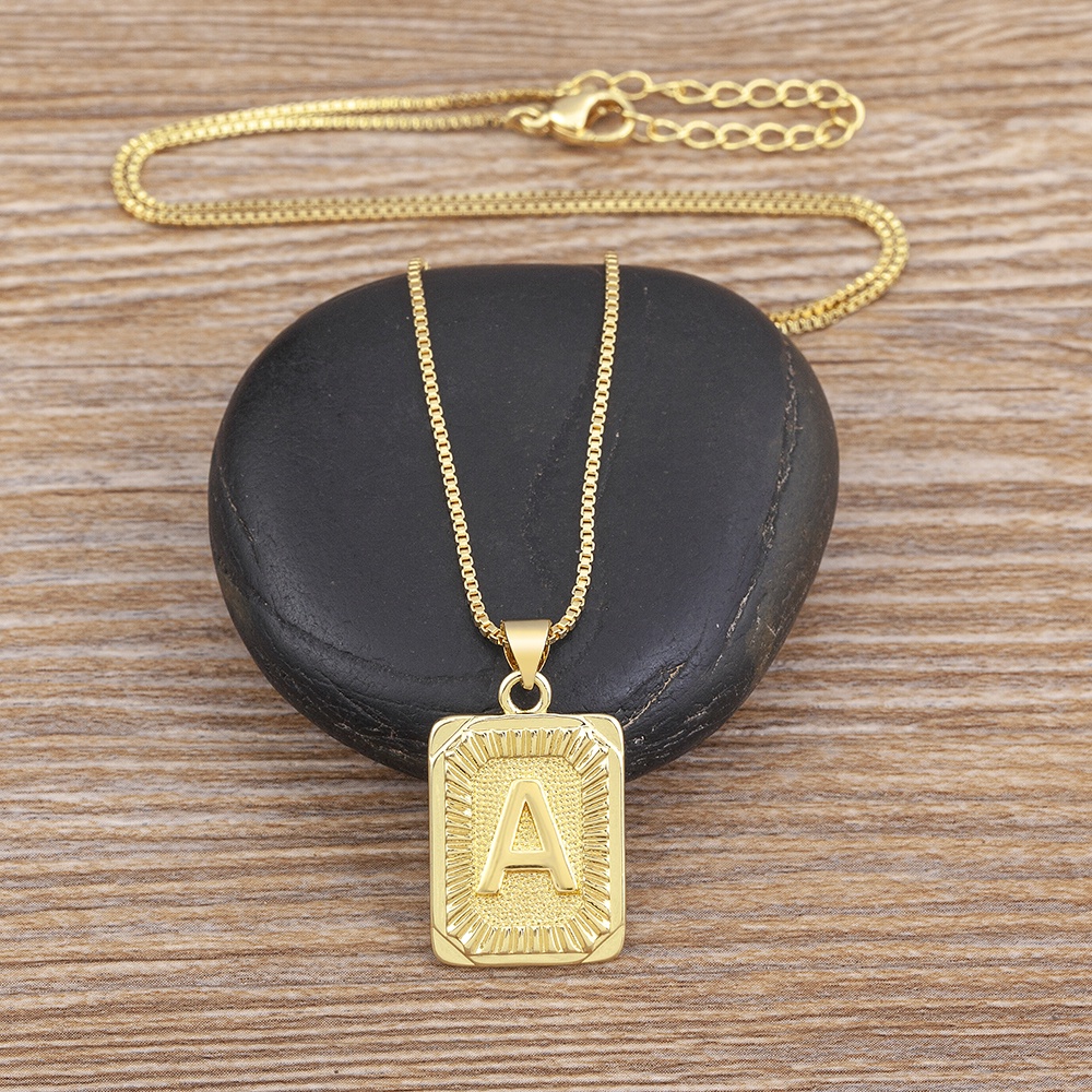 Design Leve De Luxo Geométrico Inlay A-Z Carta Pingente Banhado Ouro Colar Punk Unissex Joias