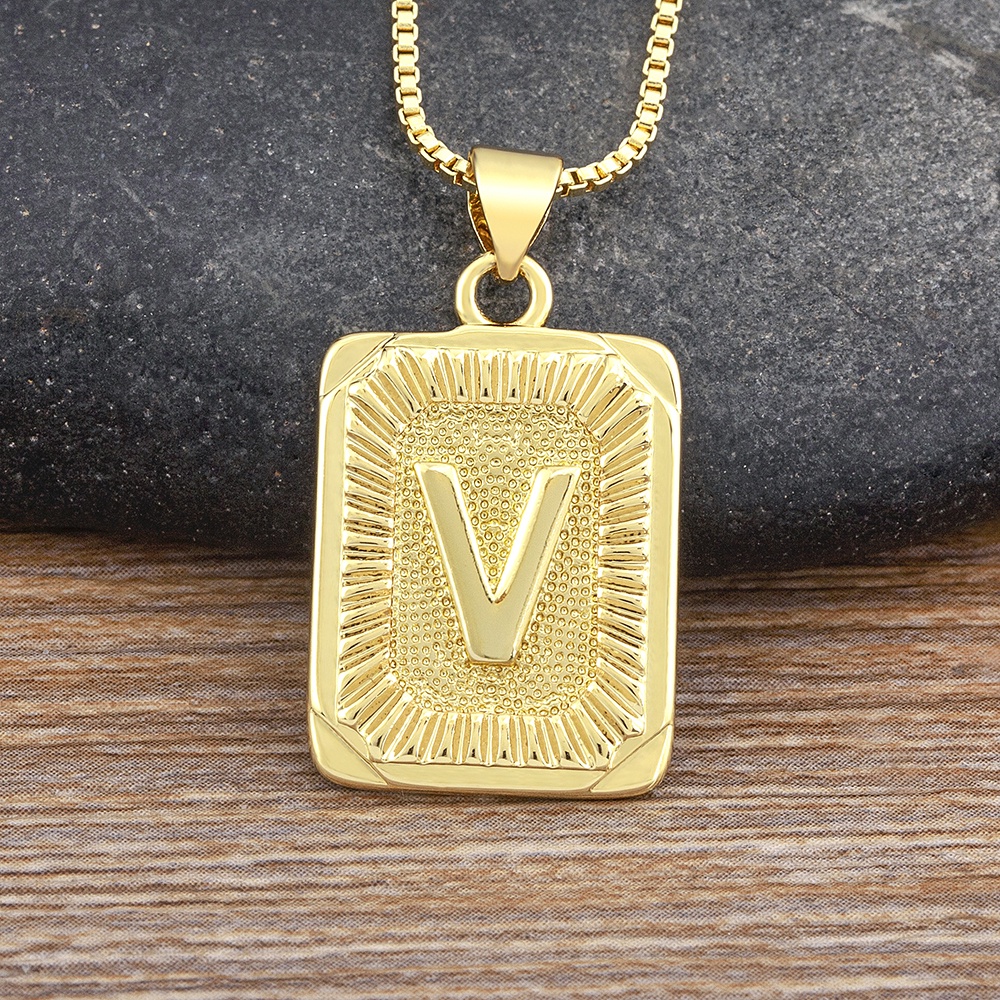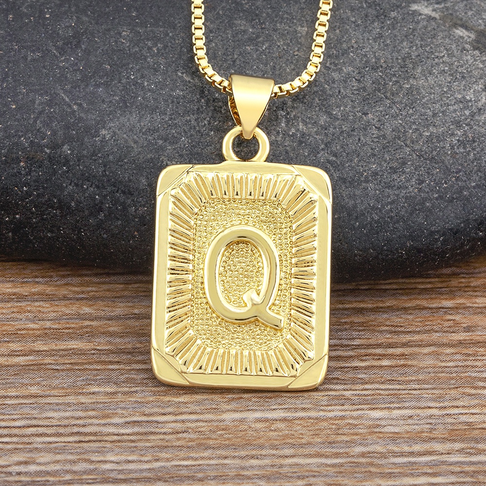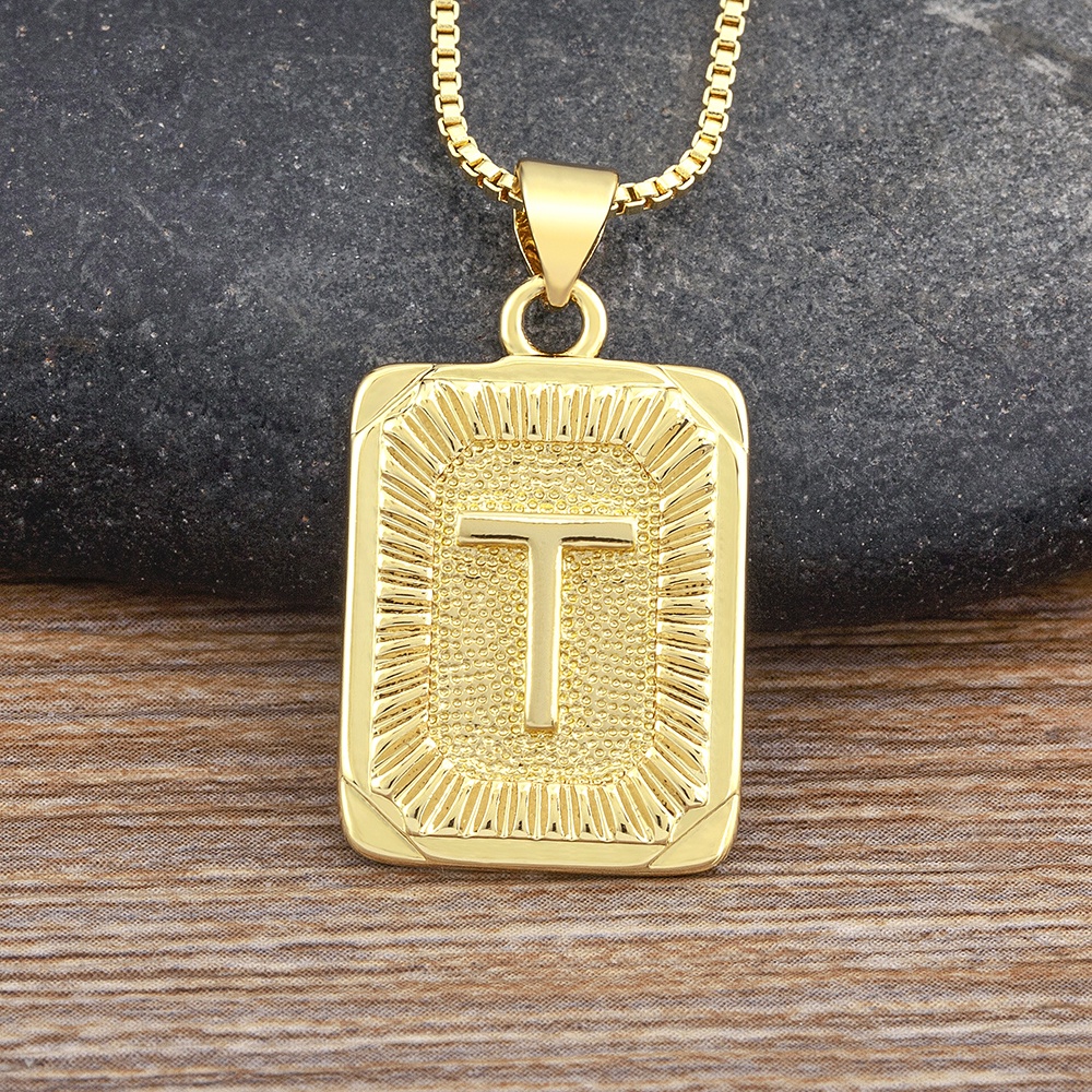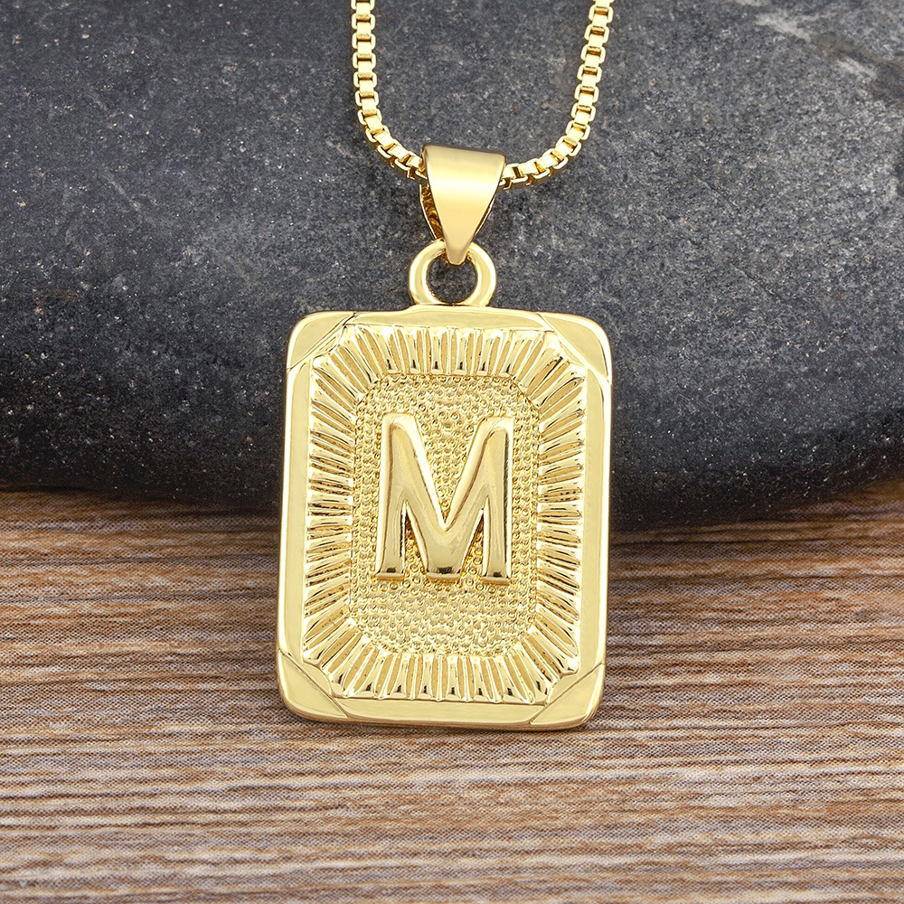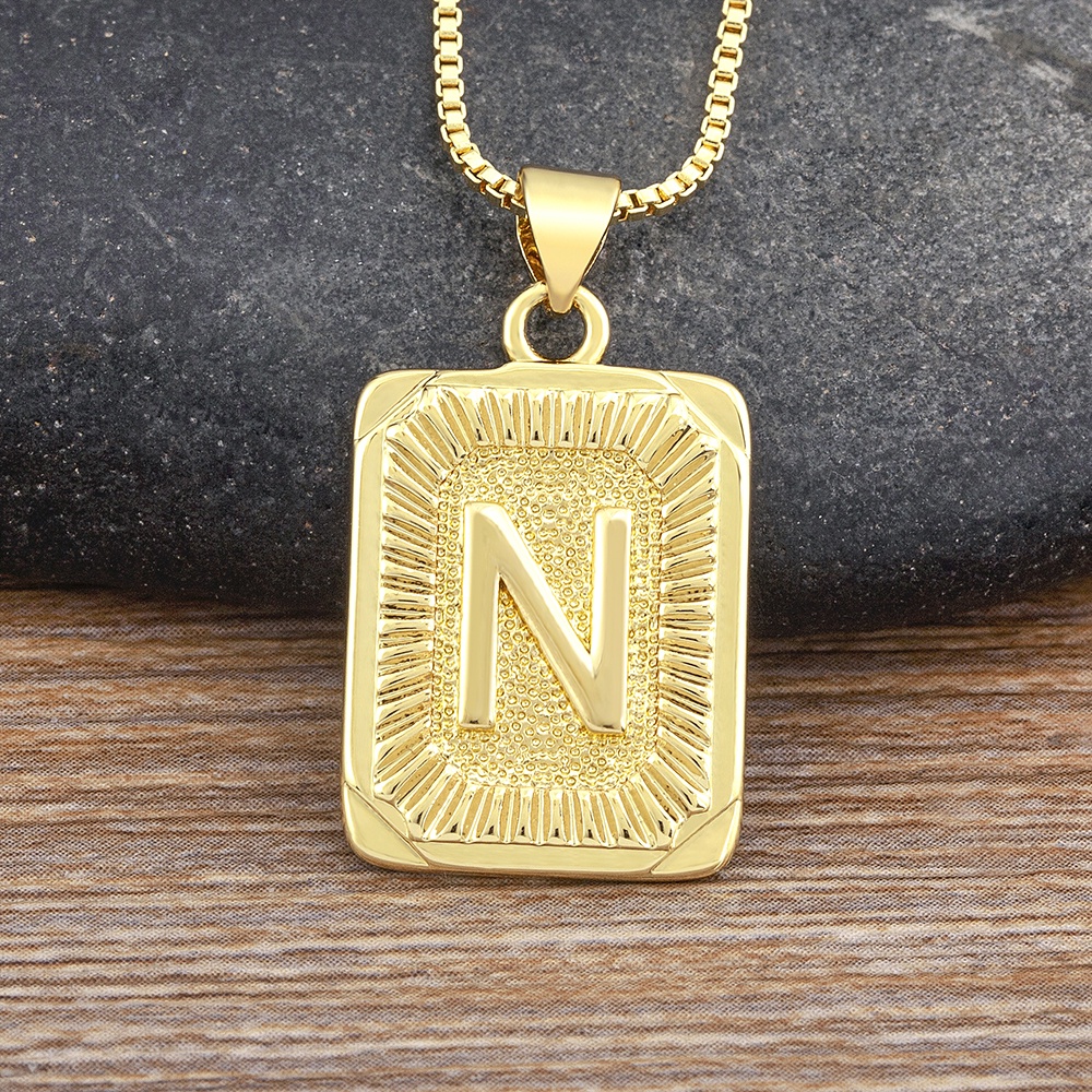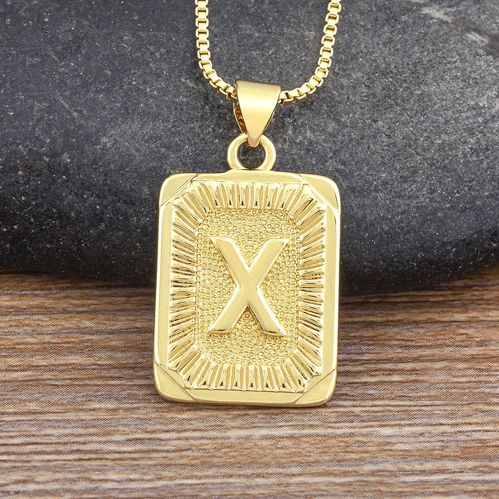 Design Leve De Luxo Geométrico Inlay A-Z Carta Pingente Banhado Ouro Colar Punk Unissex Joias