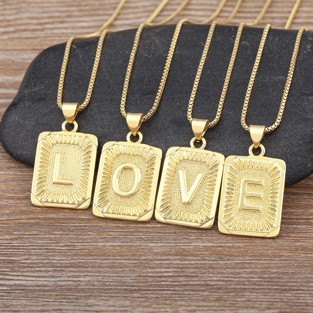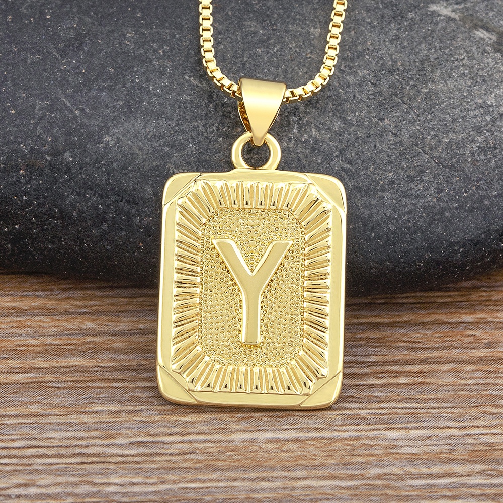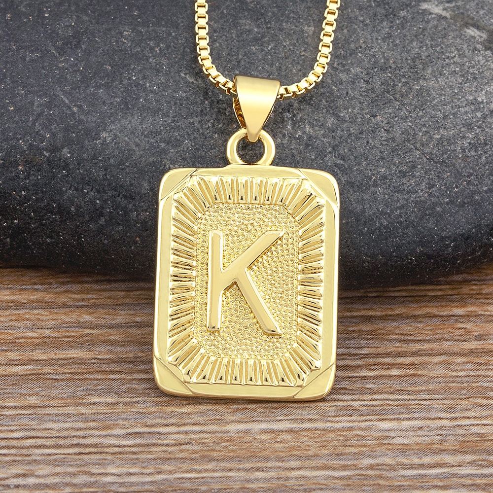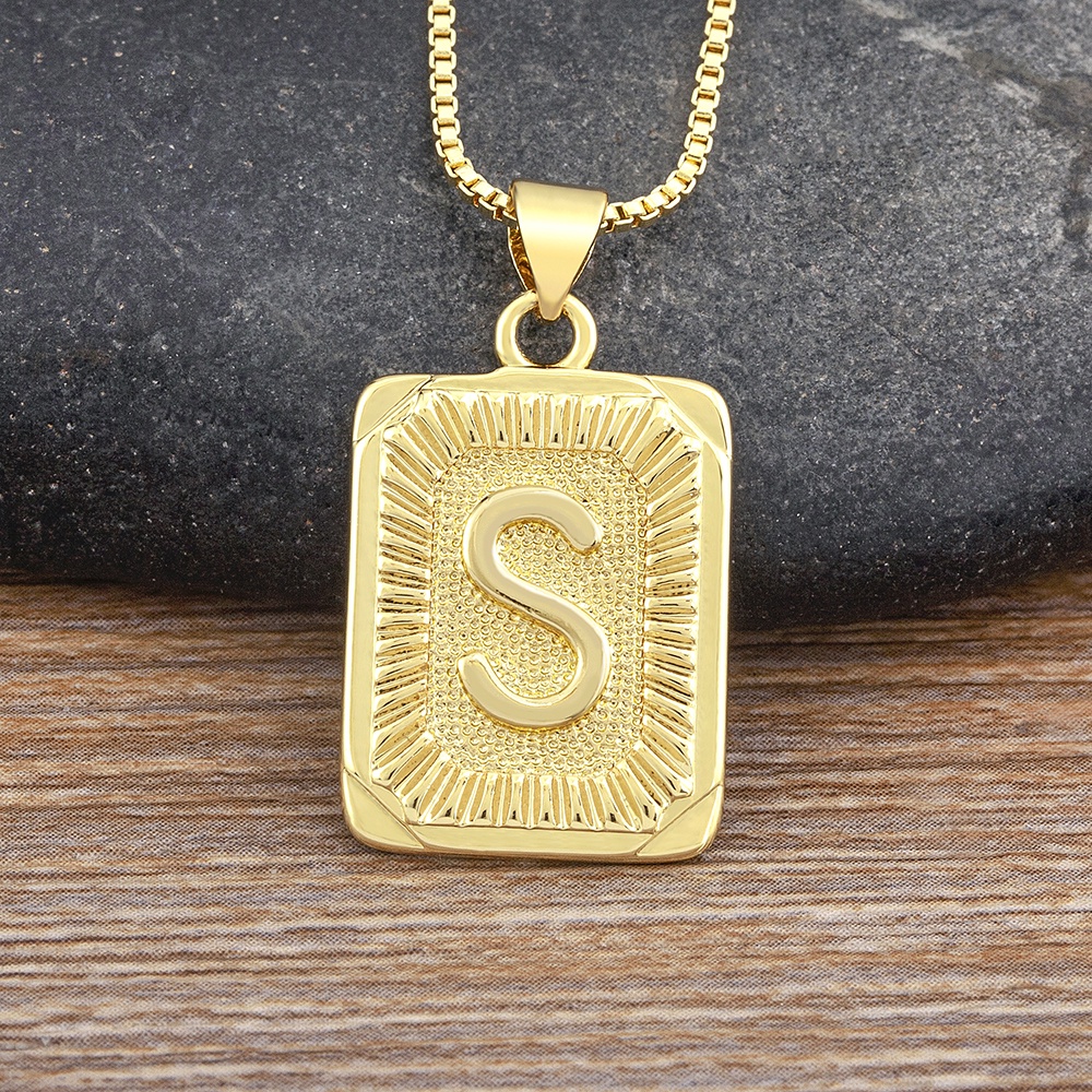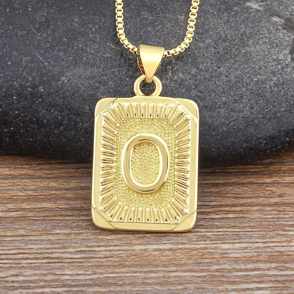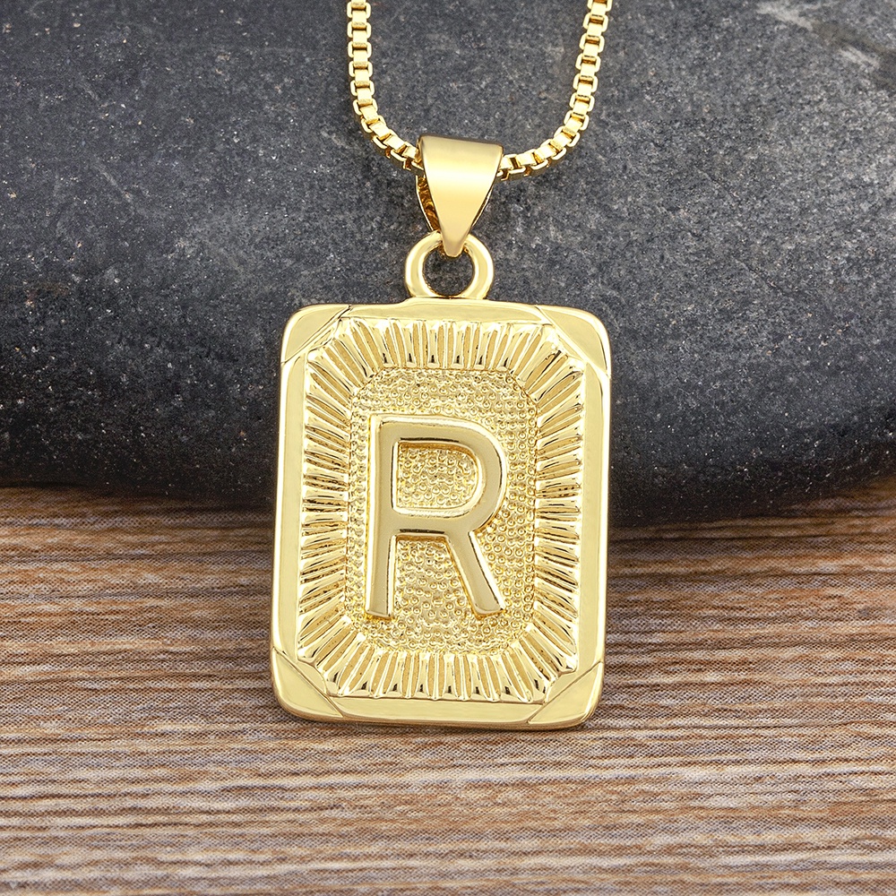 Design Leve De Luxo Geométrico Inlay A-Z Carta Pingente Banhado Ouro Colar Punk Unissex Joias