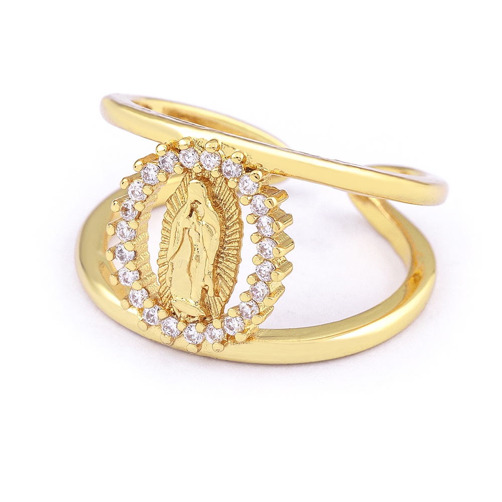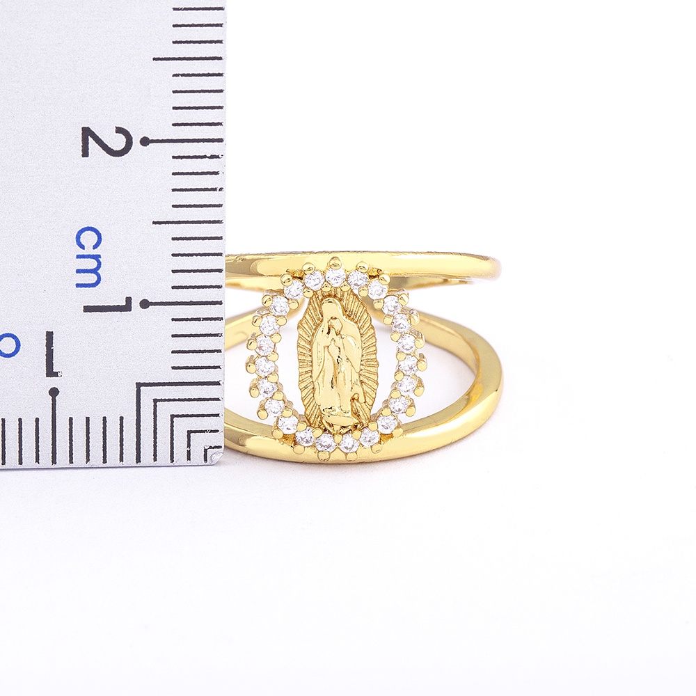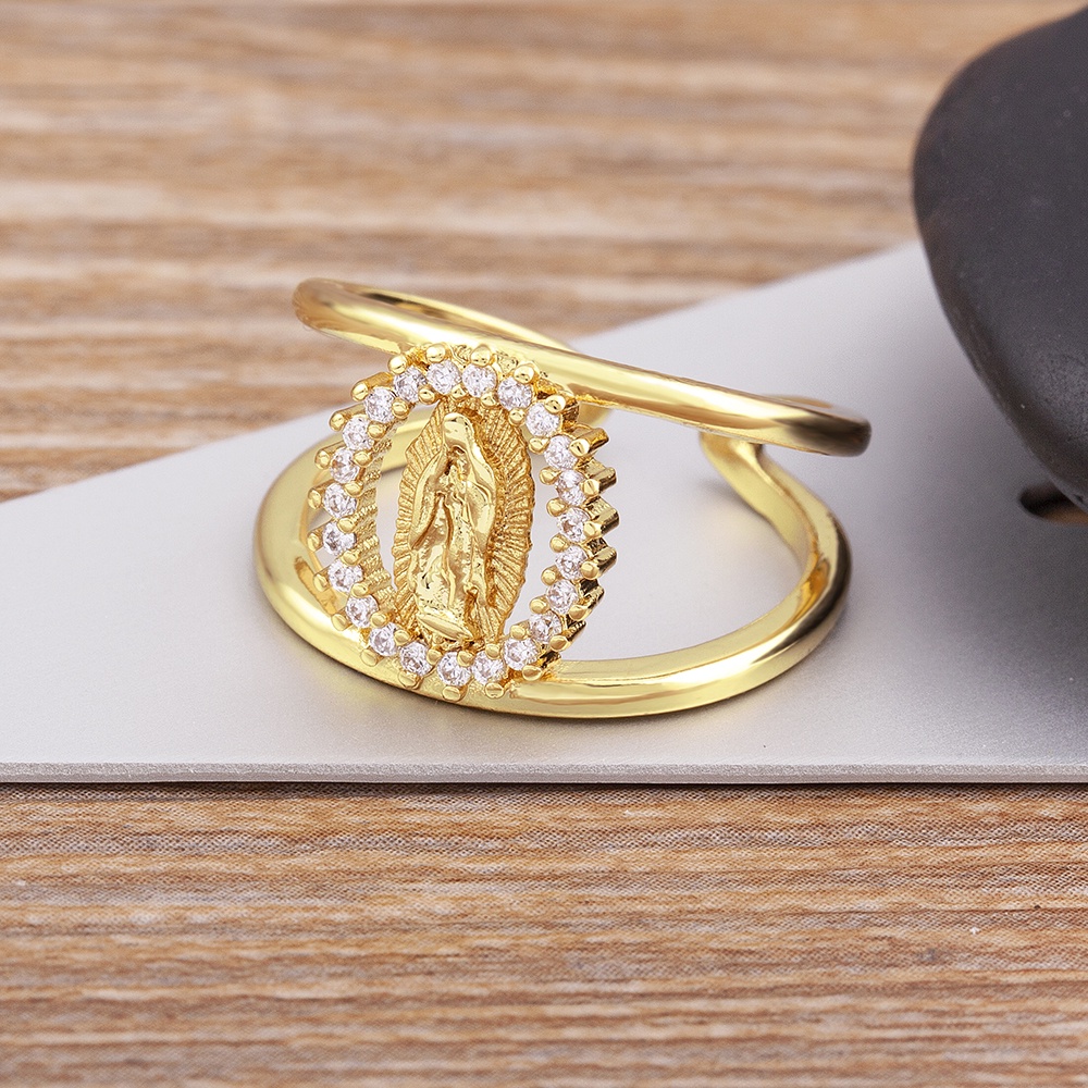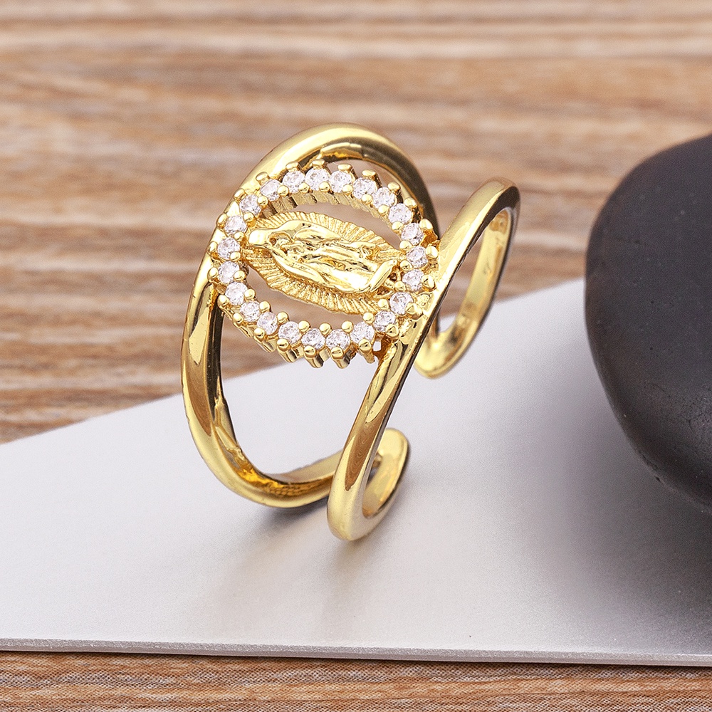 Zircônio Clássico Redondo Incrustado Maria Anel Igreja Ajustável Joias Femininas Religiosas