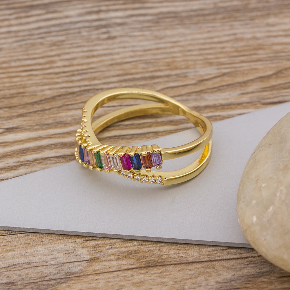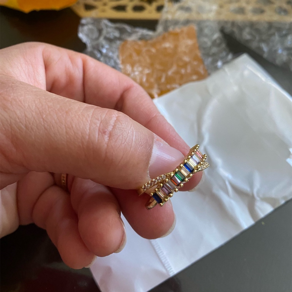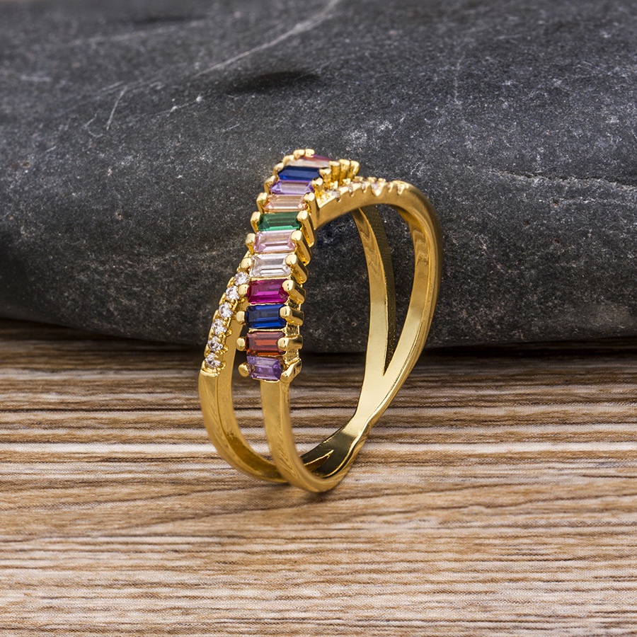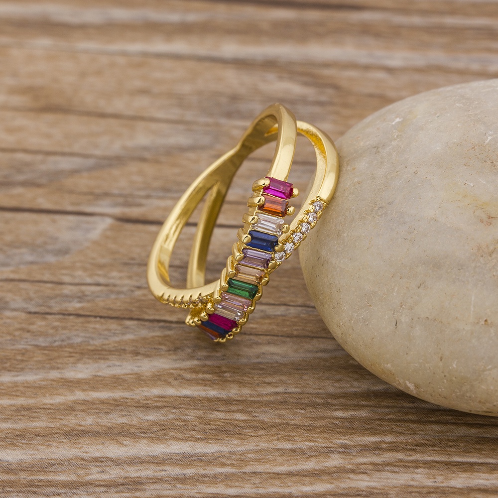 Moda CZ Rainbow X Anéis De Charme Em Forma De Cruz Casamento Para Festa Feminina Jóias Originais