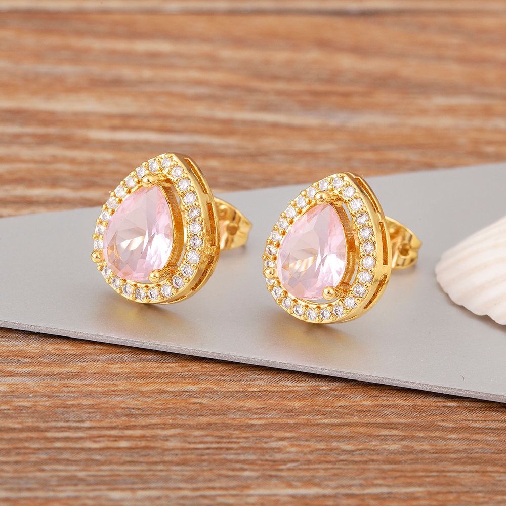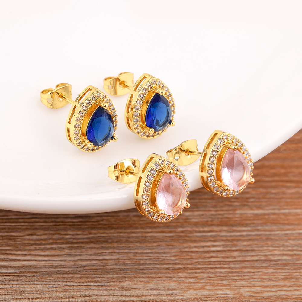 Coreia Popular Forma De Gota D'água Zircônio Cristal Brilhante 18k Brincos De Cavilha Com Banho De Ouro Para Jóias De Orelha Estética Feminina Elegante Presentes De Aniversário