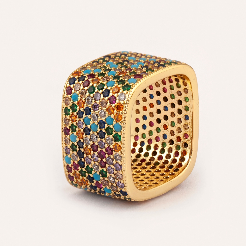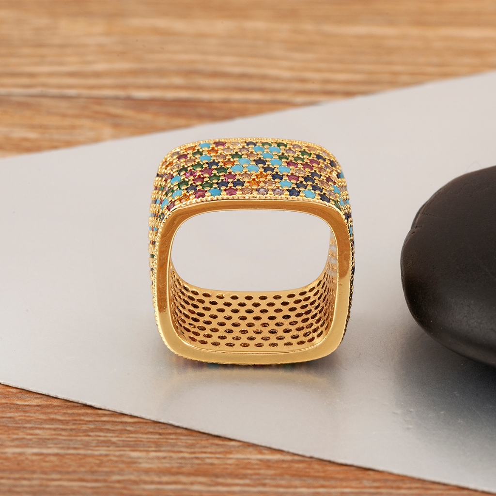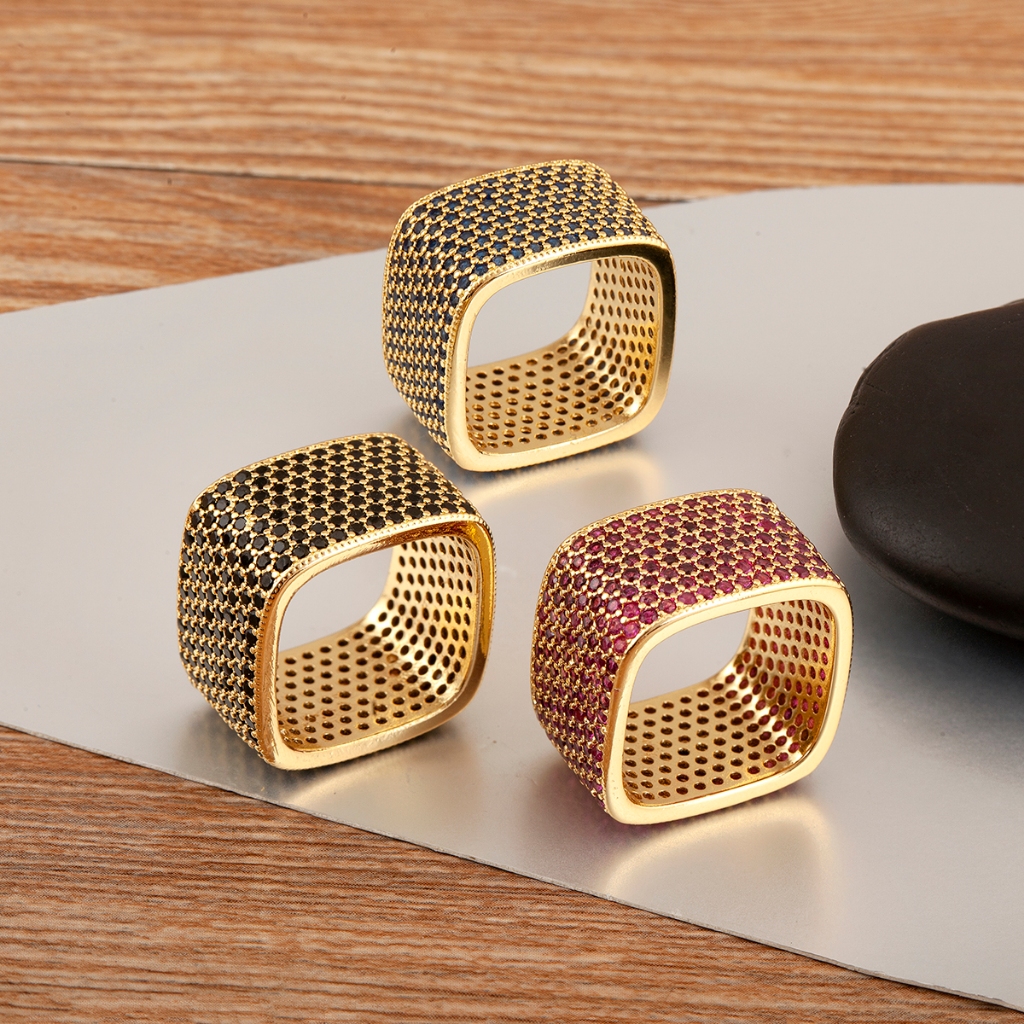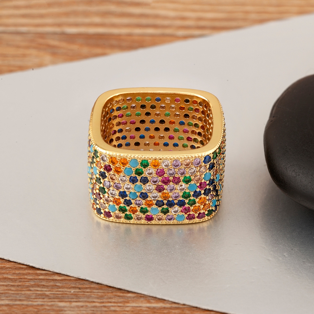 Novo Anel Quadrado Colorido De Zircônia Completa Da Indústria Pesada Para Festas Masculinas E Femininas , Presentes De A