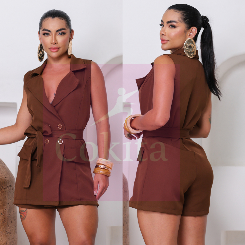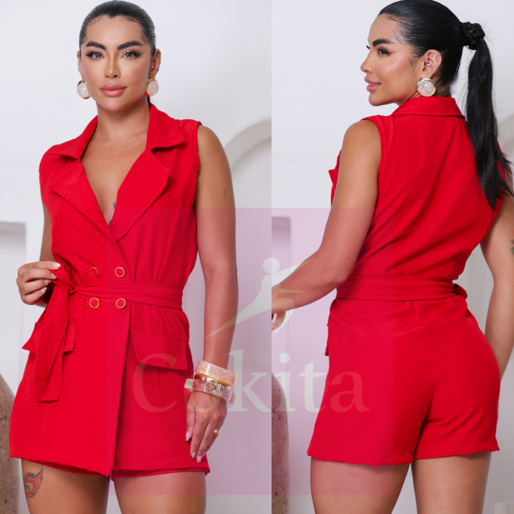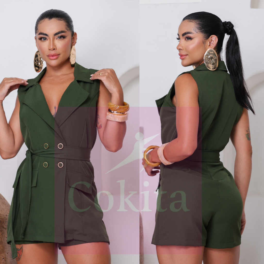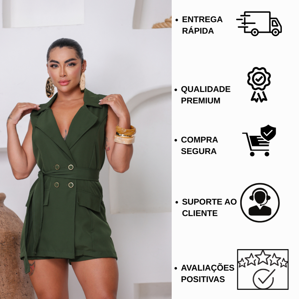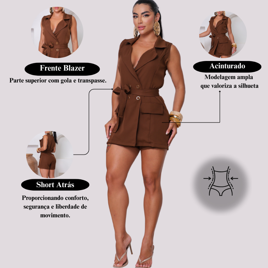 Macaquinho Feminino Social Blazer Premium Alfaiataria com Cinto Elegante e Sofisticado