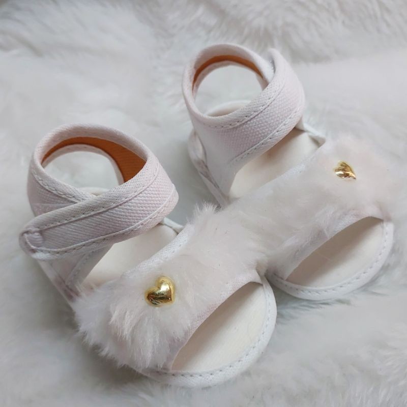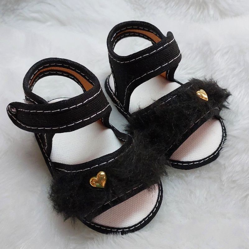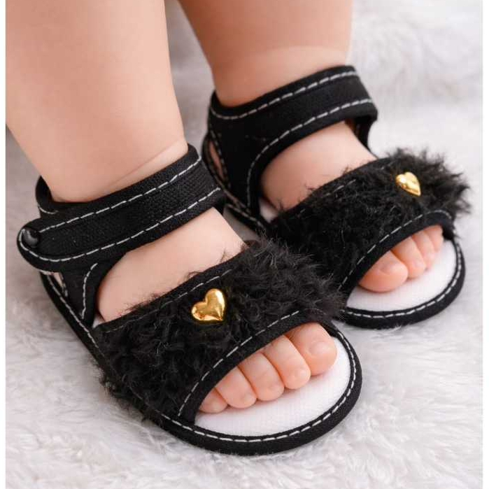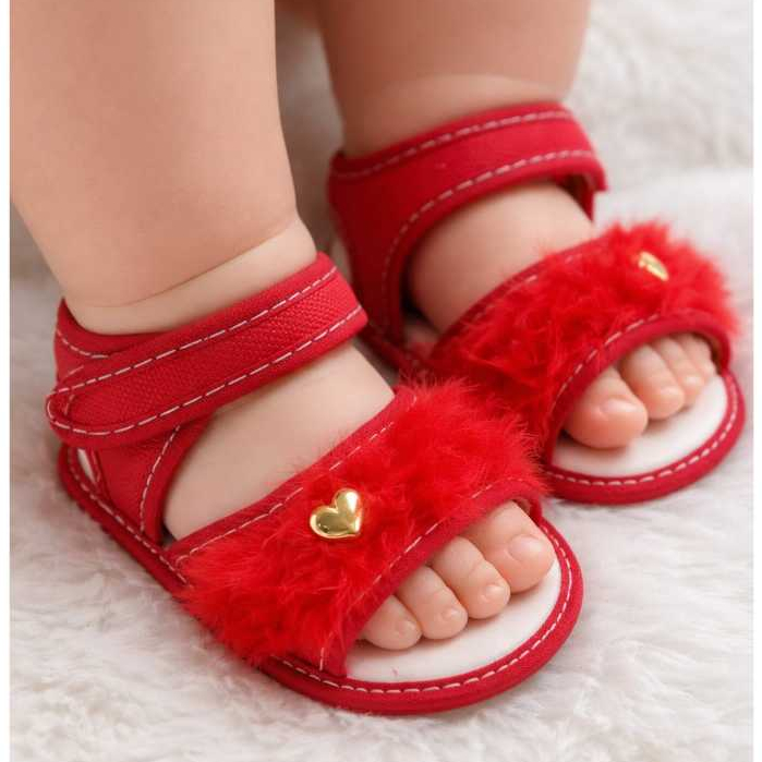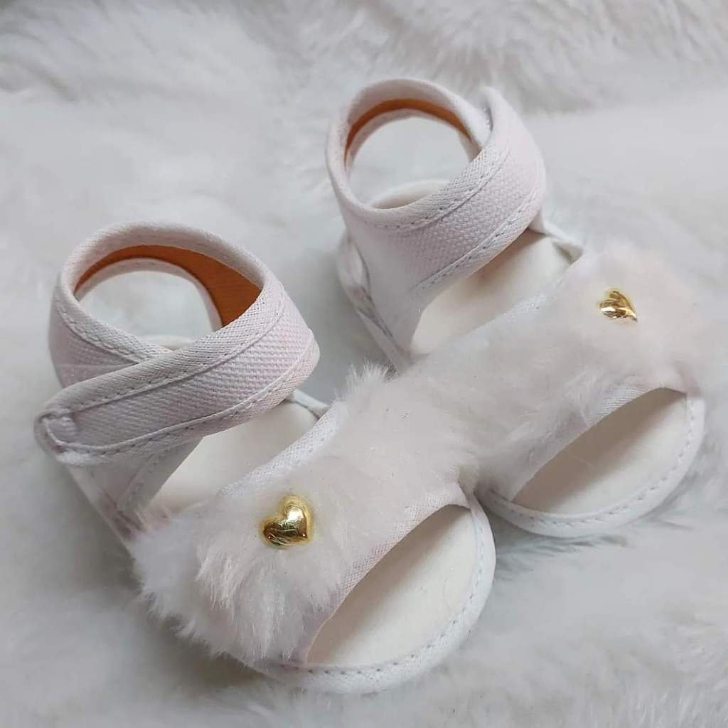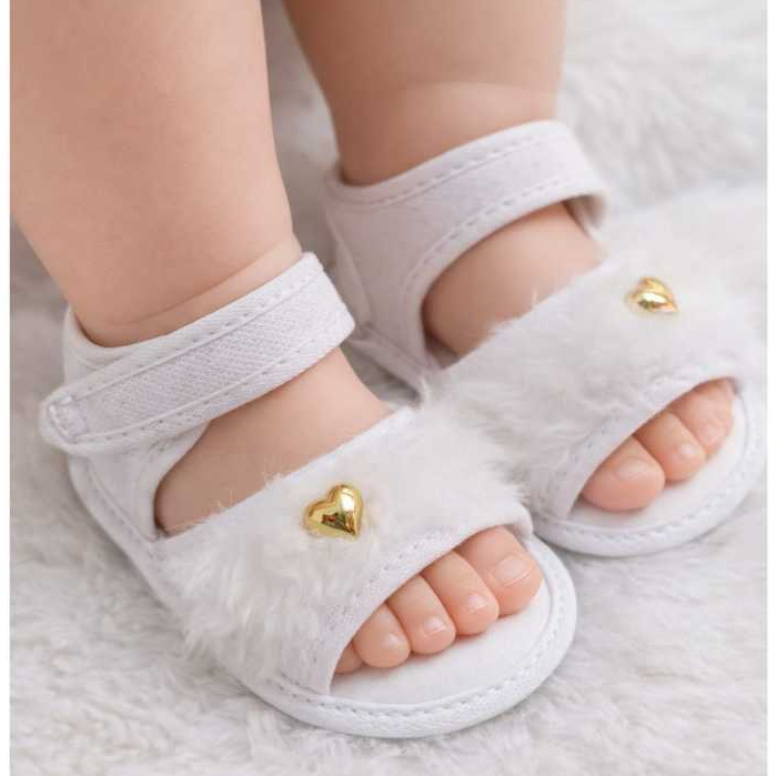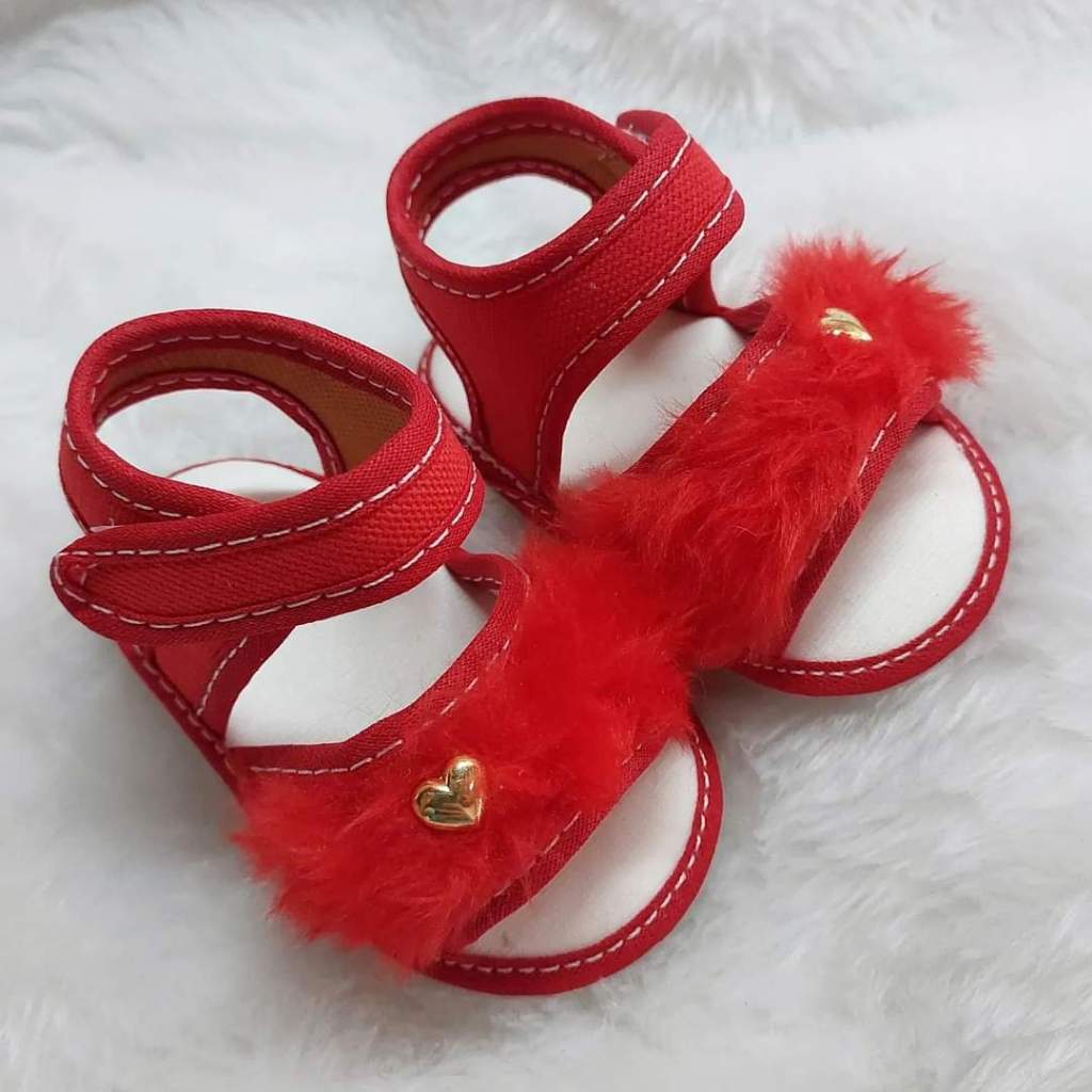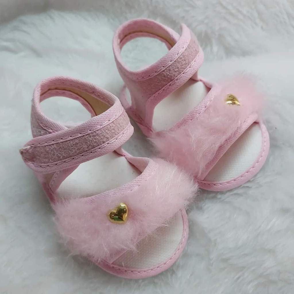 Sandália PELÚCIA Para Bebes Menina Coração Pelinho Confortável Fofinha