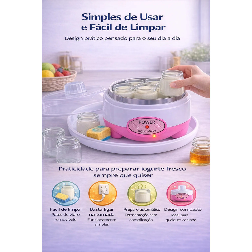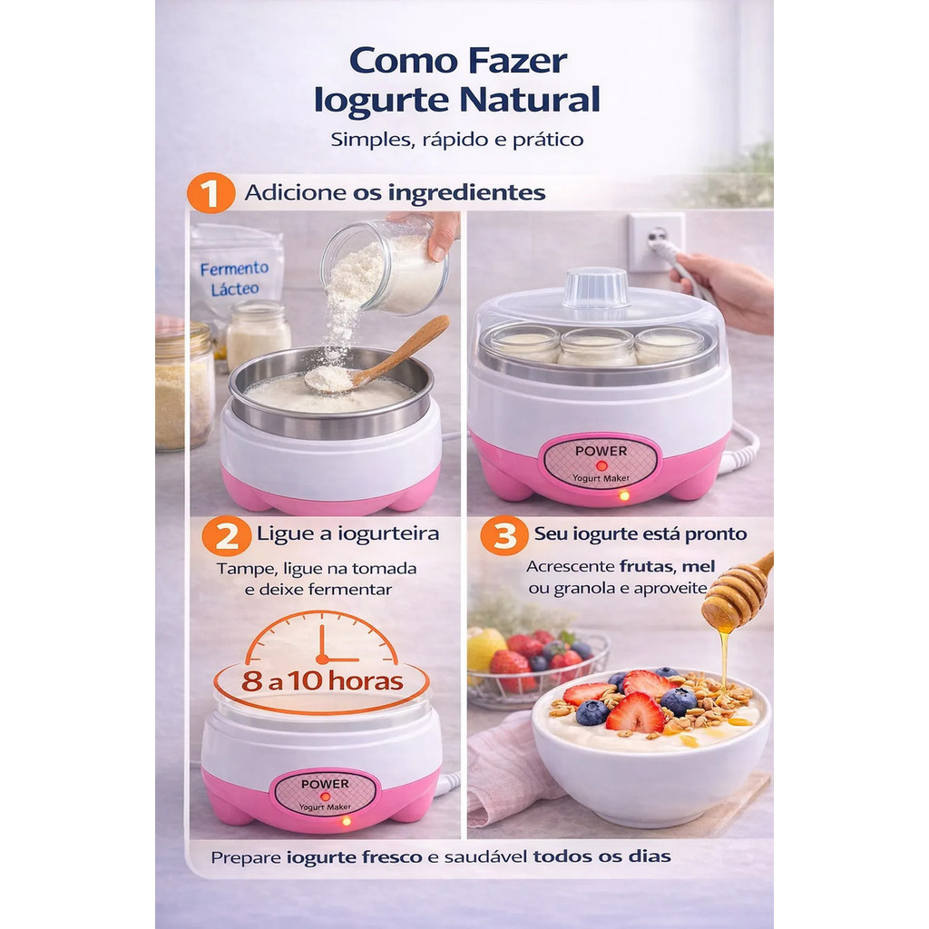 Máquina Fazer Iogurte Natural Grego Iogurteira Elétrica 1l