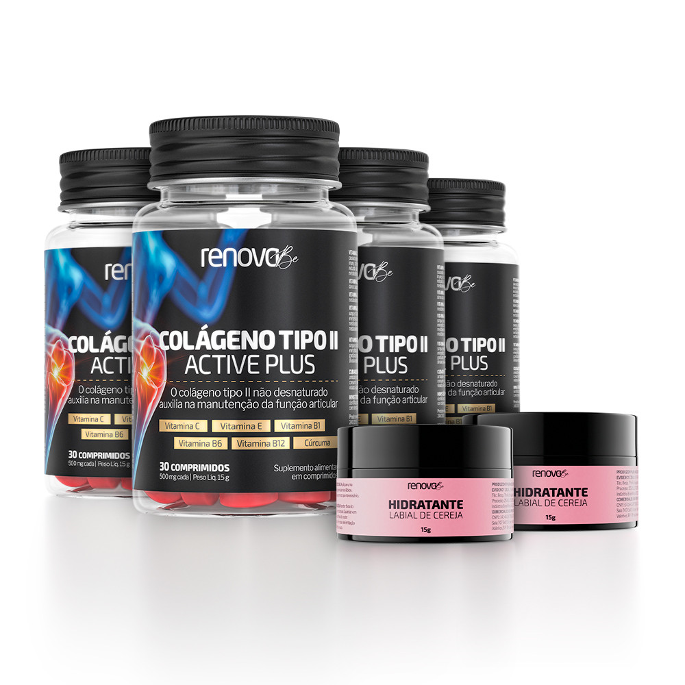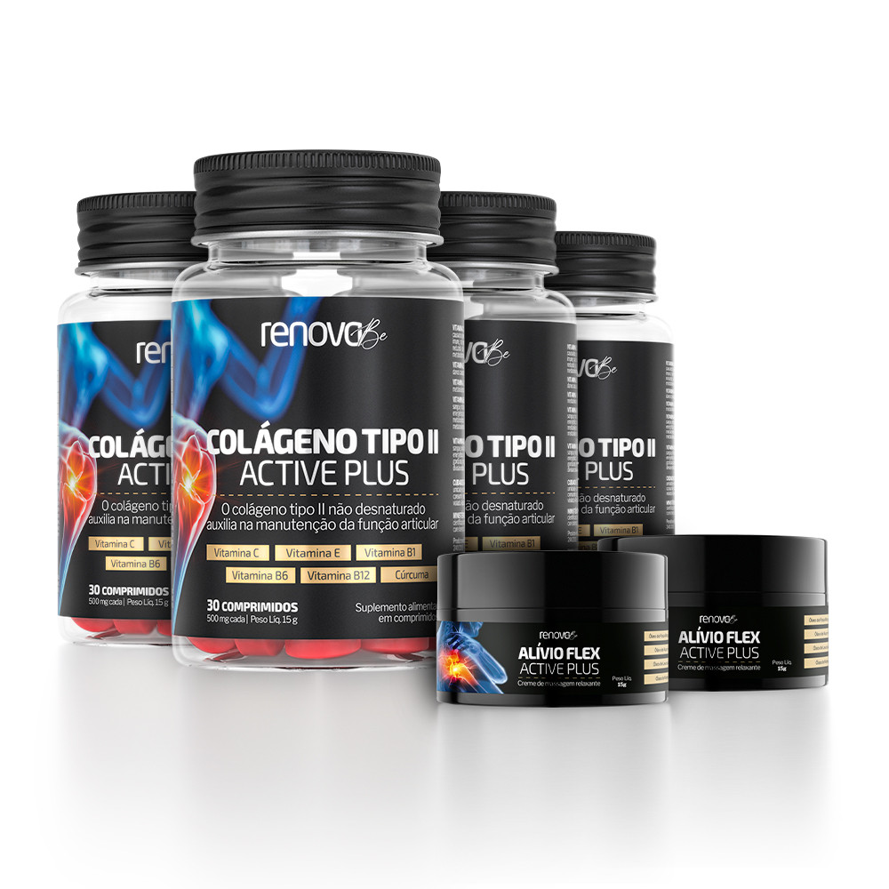 Renova Be Colágeno Tipo II - 4 Potes de 30 Comprimidos para cartilagens e dores