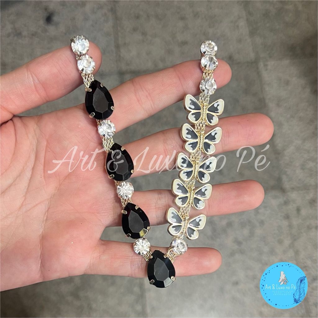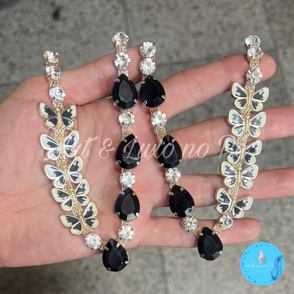 Kit Cabedal Borboletinhas Preto Com Pino Para Chinelos