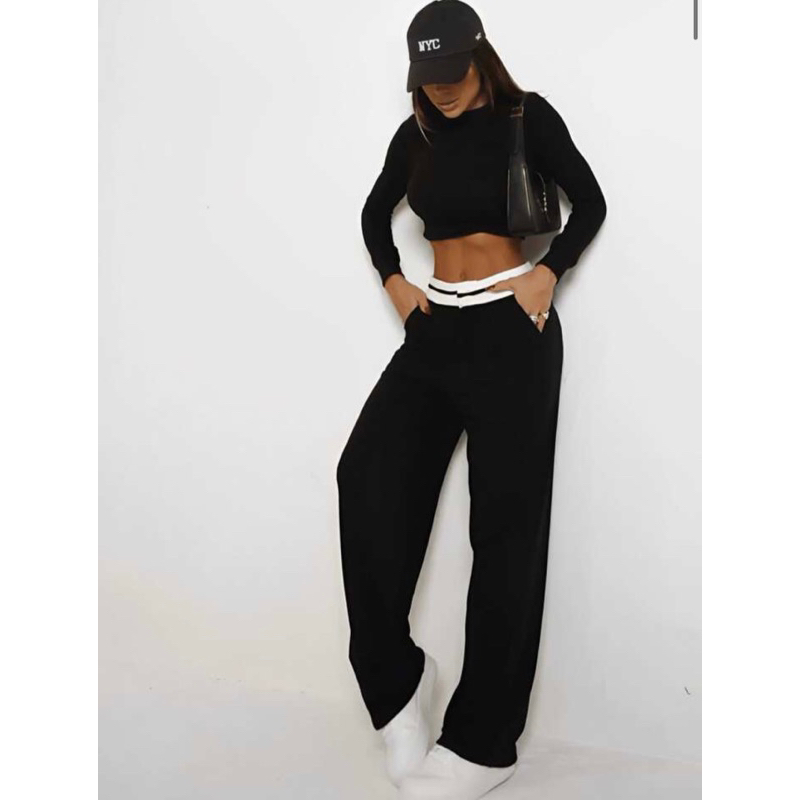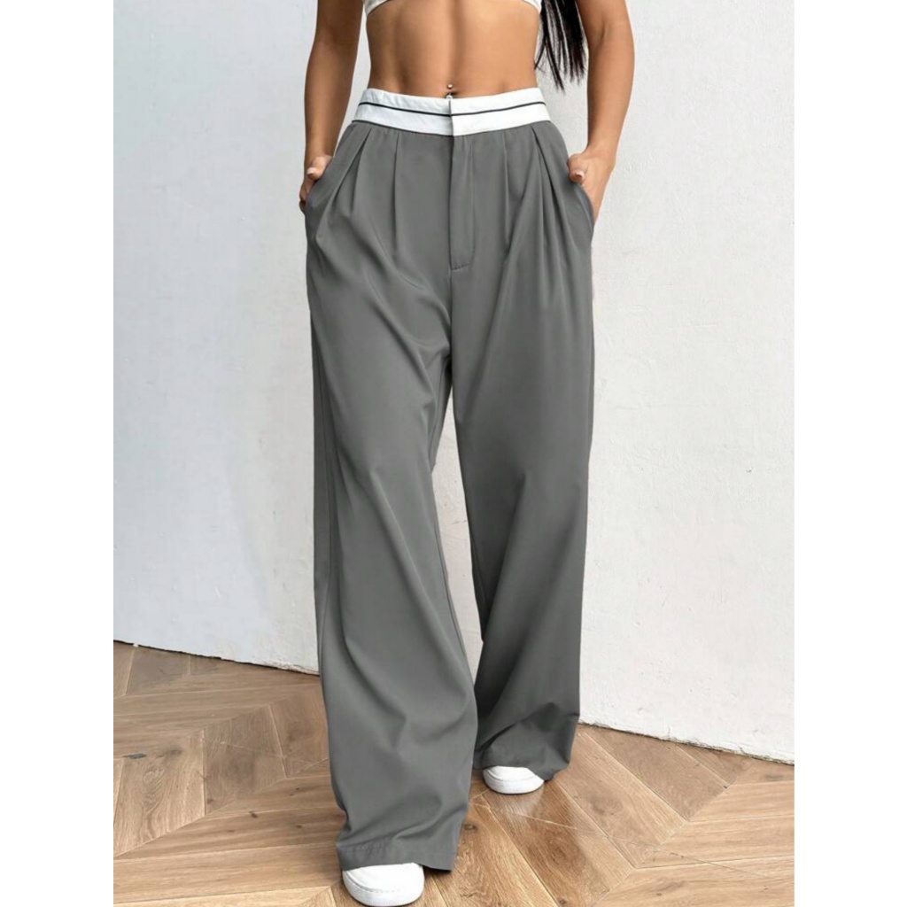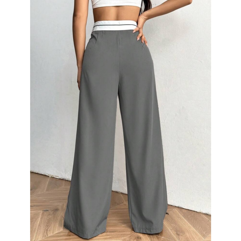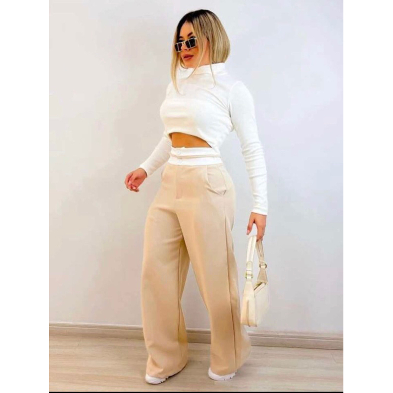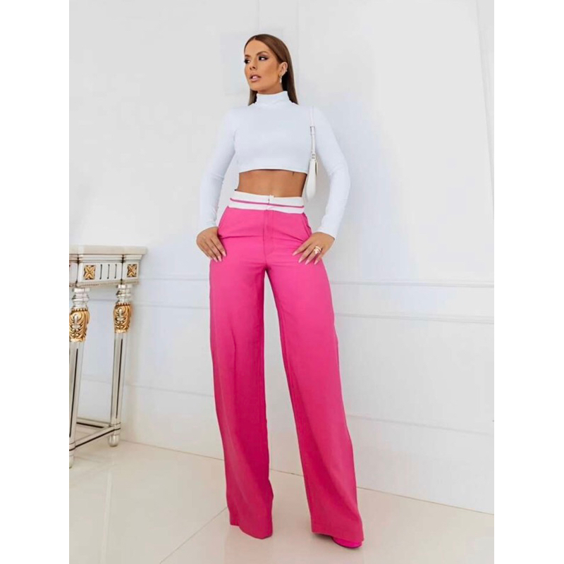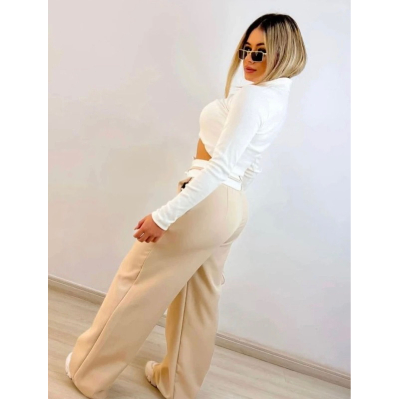 Calça Pantalona Alfaiataria Feminina Cintura Alta Wide Leg Virginia com Bolso