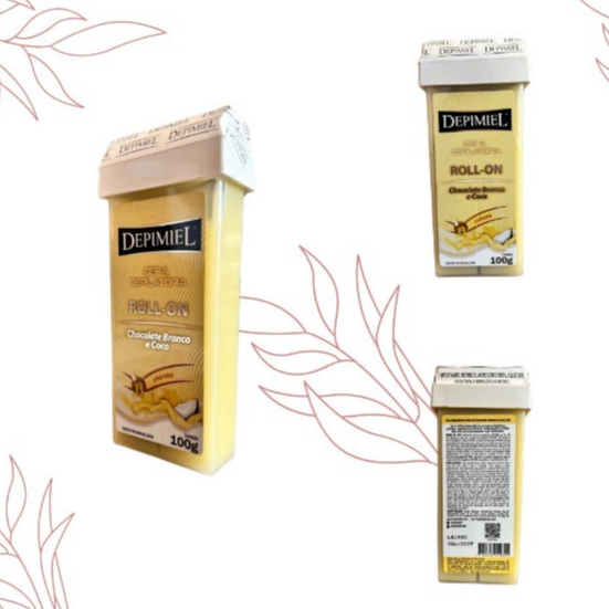 Kit com 3 Cera Depilatória Roll- On Chocolate Branco e Coco 100g - Depimiel