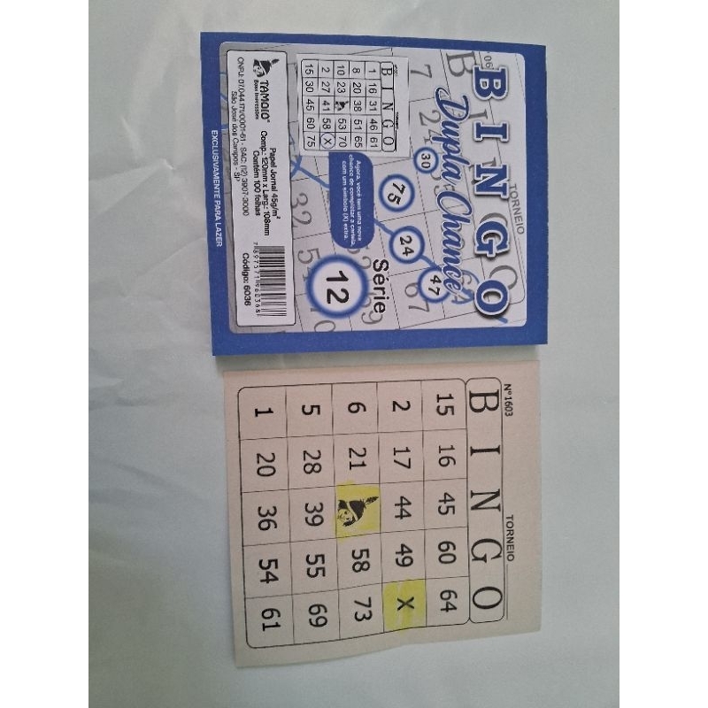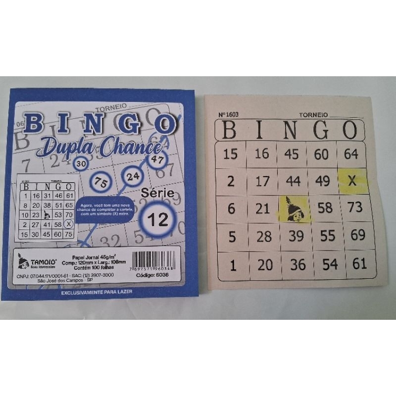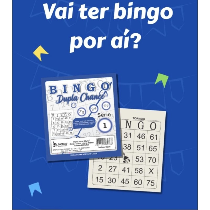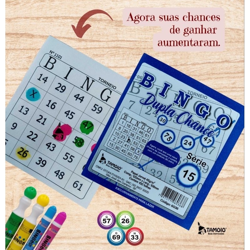 1500 Cartelas de Bingo Dupla Chance (Novidade)