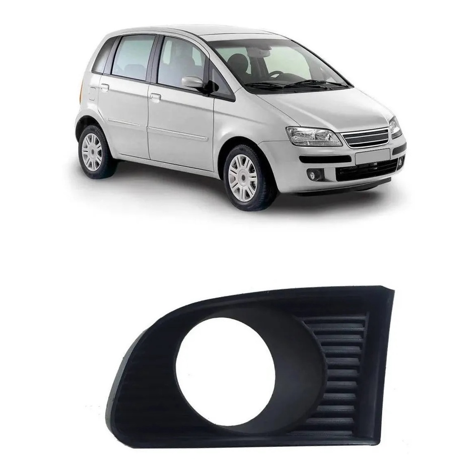 Grade Moldura Milha Fiat Idea 2005 2006 2007 2008 2009 2010 Com Furo Preto