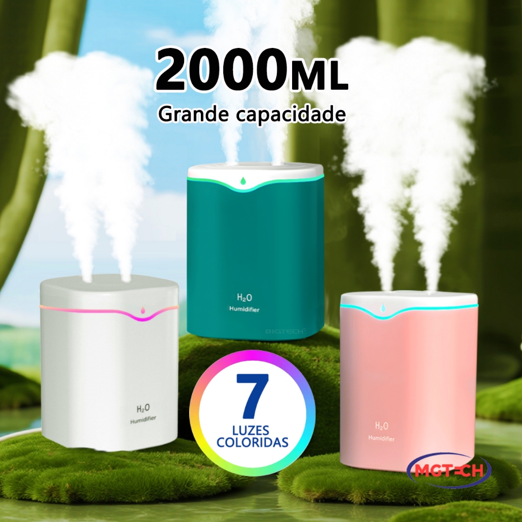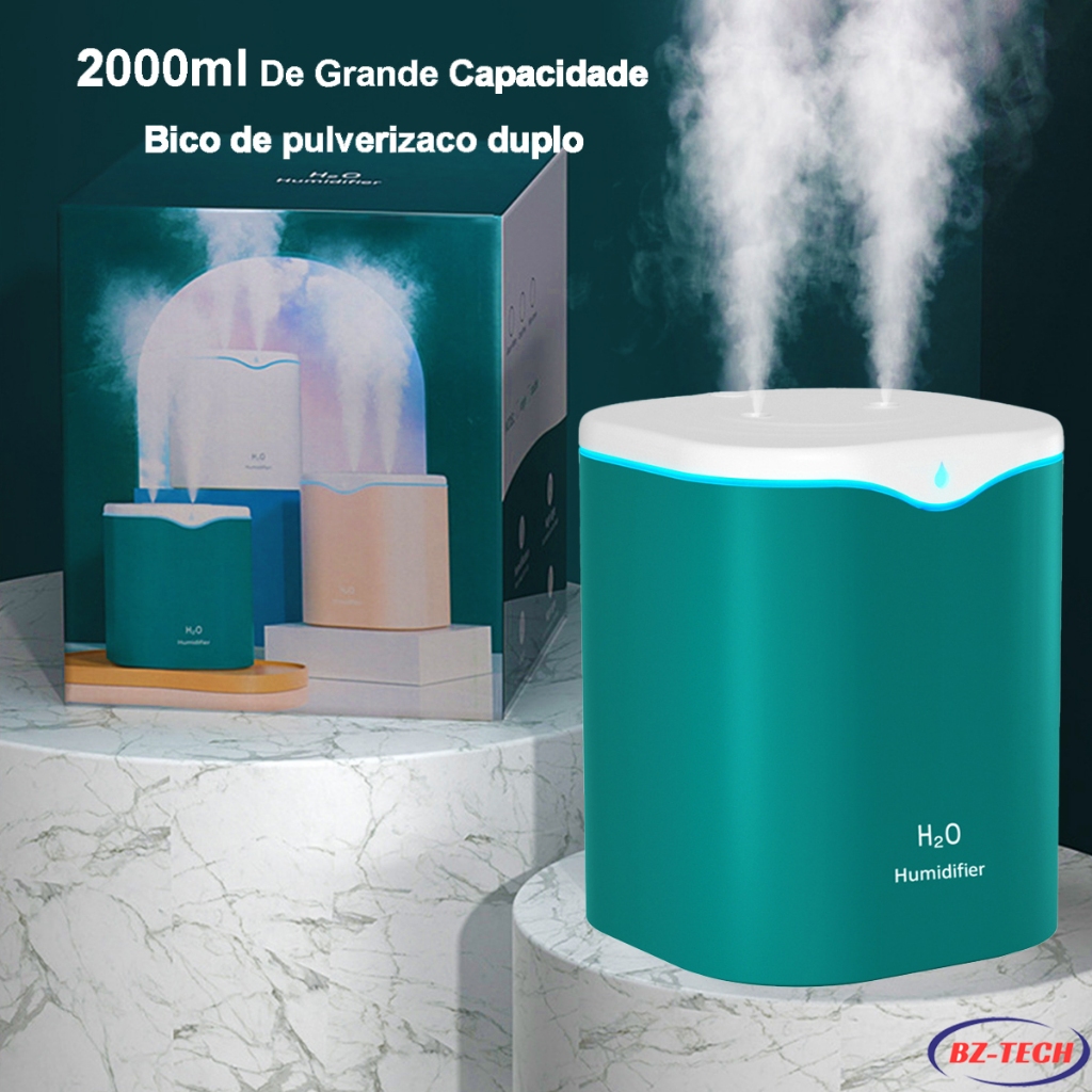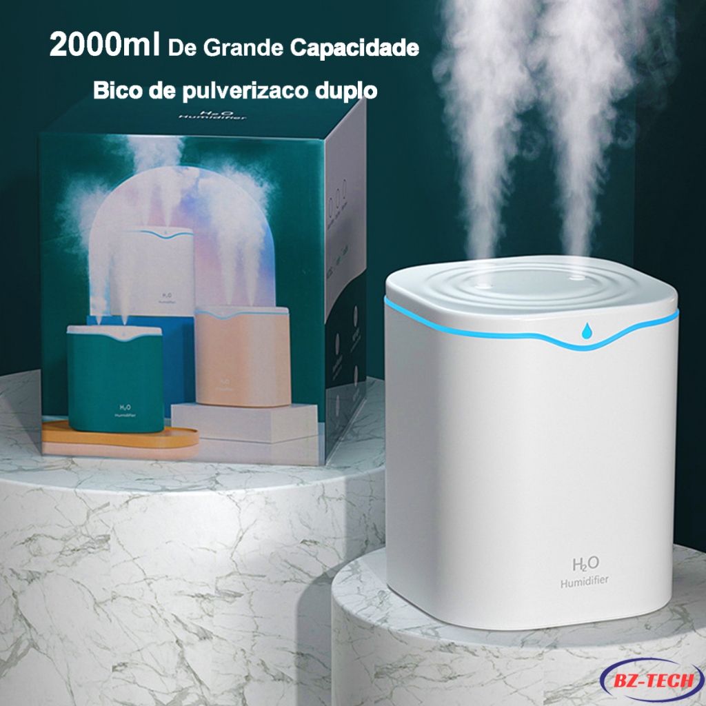 Grande Umidificador De Ar Aromatizador De Ambiente Com Bico Duplo Difusor Elétrico Usb Led 2000ml