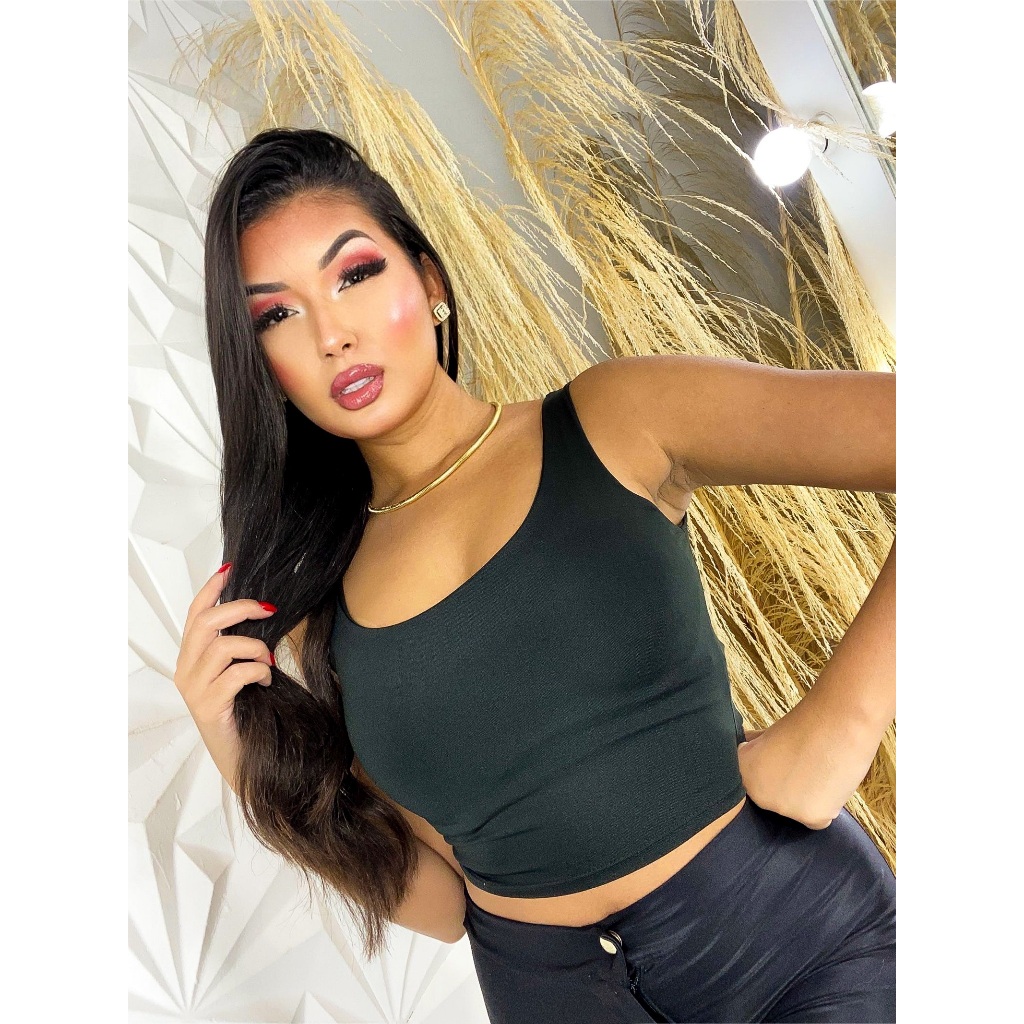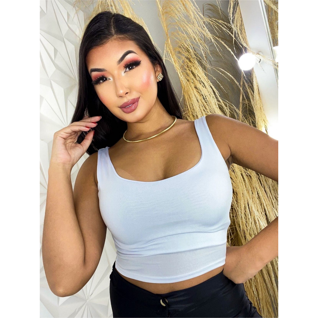 Cropped Feminino Alça Grossa em Suplex com Forro Duplo Sustentação e Conforto