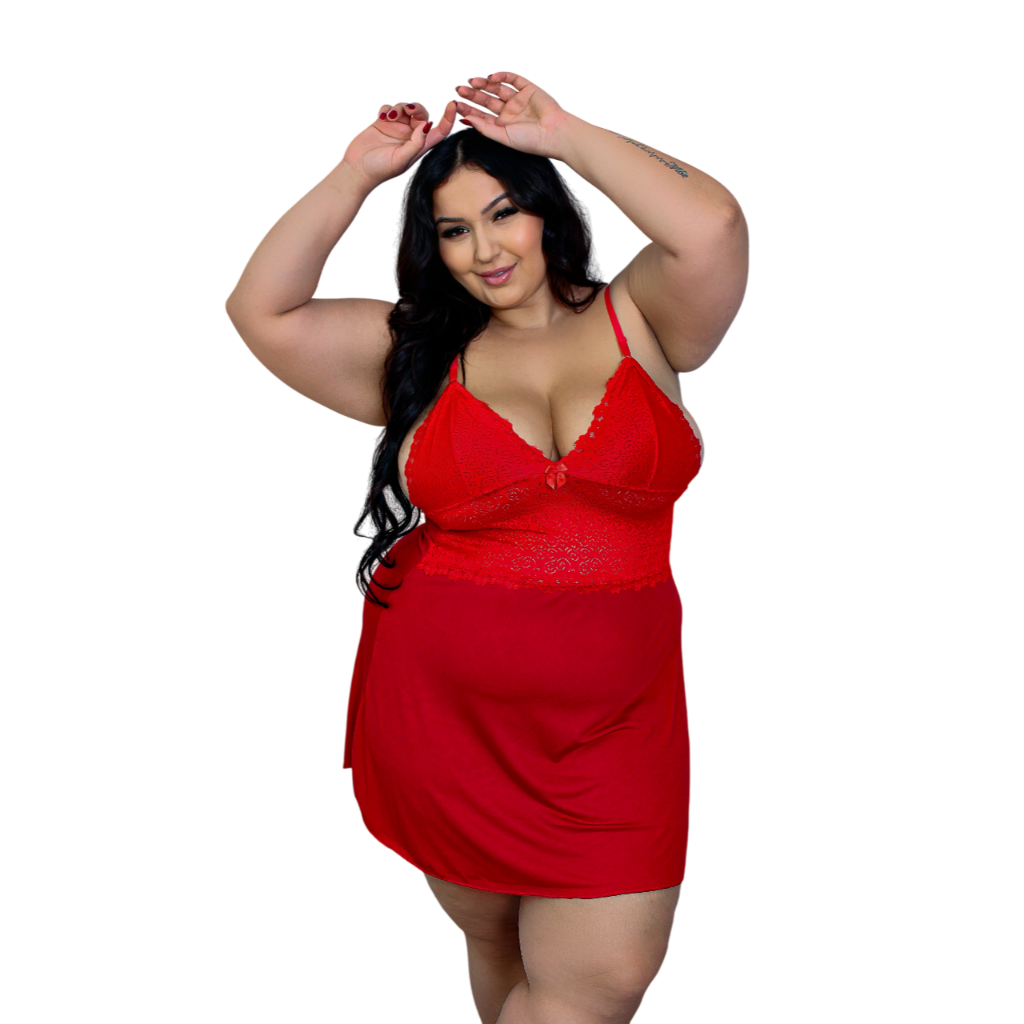 Camisola Plus Size Sensual Sem Bojo Detalhe em Renda Lingerie Feminina Pijama Sexy Linha Noite