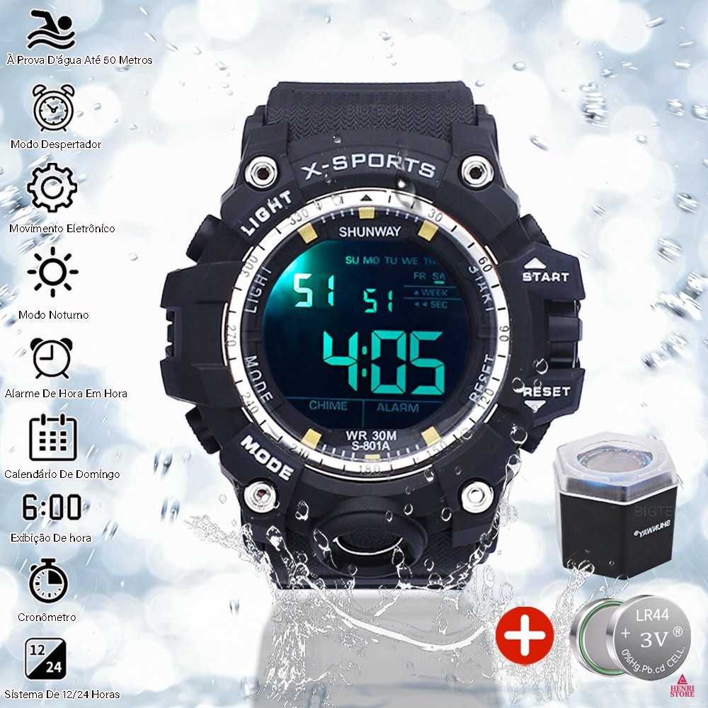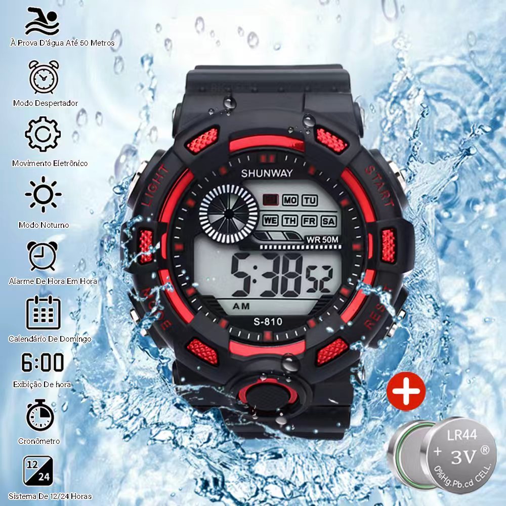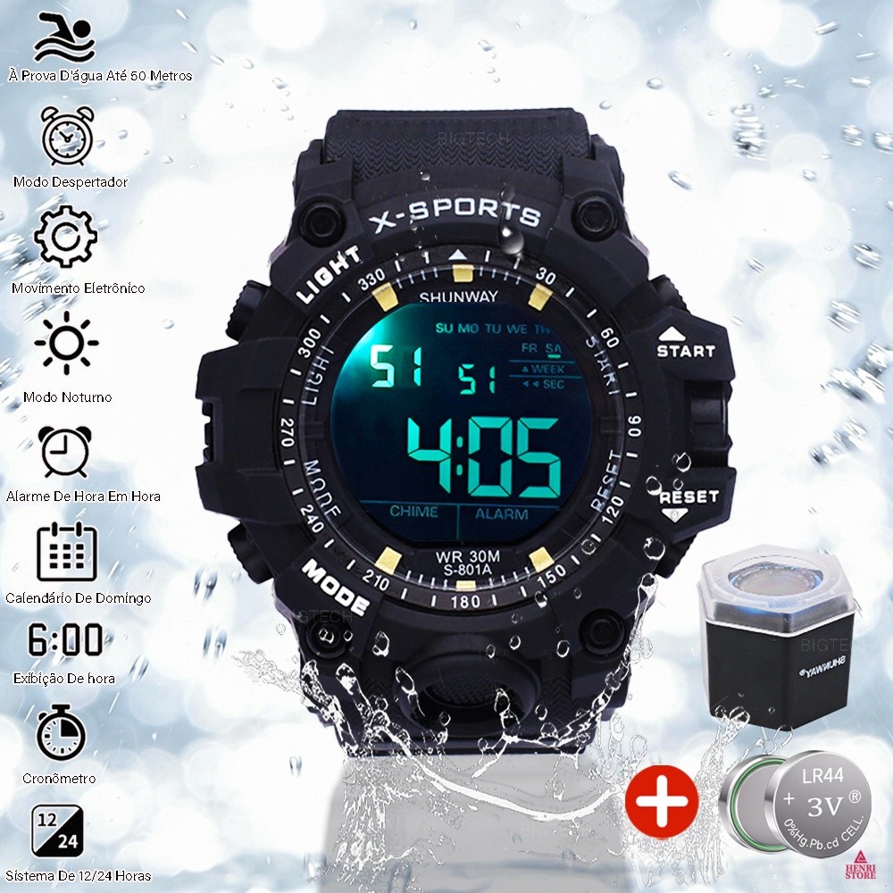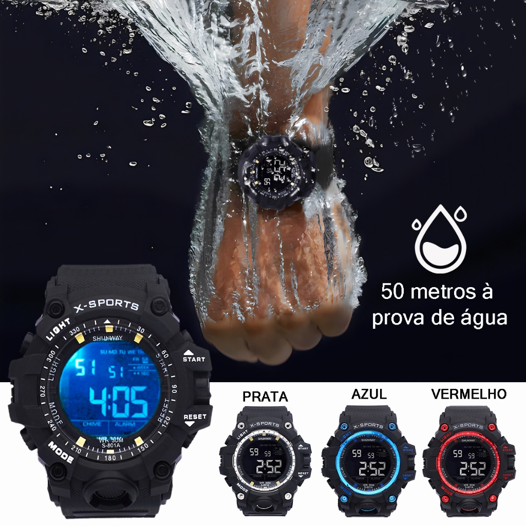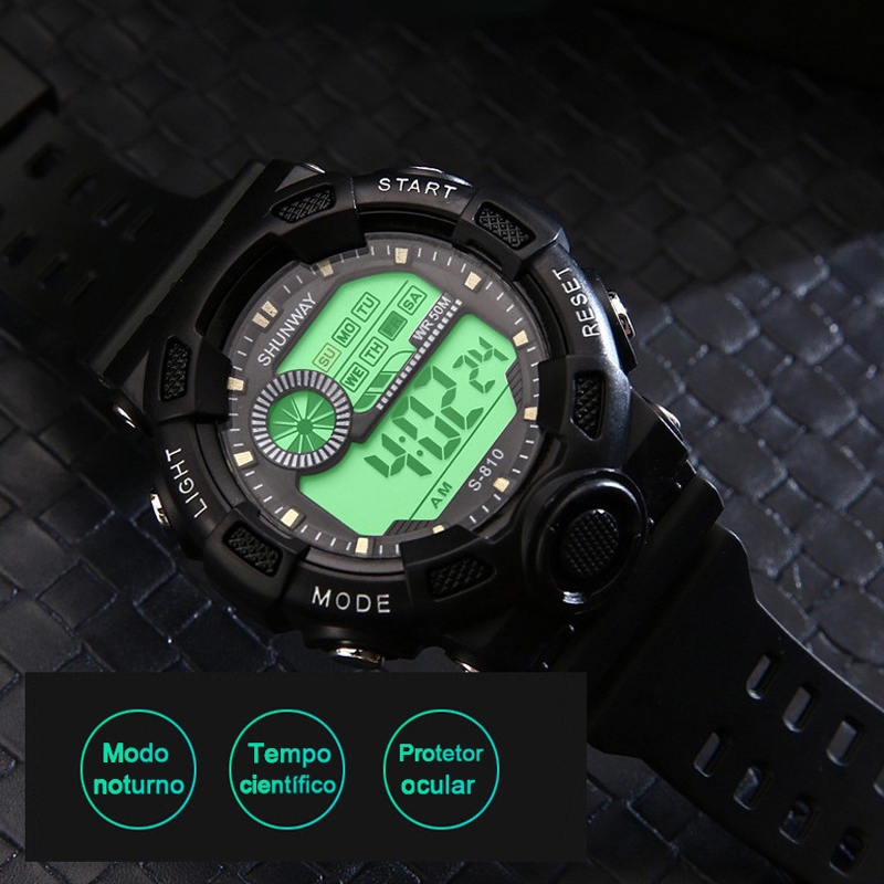 Relógio Masculino Digital Militar Esportivo Resistente à água Cronômetro LED Pulseira De Silicone