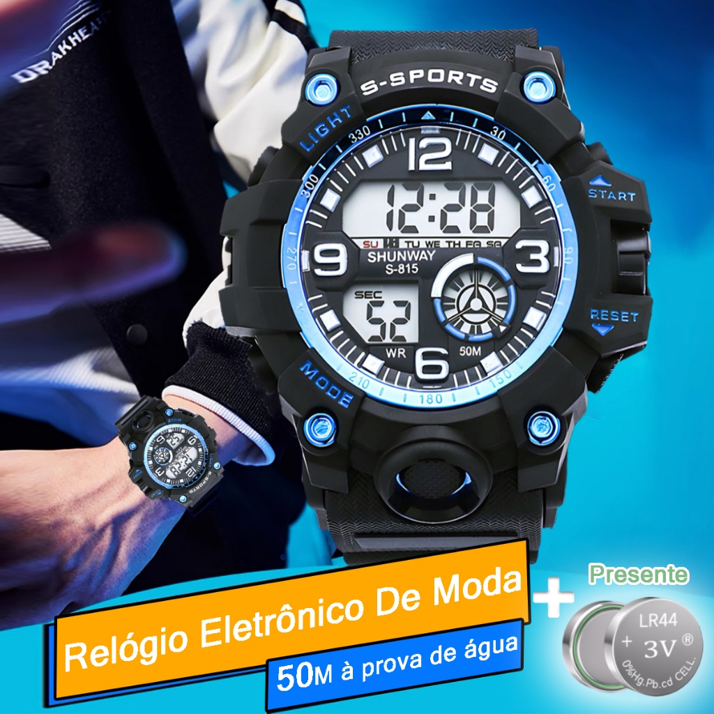 Relógio Masculino Digital Esportivo À Prova D'Água Com Cronômetro Alarme Silicone Led Original S815