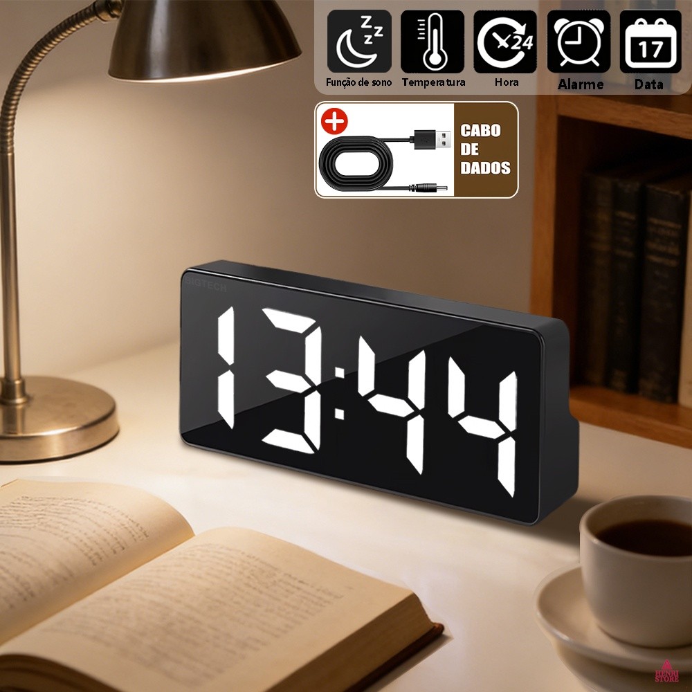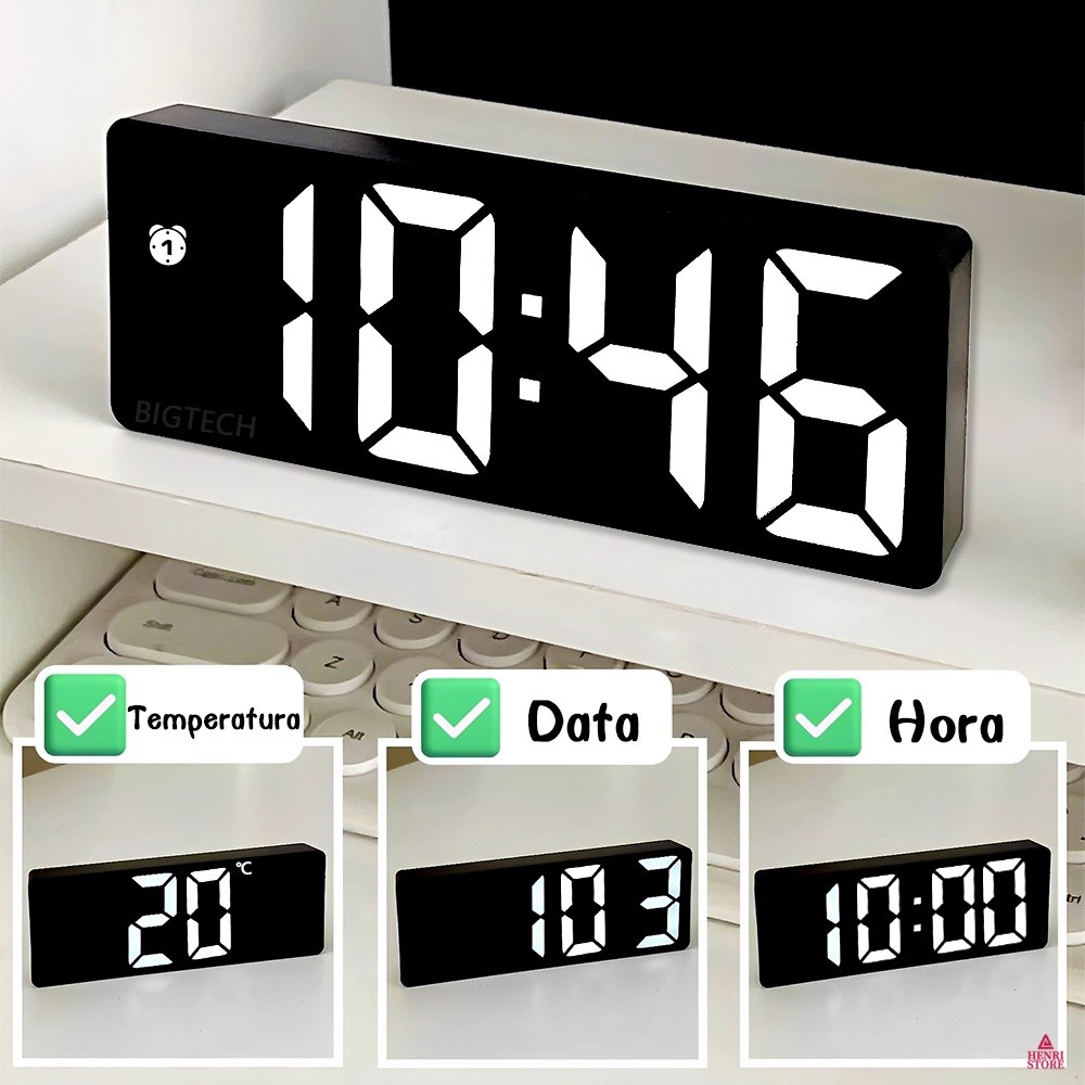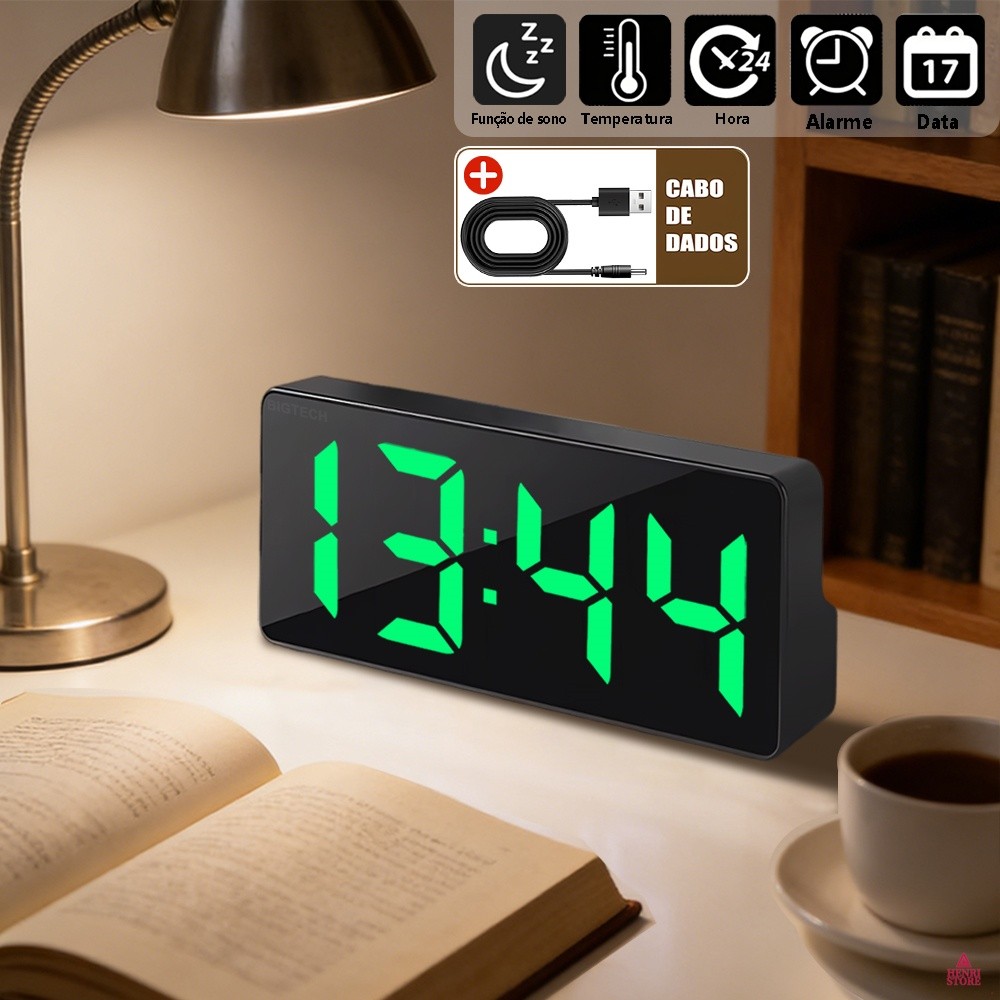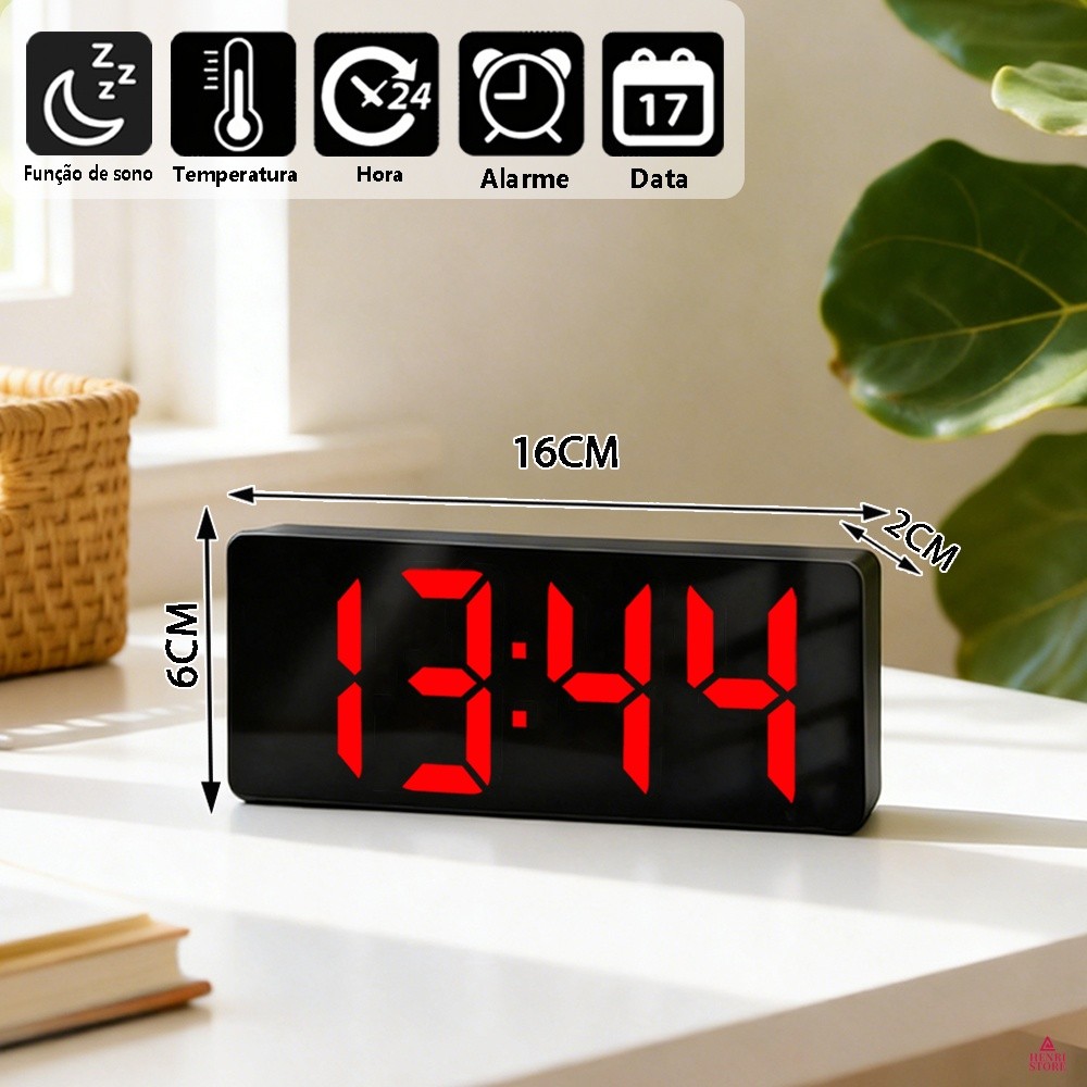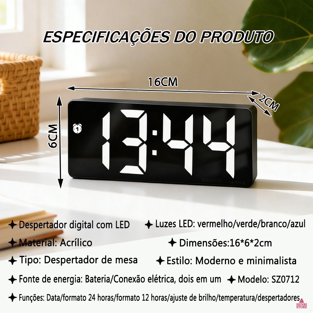 Relógio De Mesa Digital LED 4 Cores Mostra Temperatura Moderno E Minimalista SZ0712