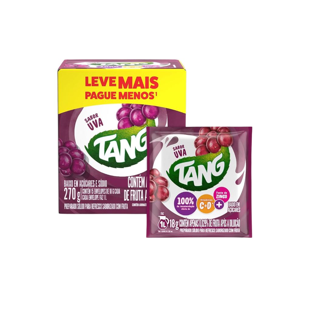 Refresco em Pó Suco Tang C/15 Unidades - Uva ou laranja