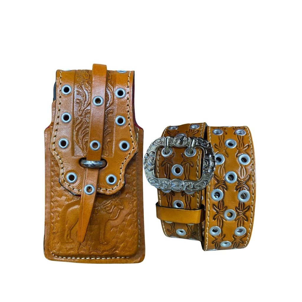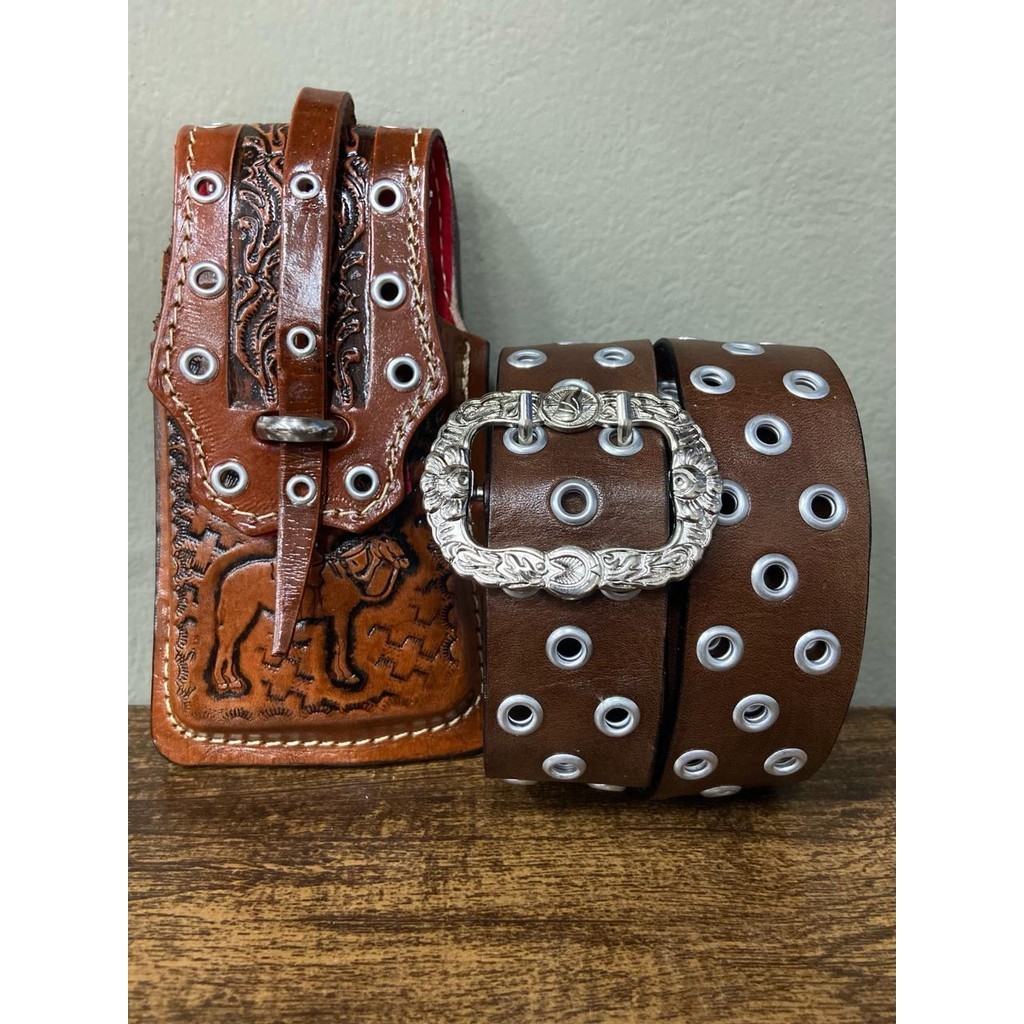 Kit Cinto e Bainha de Celular Universal em Couro Legitimo