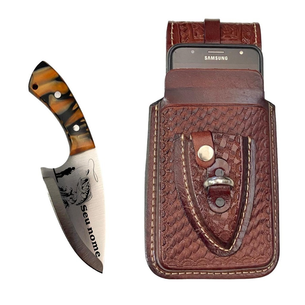 kit Bainha Capinha Universal Couro Celular Faca Personalizar