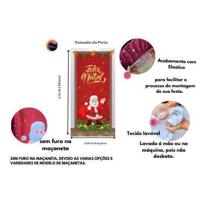 Capa de Porta Decorativa Em Tecido Sublimado 2,15 Altura x 0,90 Largura Com Elastico Nas Laterais NATAL (ENVIO IMADIATO)