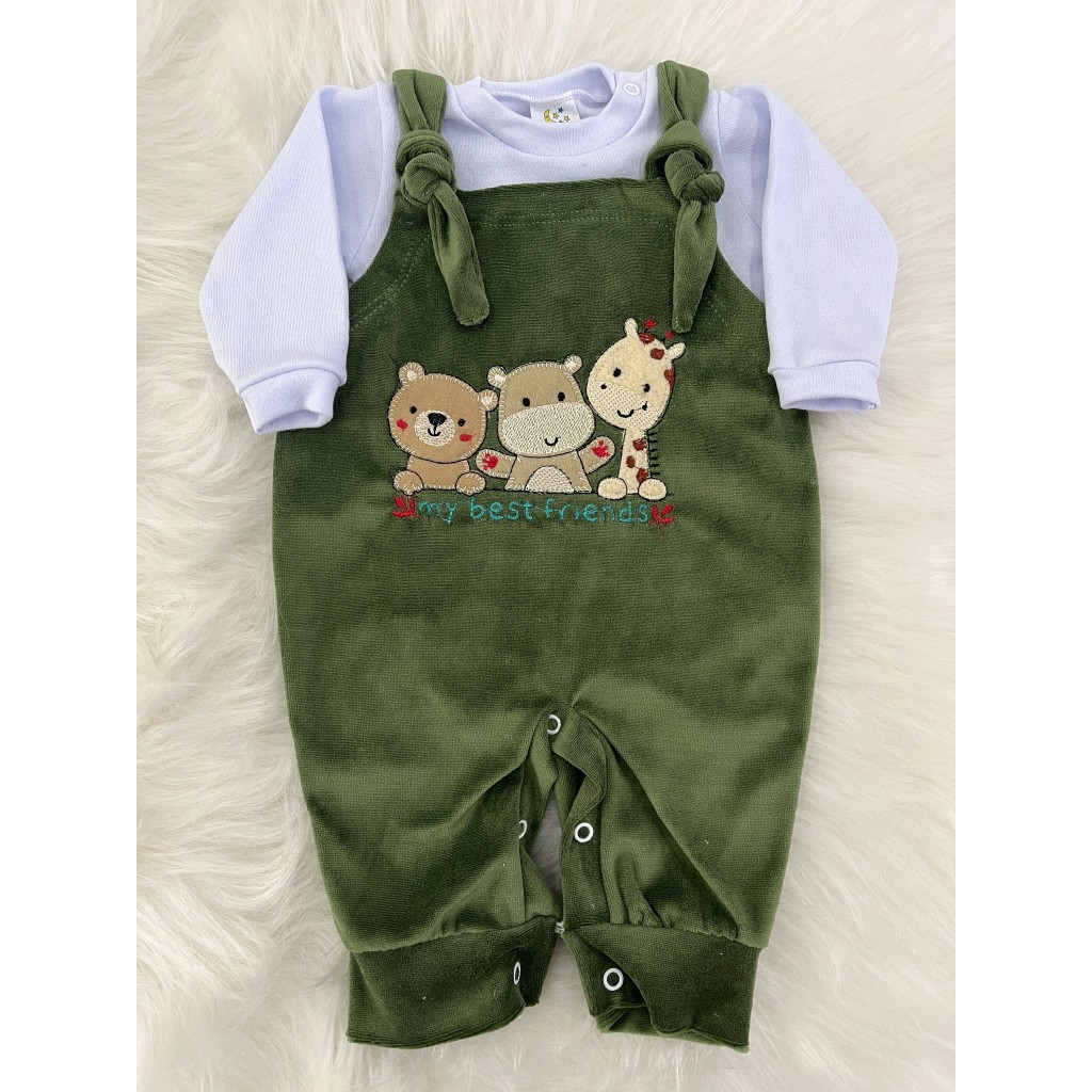 Macacão Jardineira e Body Bebê Plush Baby Bordado Infantil Inverno