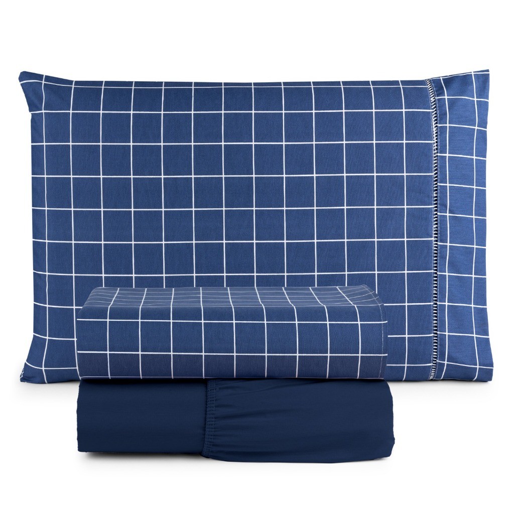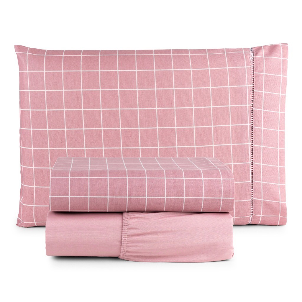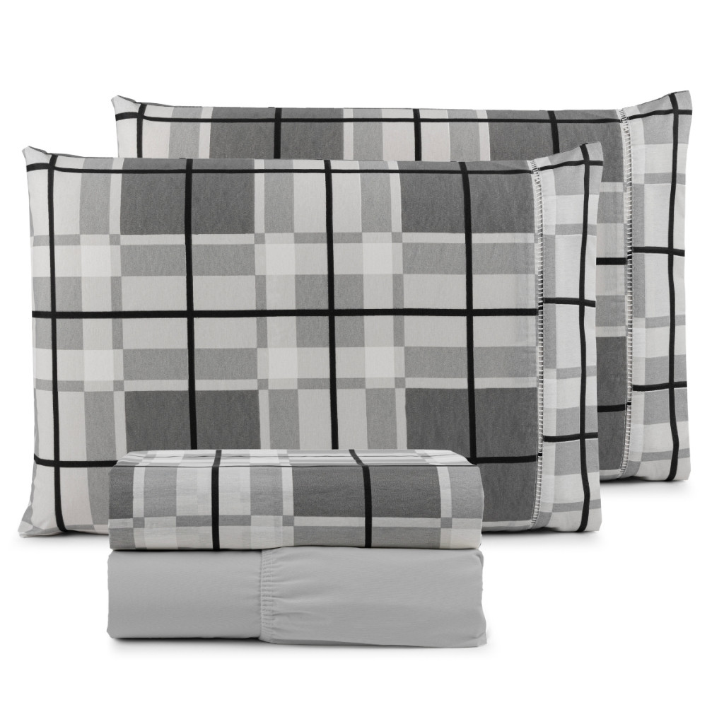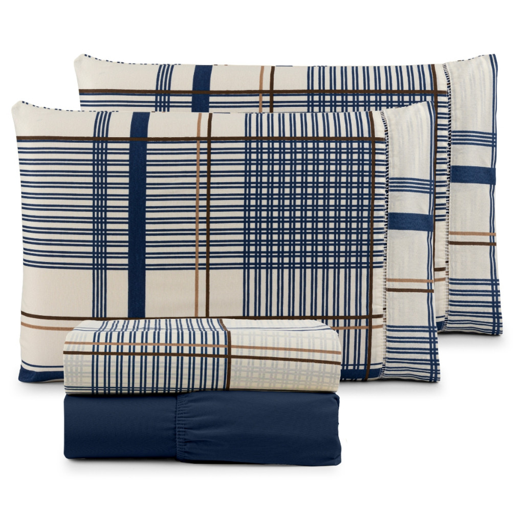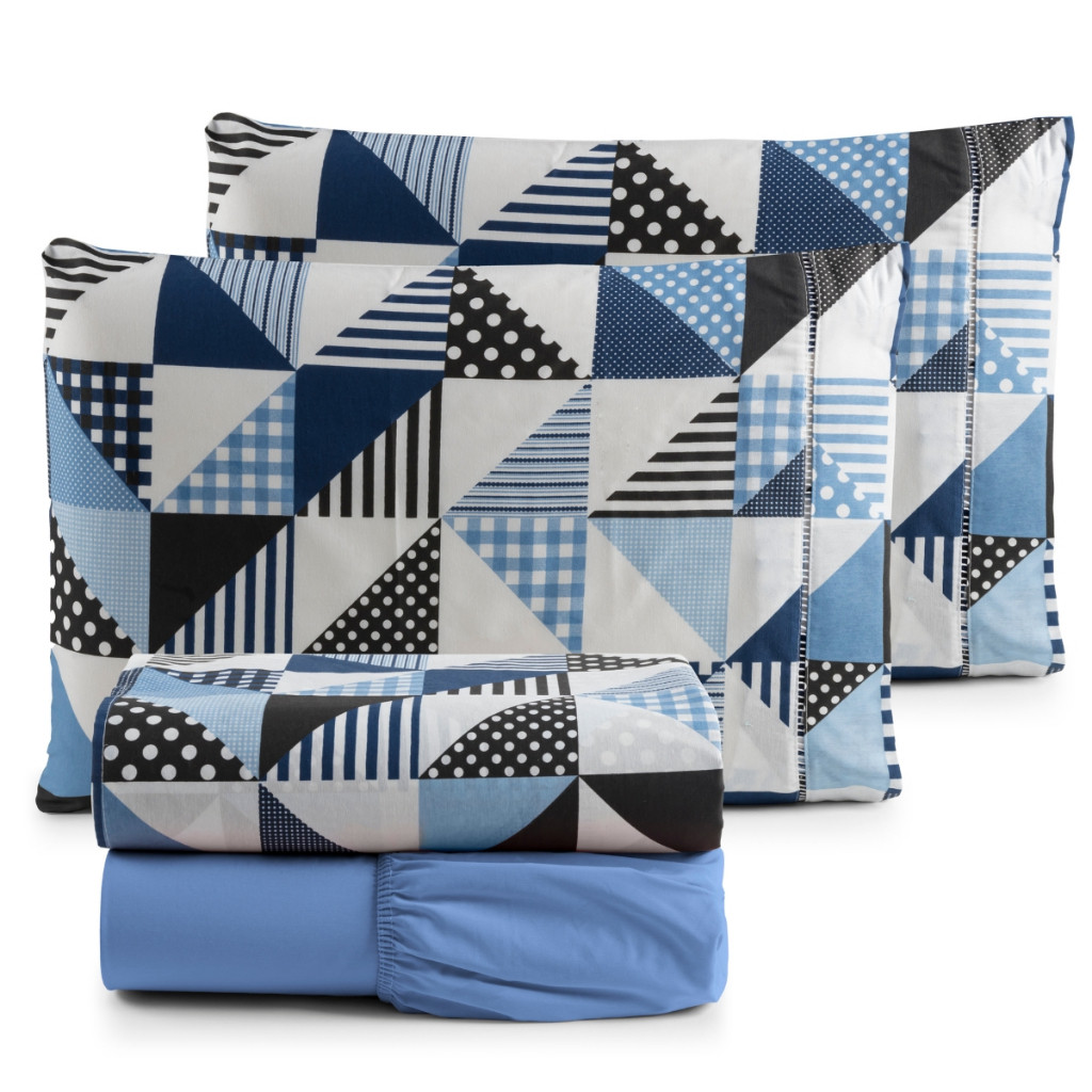Jogo De Lençol 4 Peças Estampado Em Algodão Ponto Palito Casal, Queen e King