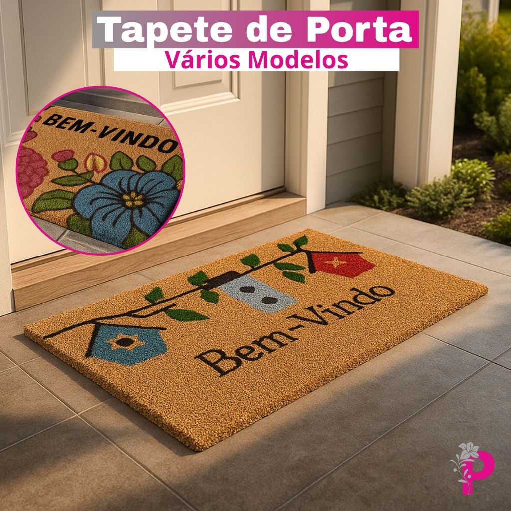 Tapete de Porta Bem Vindo Fibra de Coco Capacho Varias Cores Tamanho 33cm x 60cm