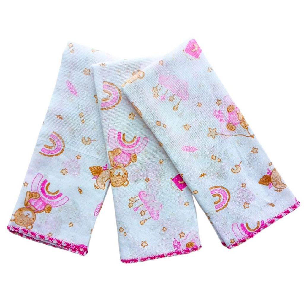 Paninho de Boca Pano Fralda Enxoval Maternidade Higiene Macio 100% Algodão 3 un Menina e Menino
