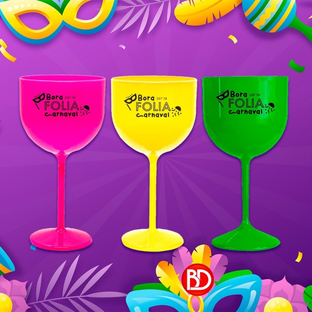 Kit 5 Taça Gin Neon Acrílico 580ml Bora Cair na Folia