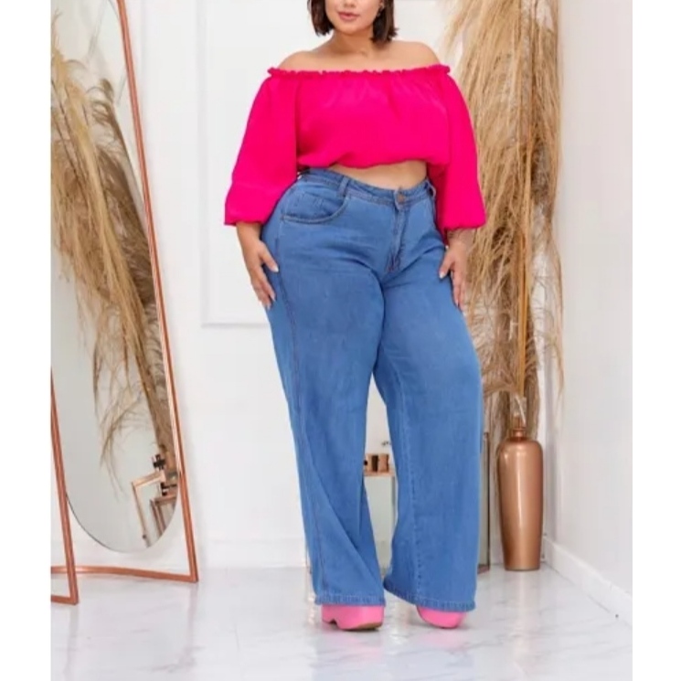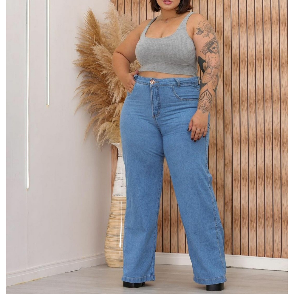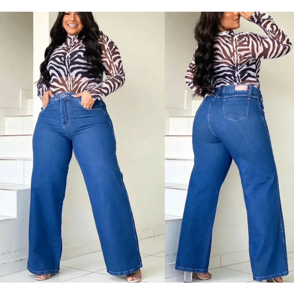 CALÇA JEANS WIDE LEG PLUS SIZE WID LEG PANTALONA 46 ao 56