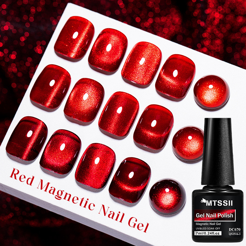 MTSSII 7ml Shine Cat Gel Magnético Para Olhos Esmalte Espumante Vermelho Glitter Semi Permanente Soak Off