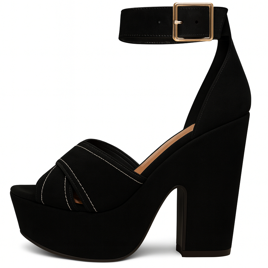 Sandália Salto Alto Feminino Meia Pata Estilo Blogueira Napa Camurça Leve