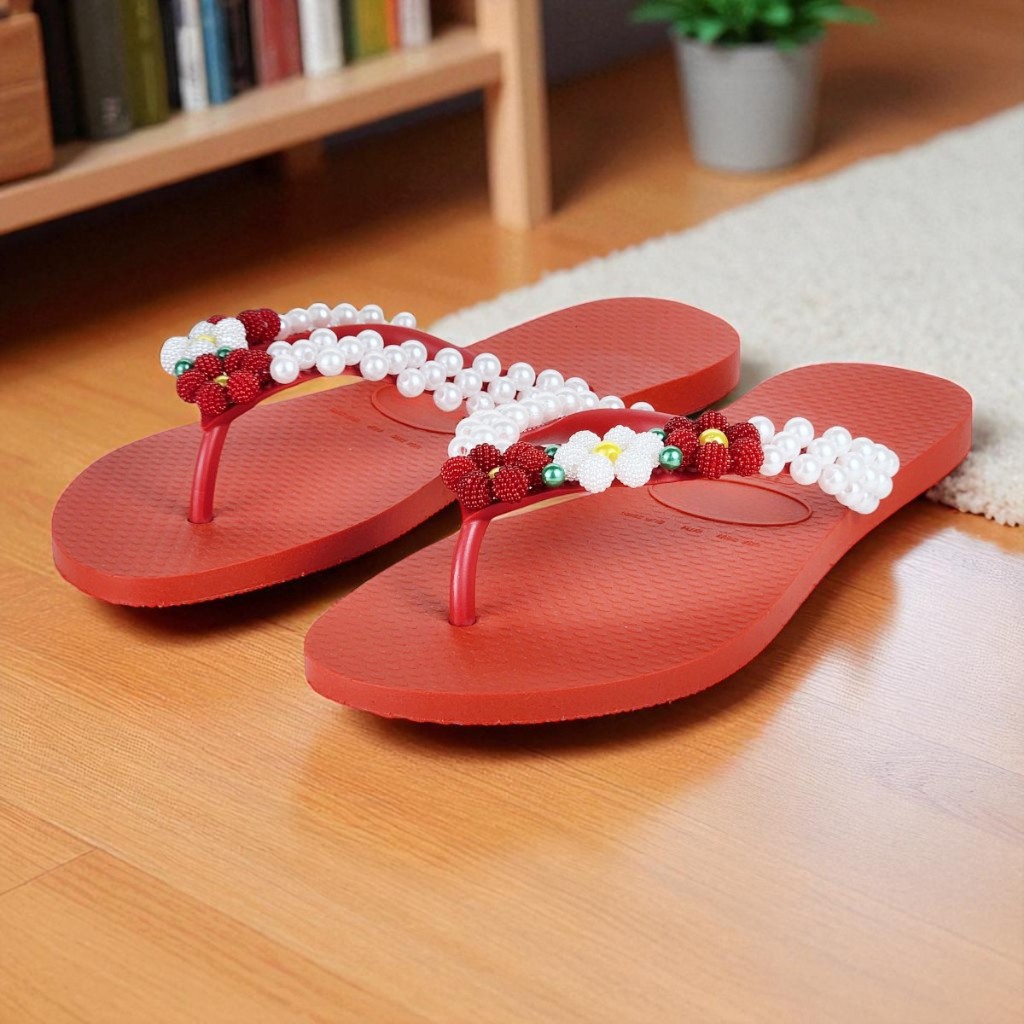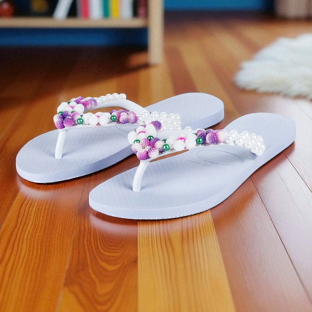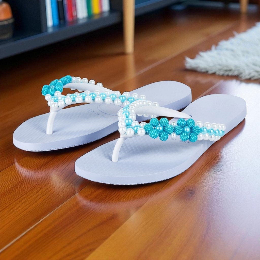 Chinelo Fashion Feminino Bordado Em Pérolas Personalizado Delicado Verão Confortável Fresquinho