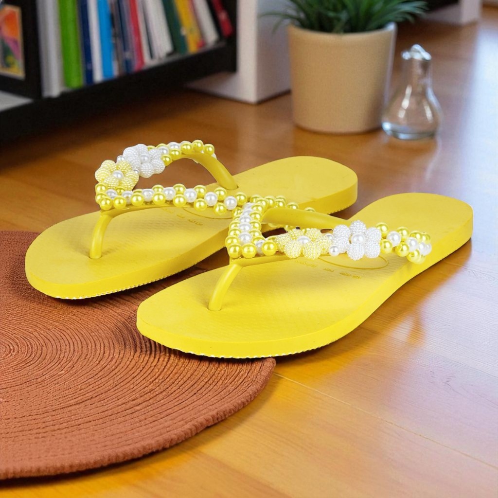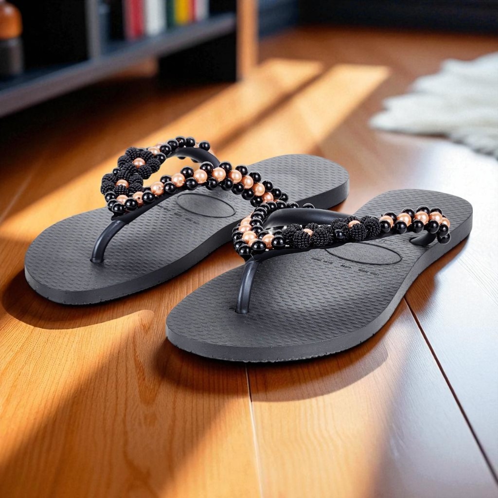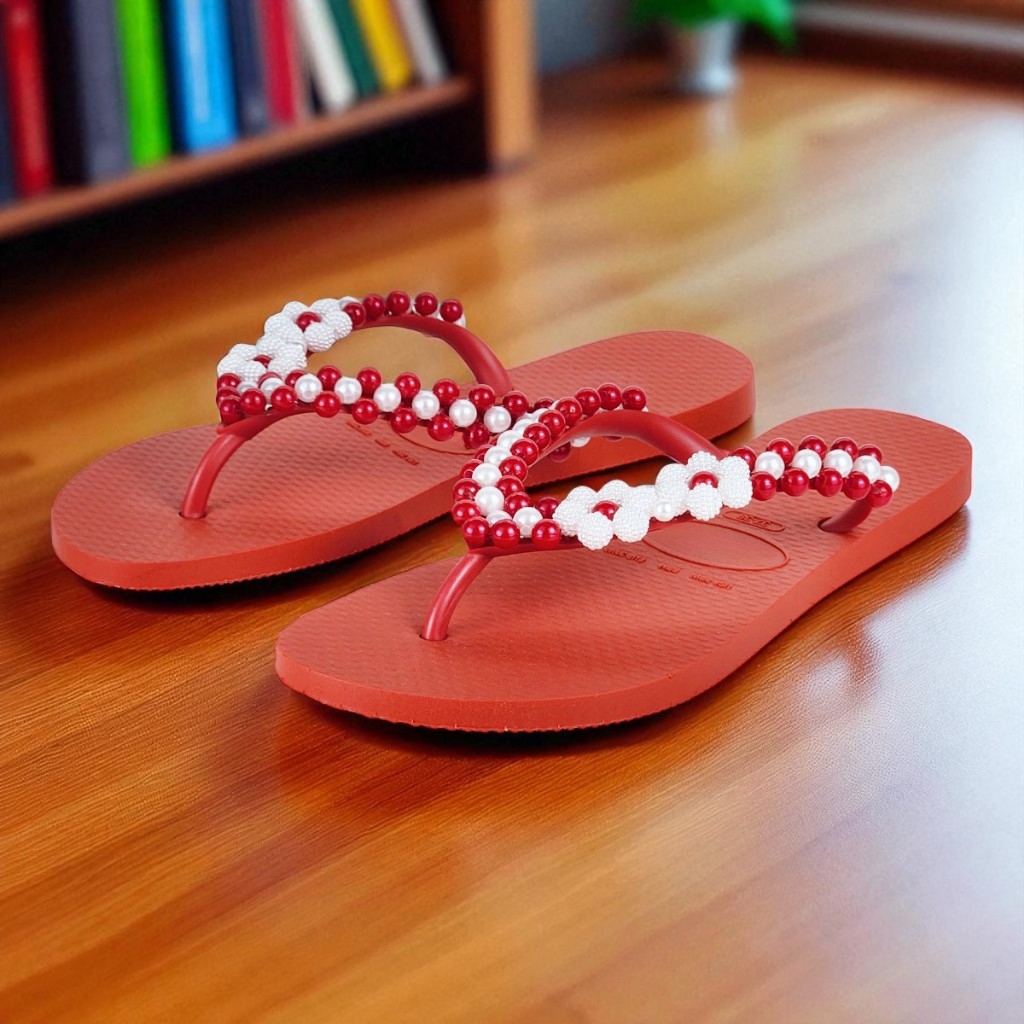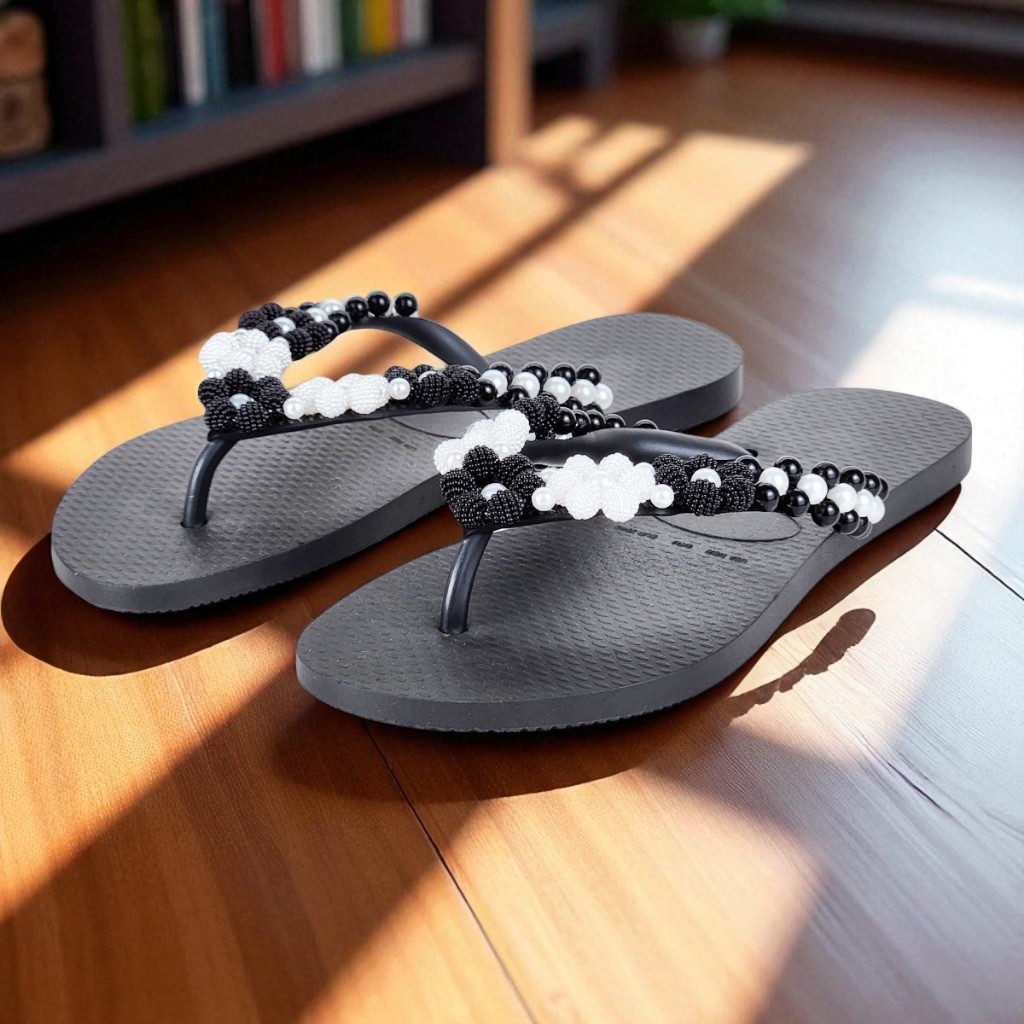 Chinelo Fashion Feminino Bordado Em Pérolas Personalizado Delicado Verão Confortável Fresquinho