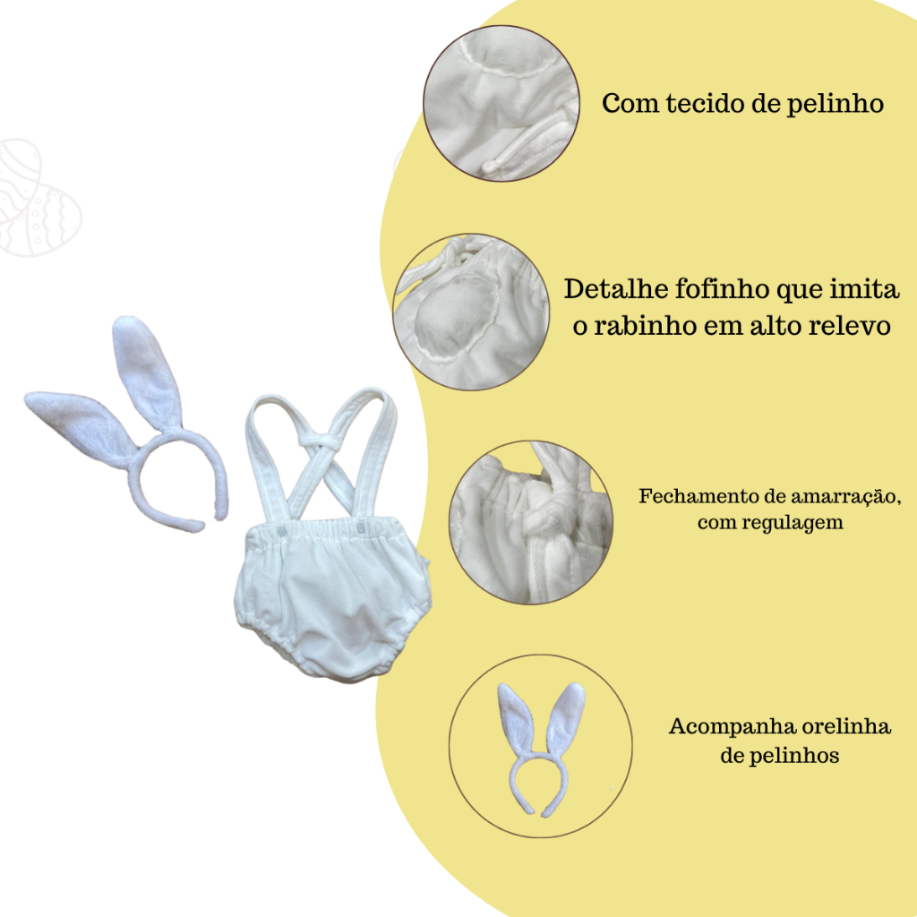 Fantasia de coelhinho da pascoa com orelhinhas para bebe ensaio de mesversario