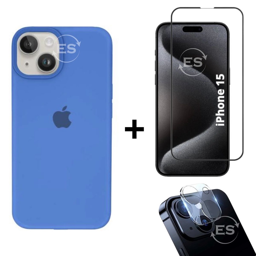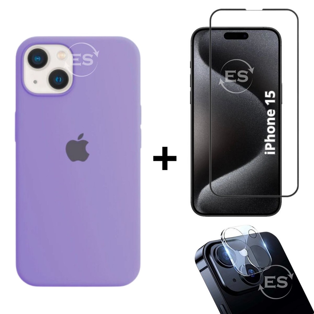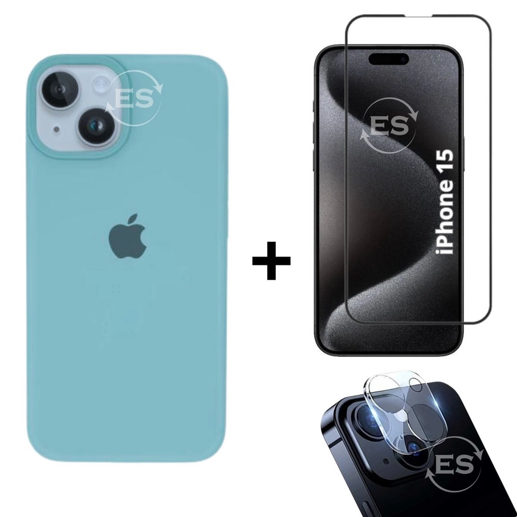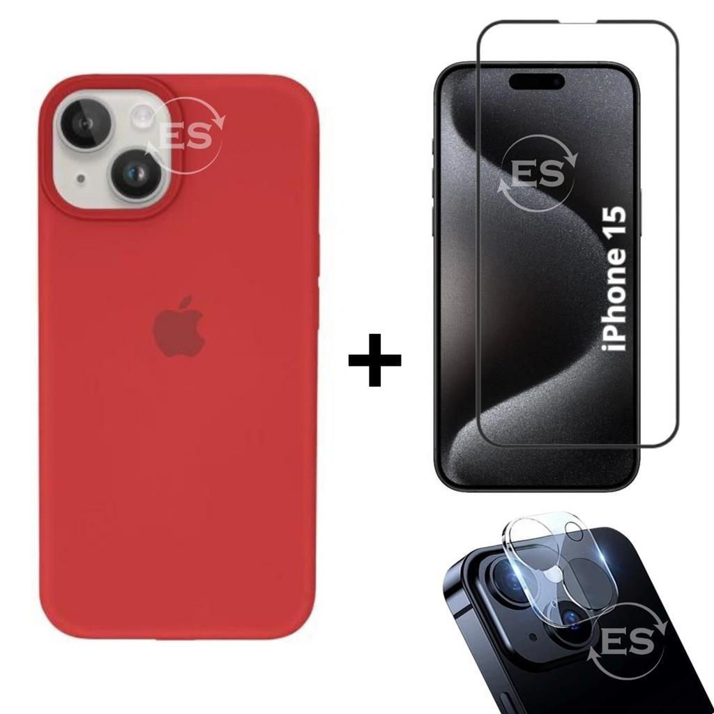 iPhone 15 Case Aveludada + Película Vidro 3D Tela + Proteção Lente Câmera Kit Premium 3em1