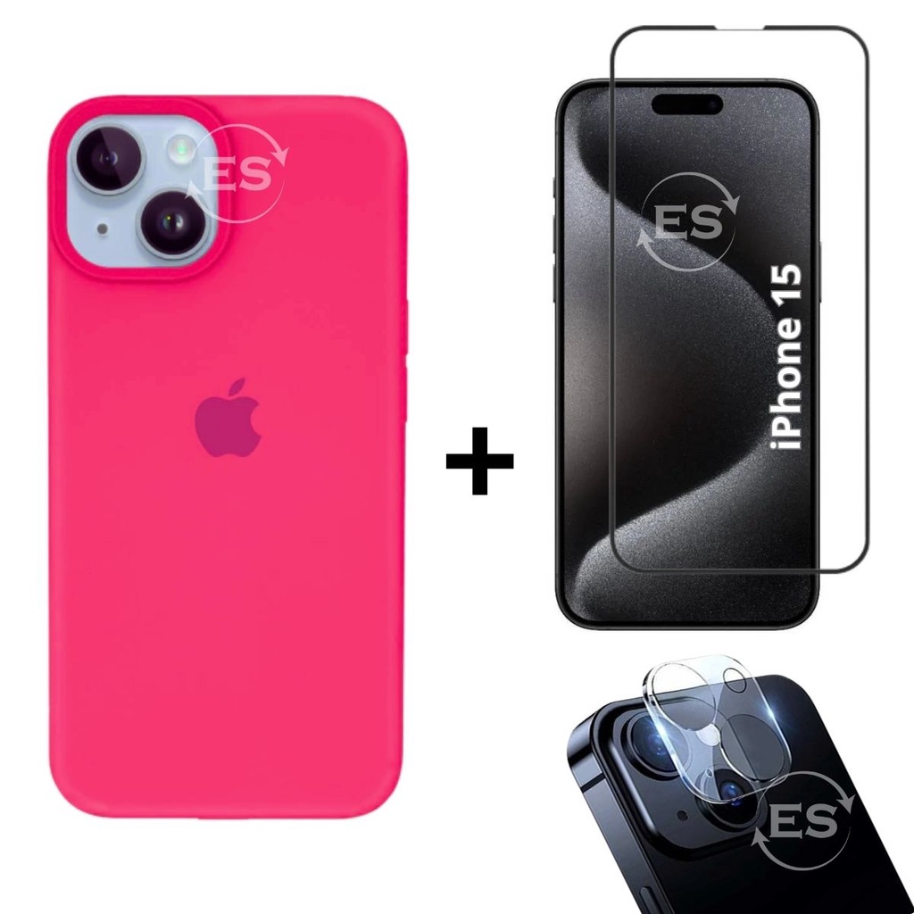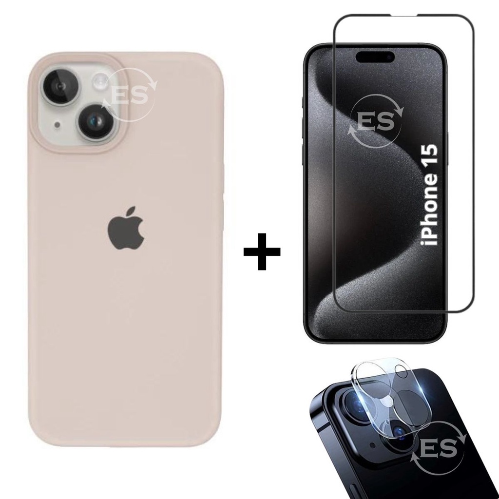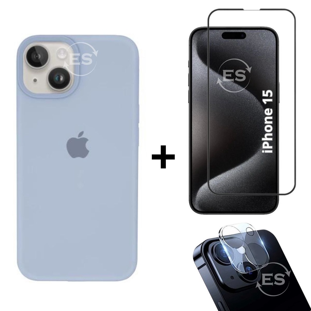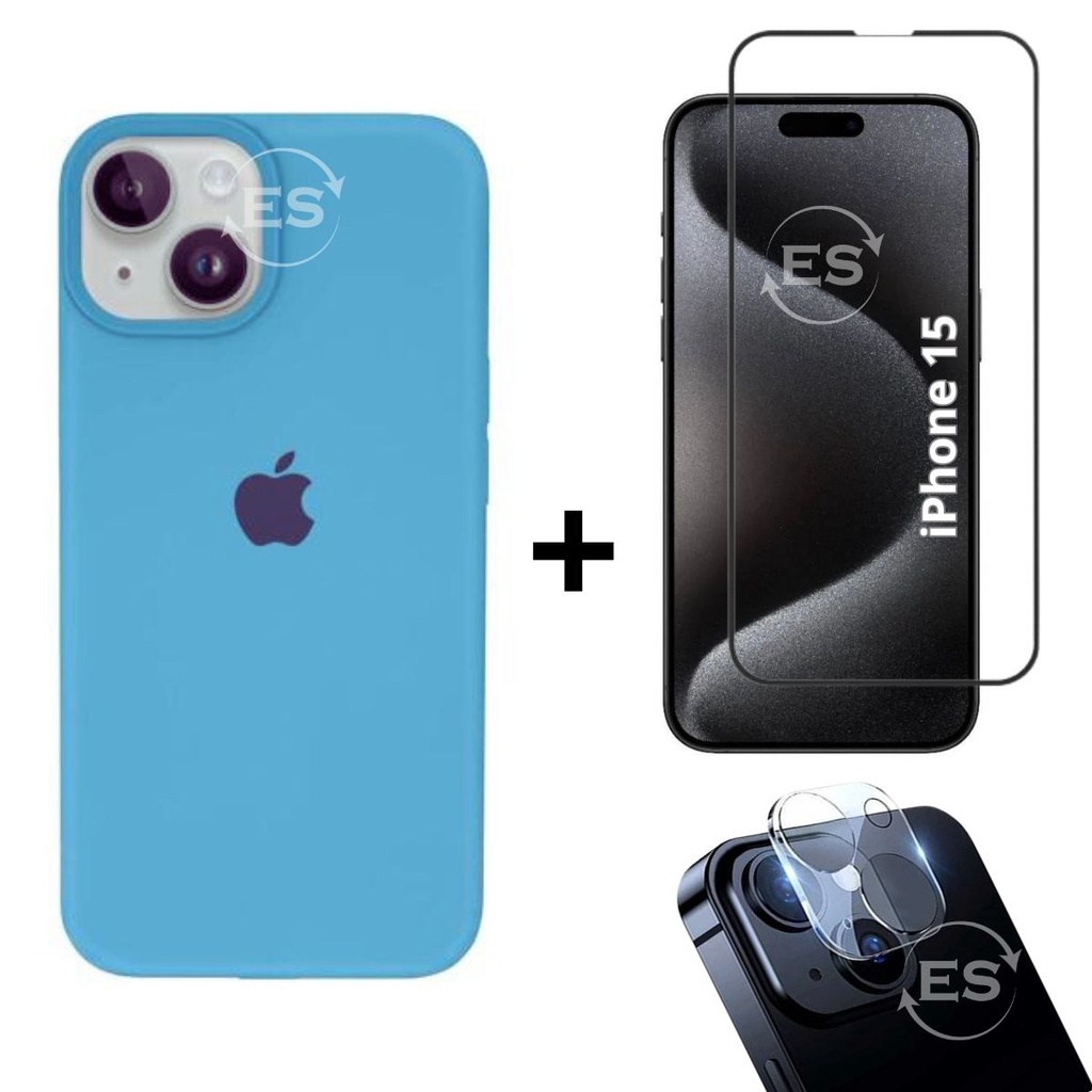 iPhone 15 Case Aveludada + Película Vidro 3D Tela + Proteção Lente Câmera Kit Premium 3em1