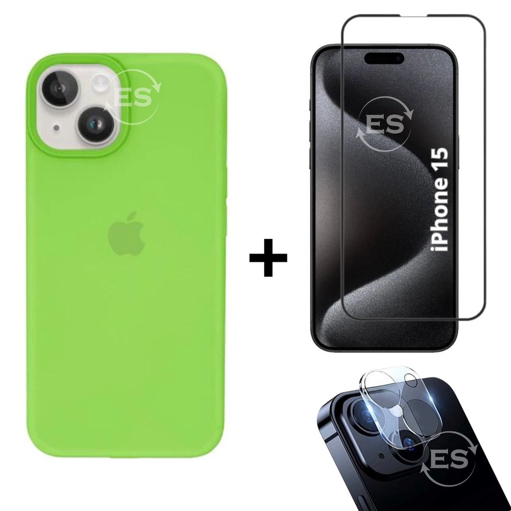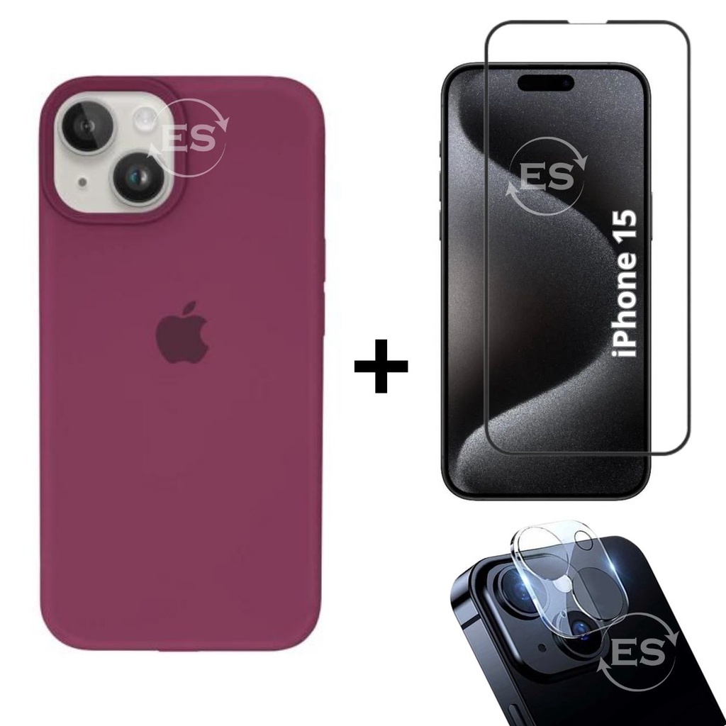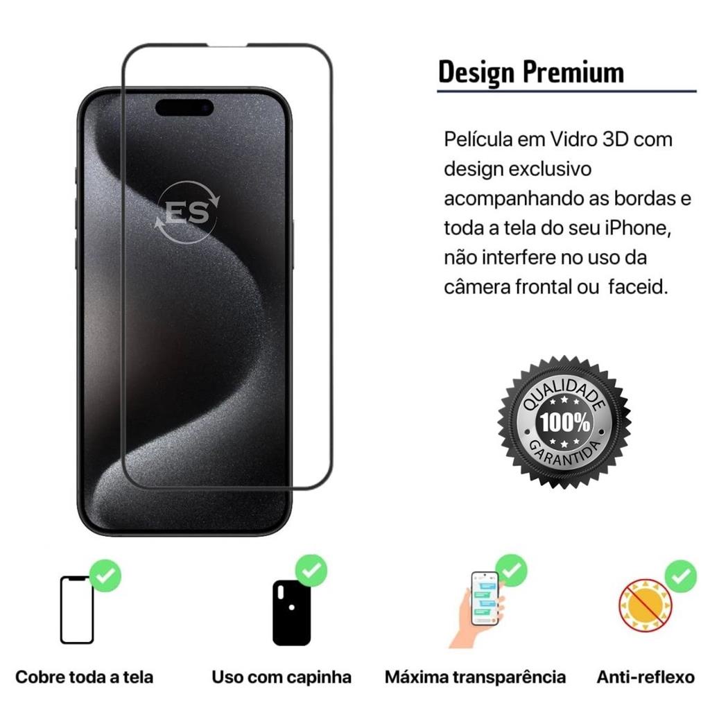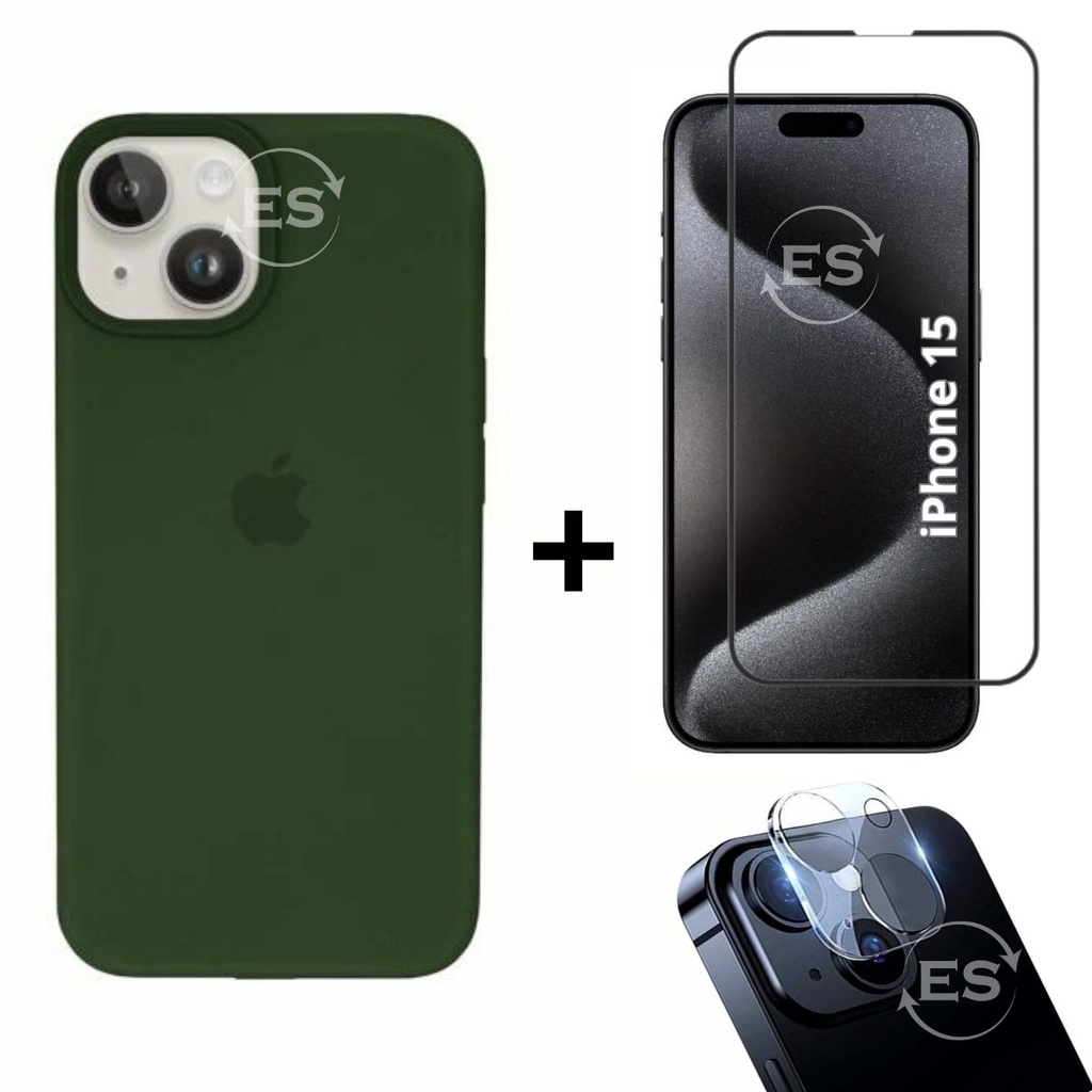 iPhone 15 Case Aveludada + Película Vidro 3D Tela + Proteção Lente Câmera Kit Premium 3em1