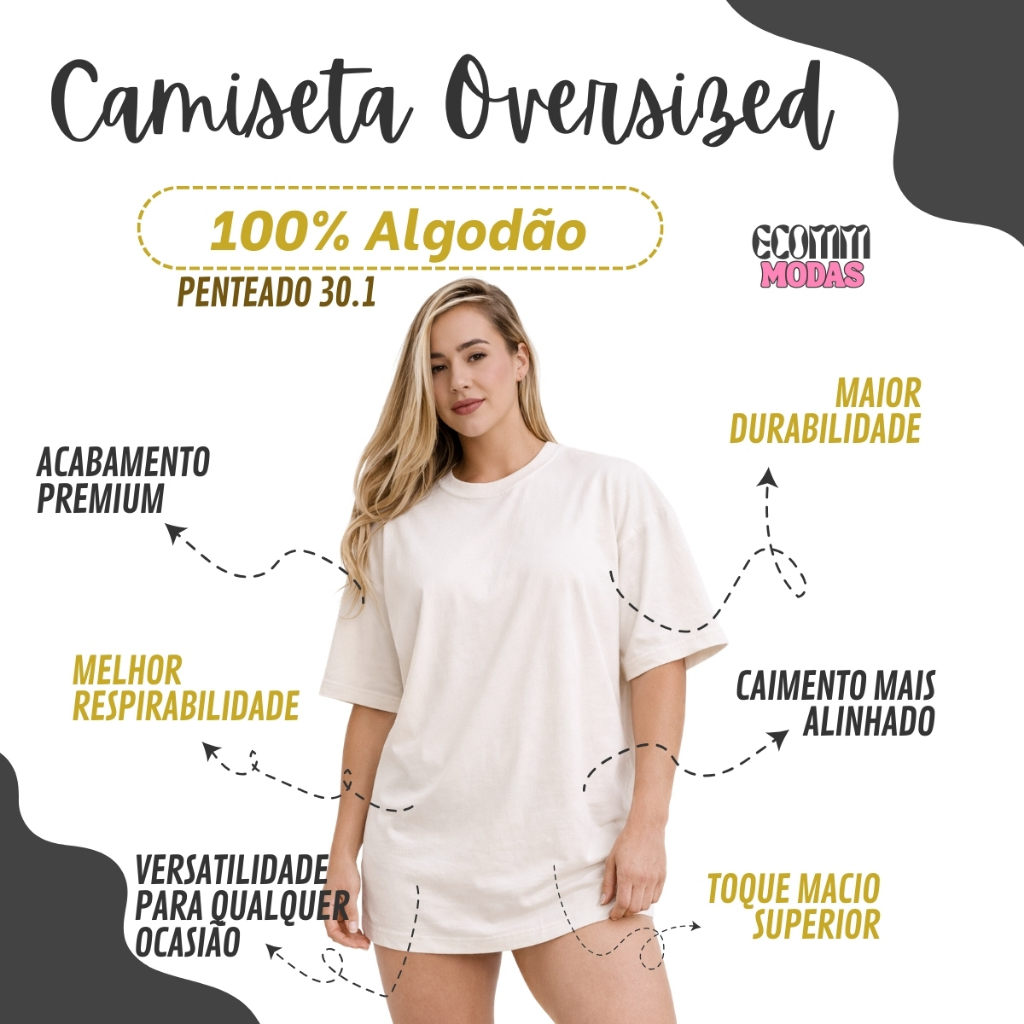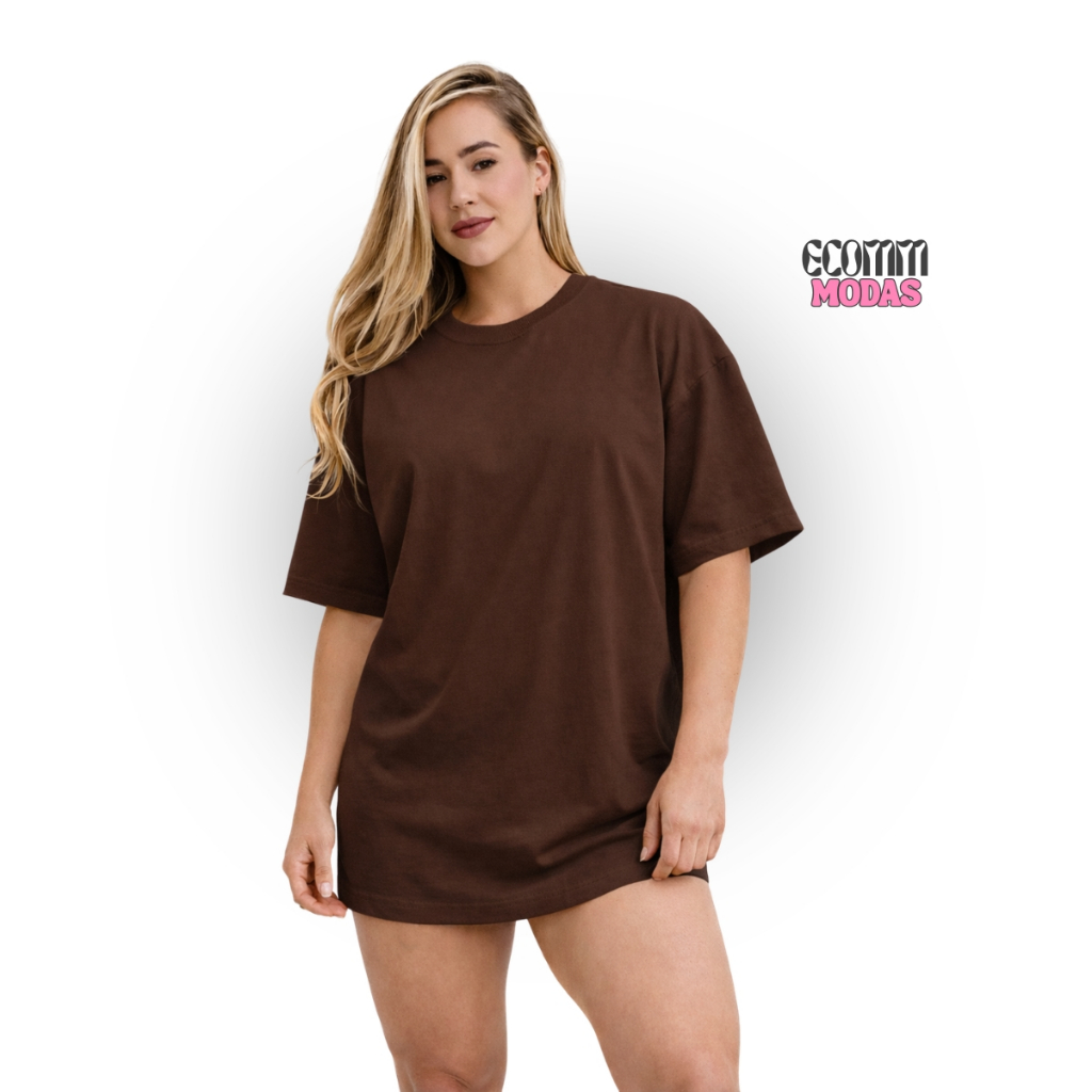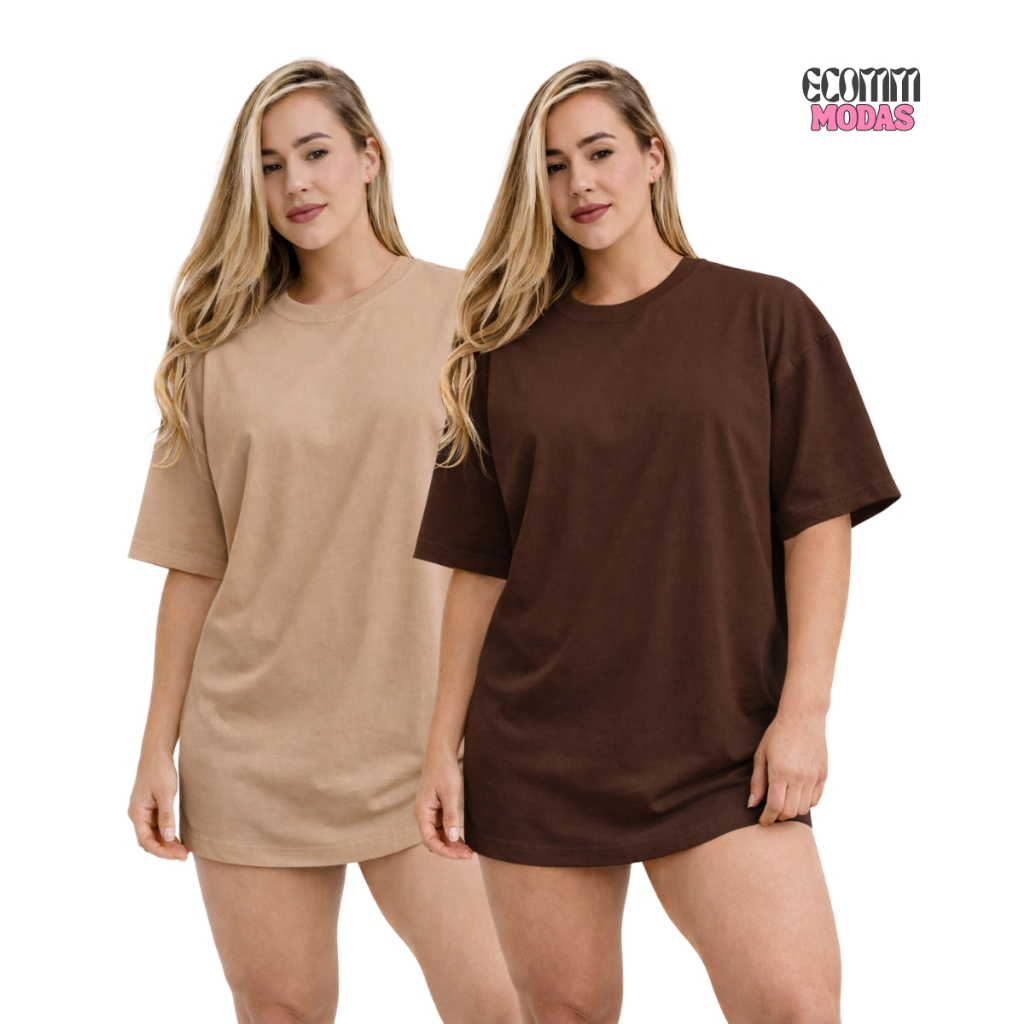 Kit 2 Camiseta Feminina Lisa Oversized 100% Algodão Camisa Larga Long