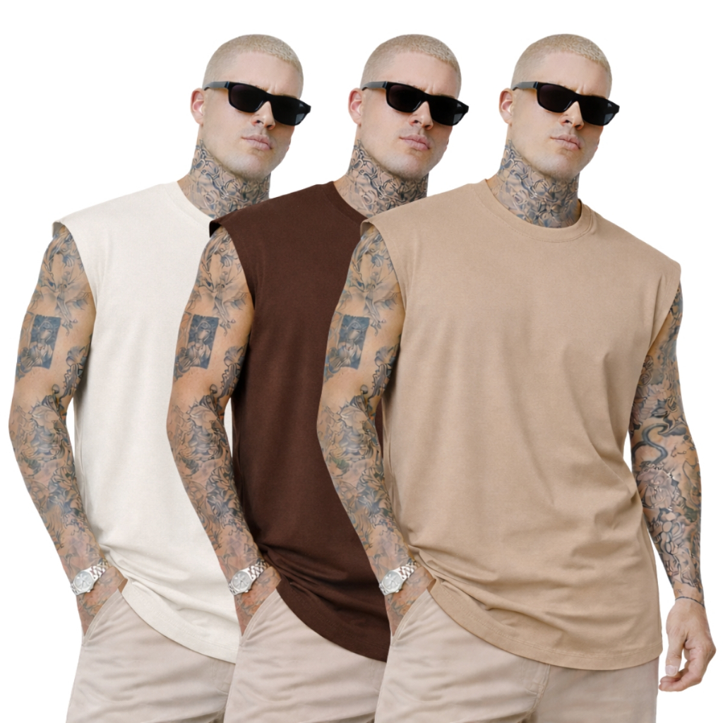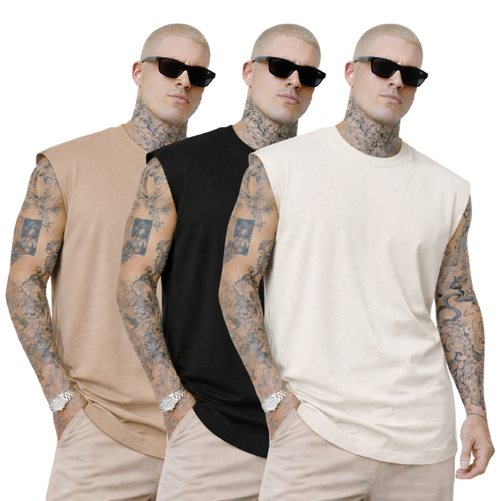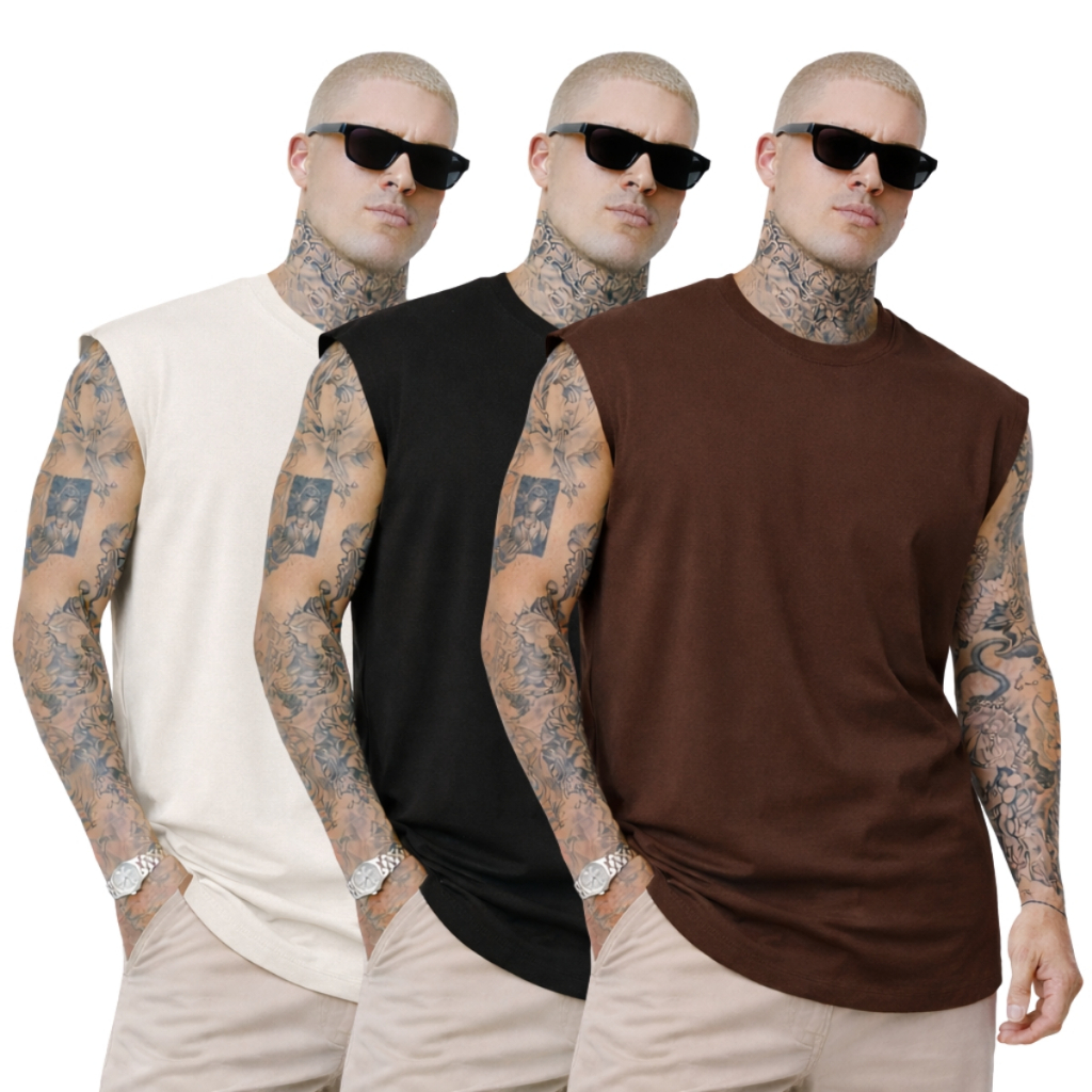Kit 3 Camiseta Regata Oversized Camisa Streetwear Masculina