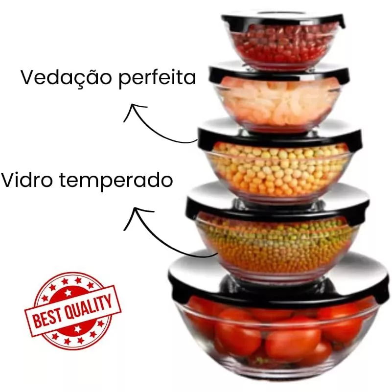 Conjunto 5 Potes de Vidro Herméticos Com Tampa - Sortido Praticasa