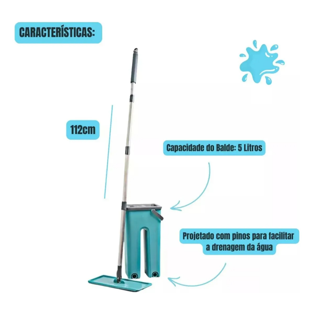Rodo Flat Mop e Balde para Limpeza de Piso Refil Grátis Gift Util