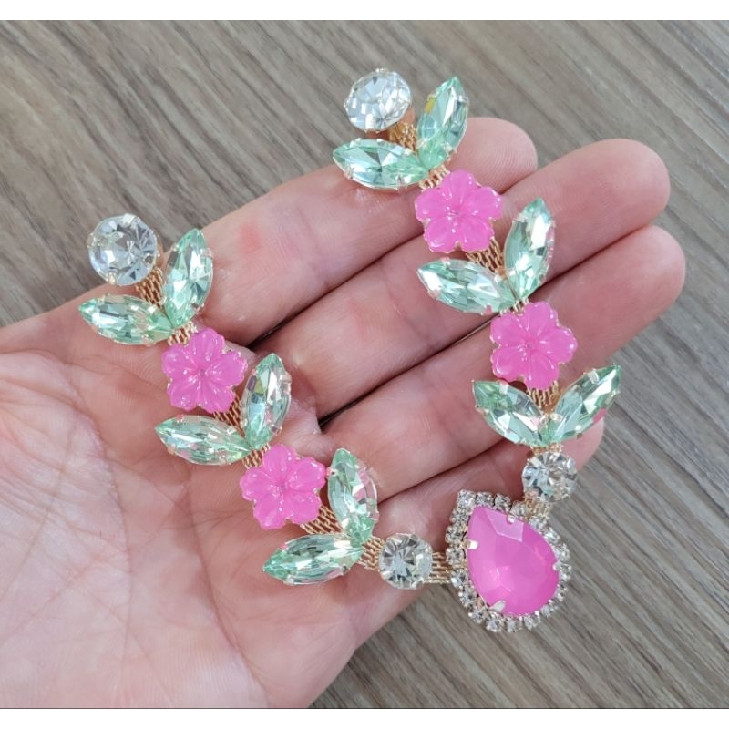 Par de cabedal para chinelos banhado (modelo flor) primeira linha