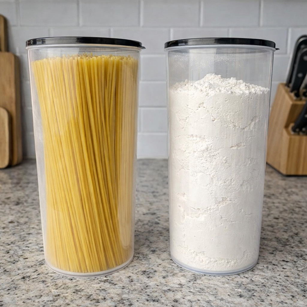 Conjunto 2 potes organizador resistente transparente cozinha linha premium despensa macarrão arroz