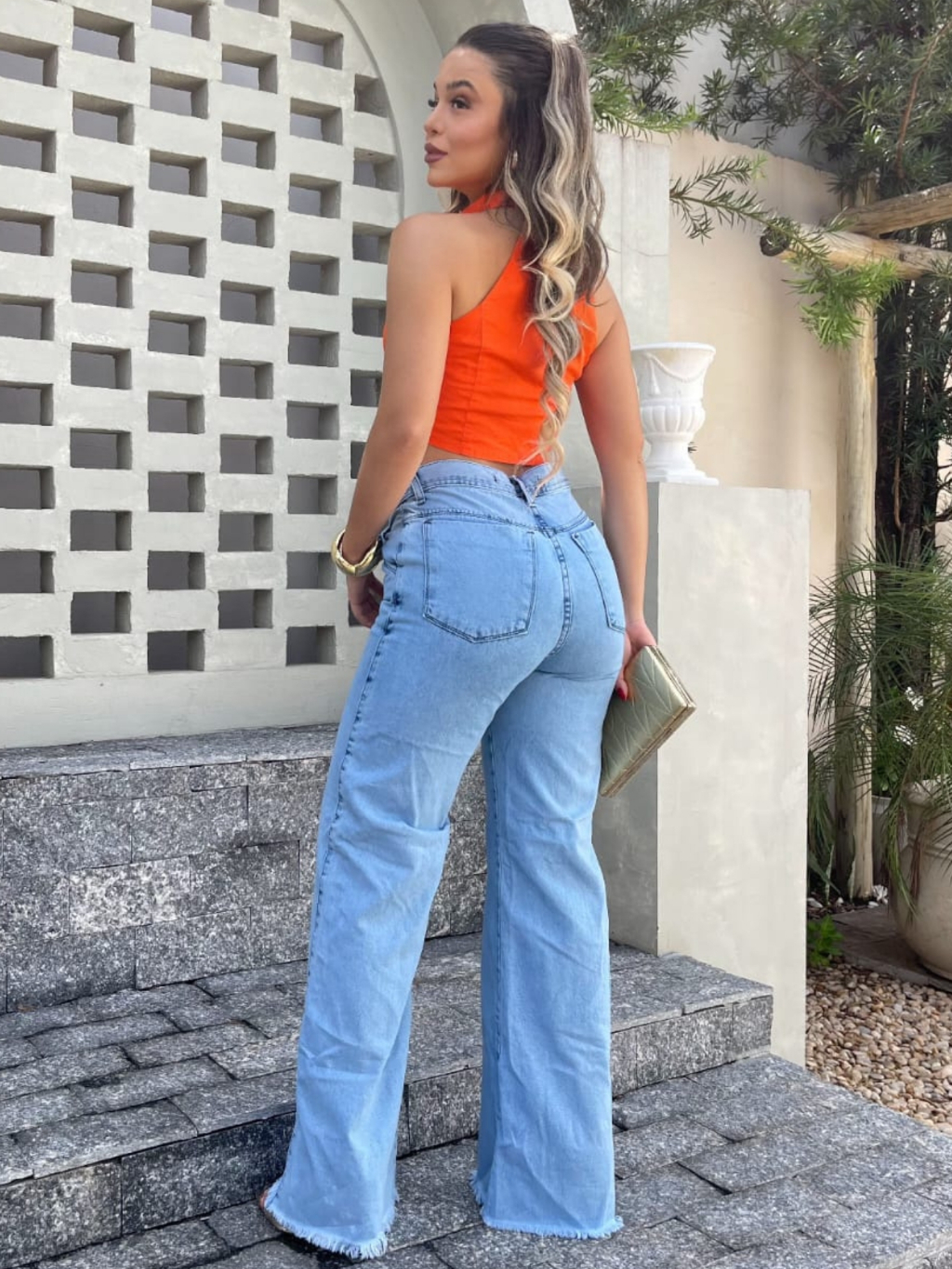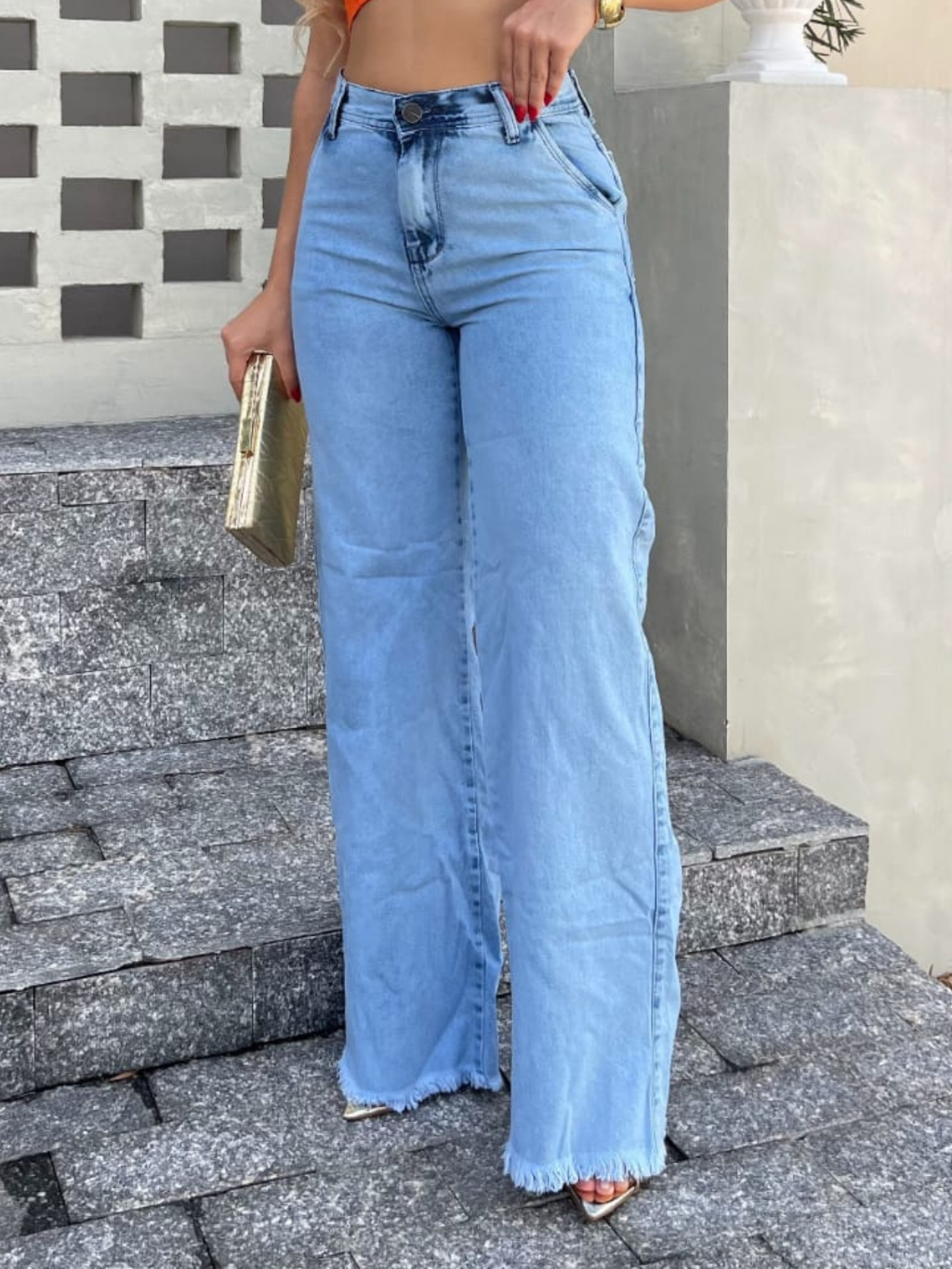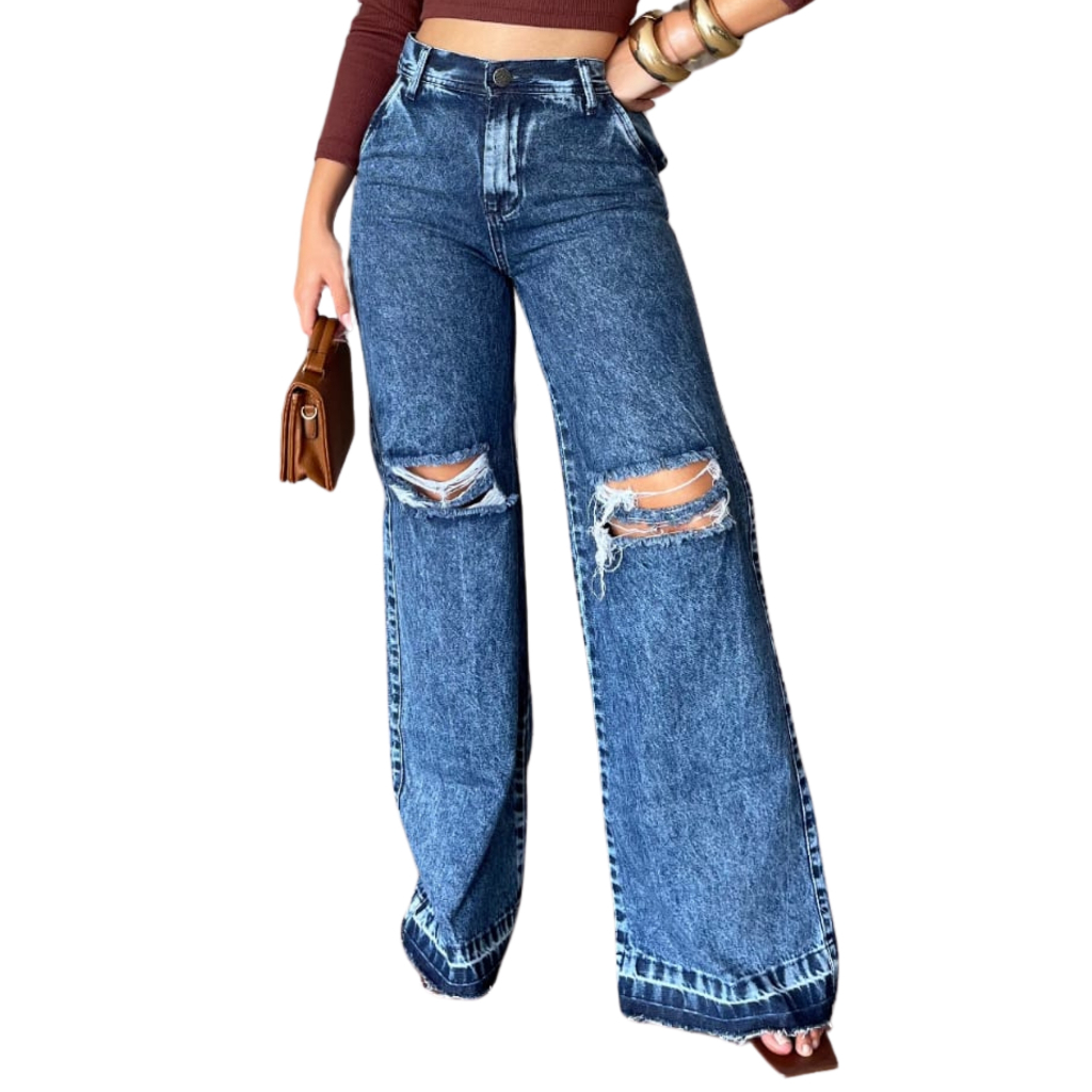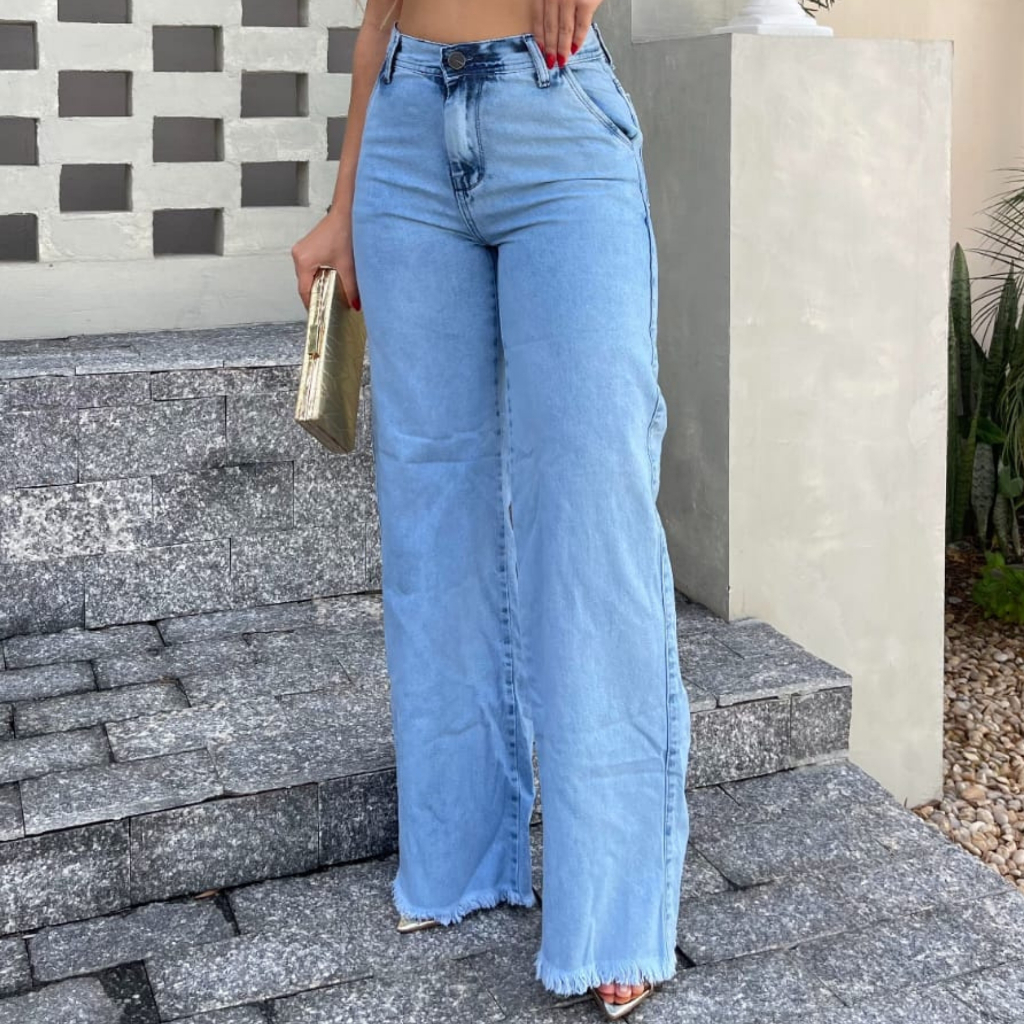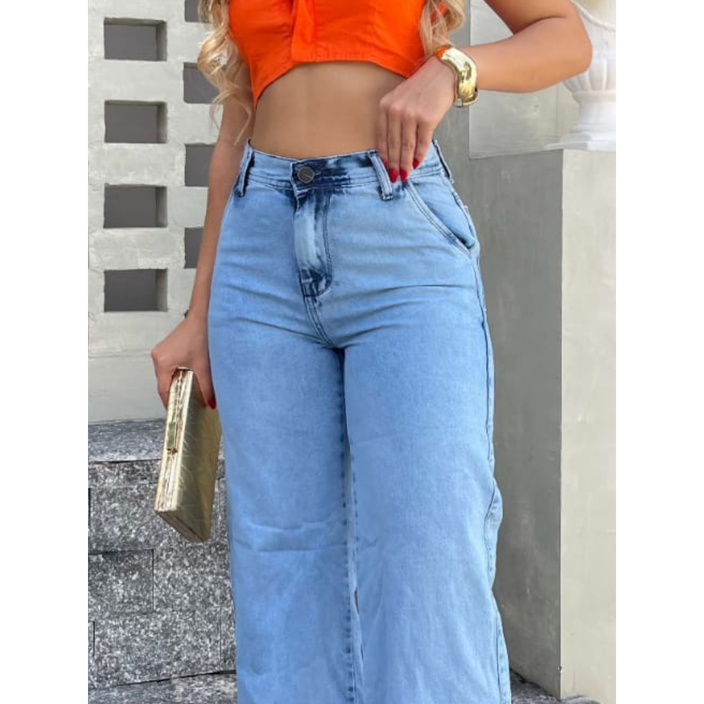 Calça Jeans Feminina Wide Leg Pantalona CLARA Cintura Alta 100% Algodão