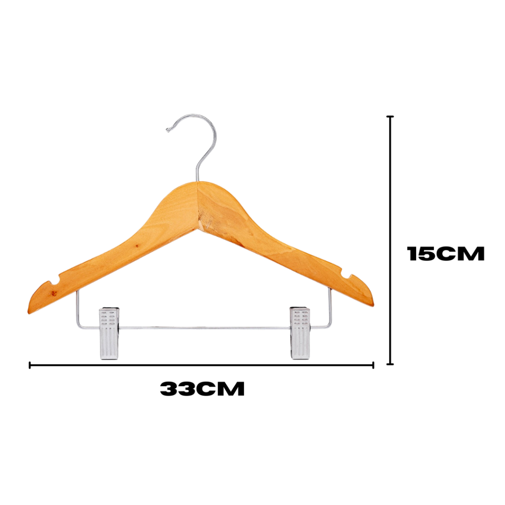 Kit 20 Cabide de Madeira Infantil c/ Presilhas Marfim Roupas Casacos