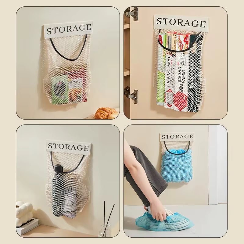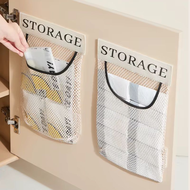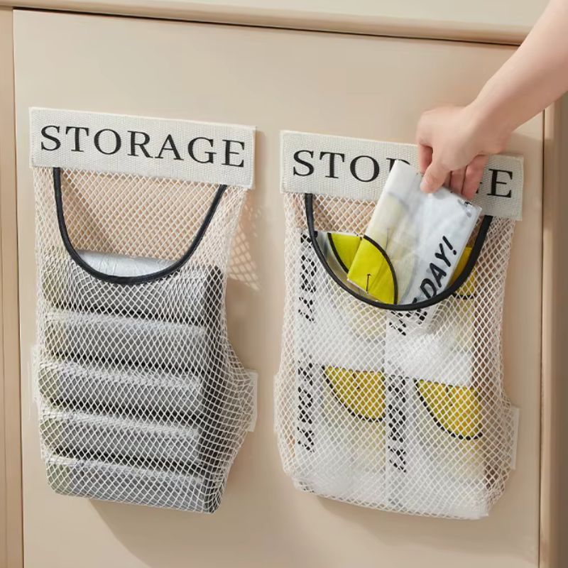 Suporte de Parede para Sacolas Plásticas em Malha Elástica Organizador Dobrável Econômico.SOPHIA